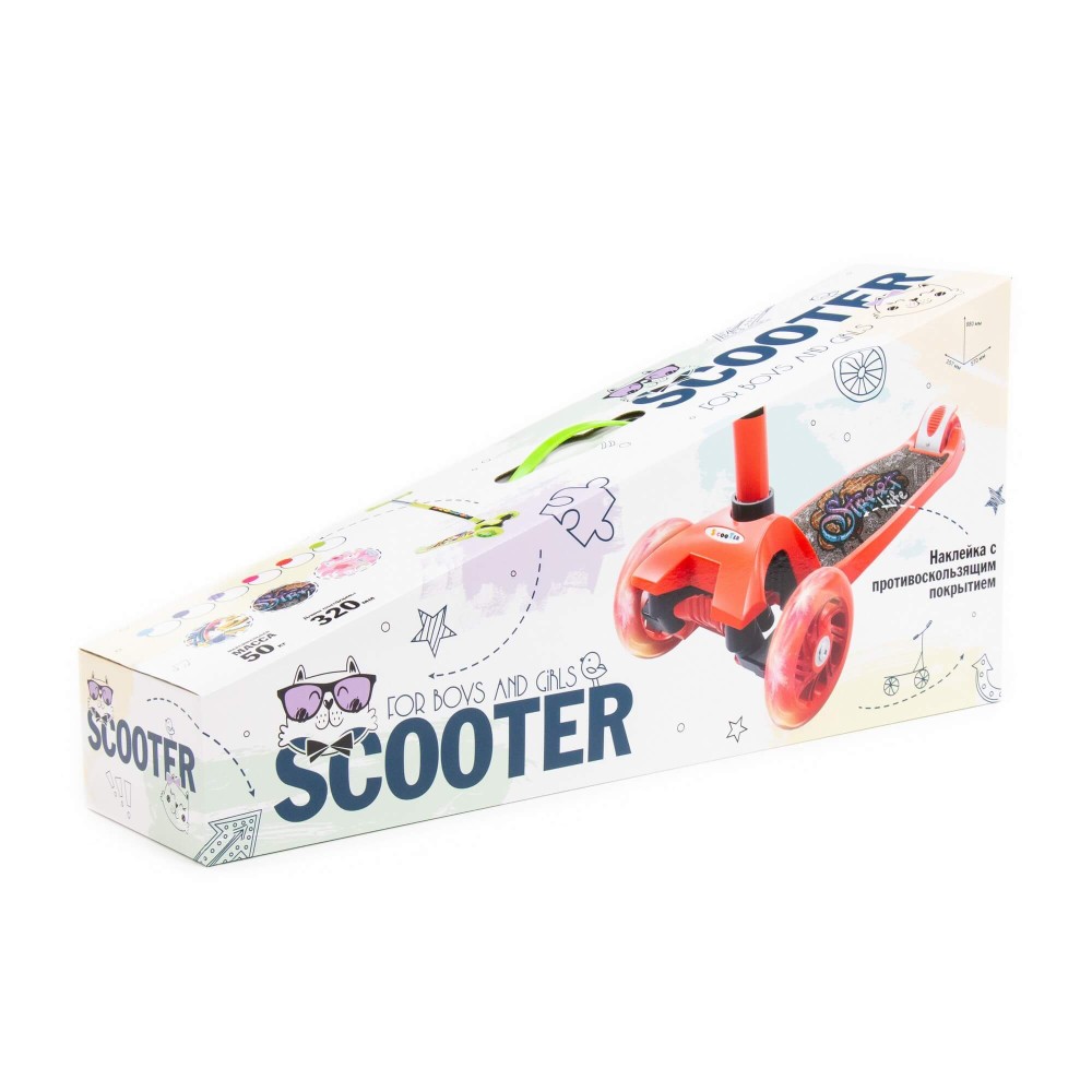 Самокат от фабрики "Полесье" станет замечательным средством передвижения для любого малыша. Самокат предназначен для деток от 3-х лет. Выдерживает вес в 50 кг. Размеры в собранном виде - 570х257х790 мм. Самокат имеет подсветку колёс, оснащён ножным тормозом. Руль можно регулировать, это обеспечит малышу максимально комфортное катание. Изготовлен самокат из высококачественных материалов, имеет яркую расцветку, а также красочную наклейку на платформе. Представлен в разных цветах: голубом, синем, фиолетовом, малиновом, красном, красно-чёрном и зелёном. Прогулки с таким самокатом станут гораздо веселее!
