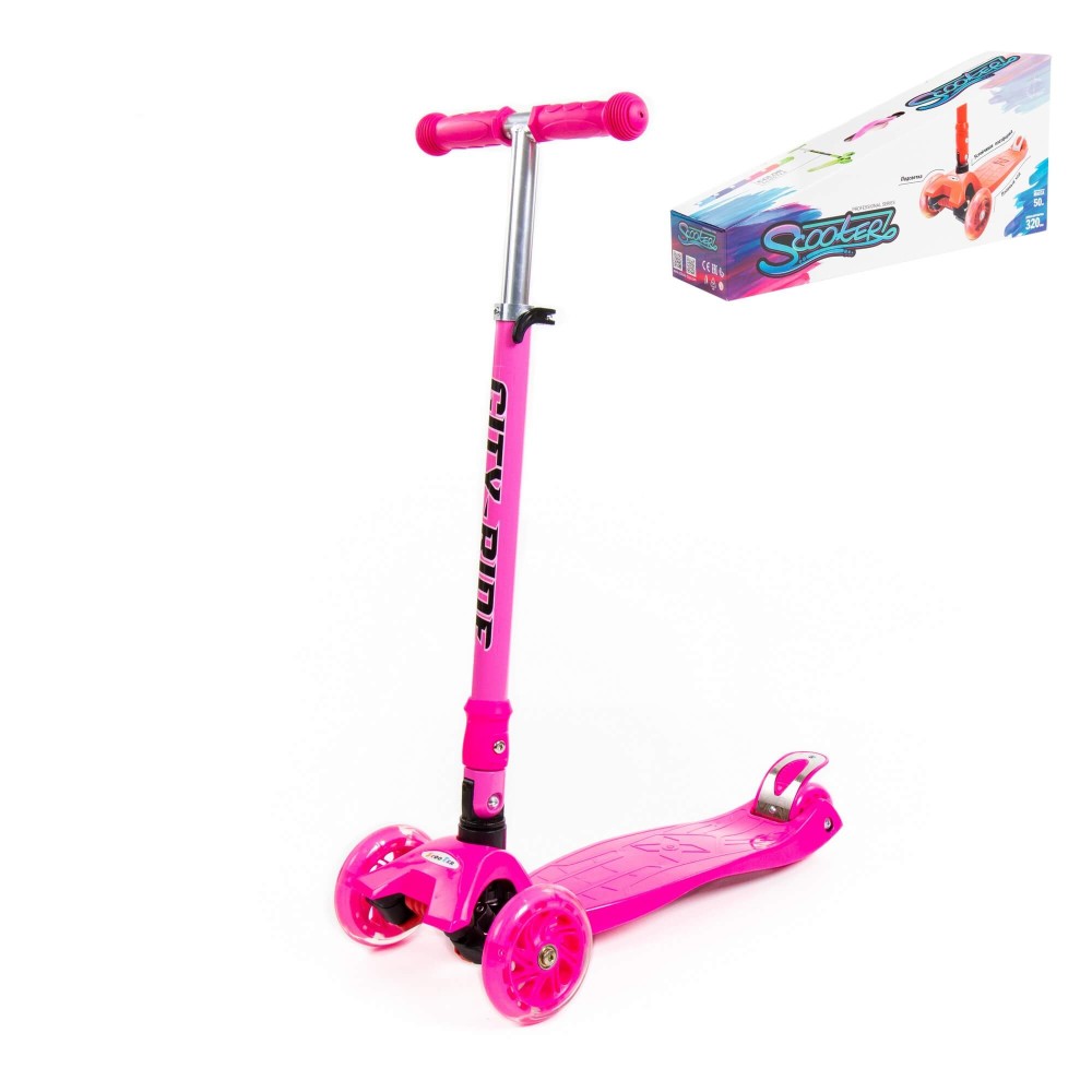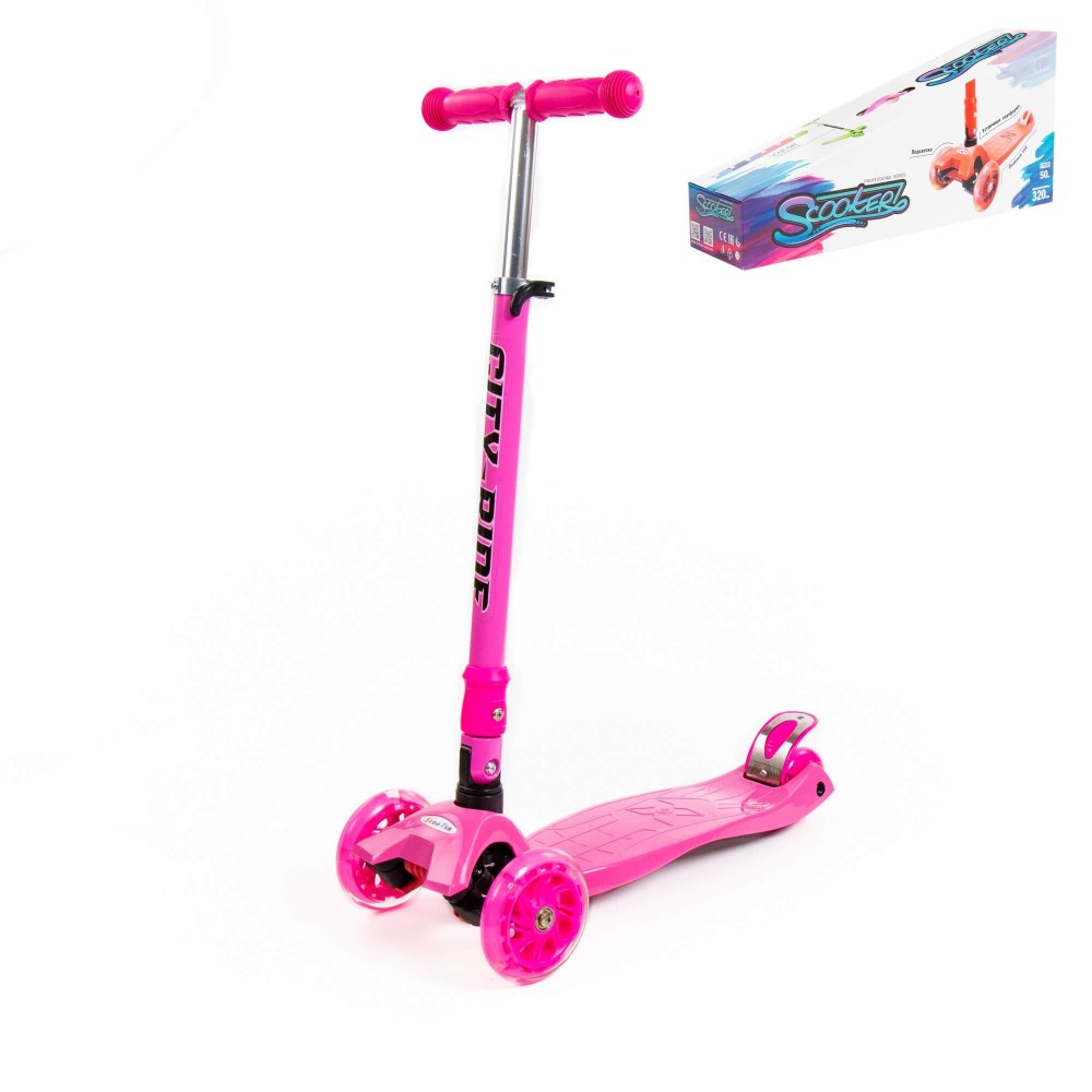 # 0072C Детский самокат (со складной ручкой) (малиновый) (в коробке)