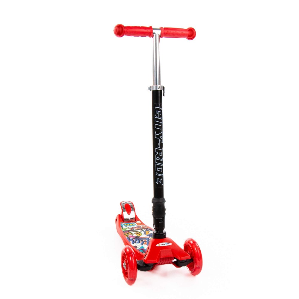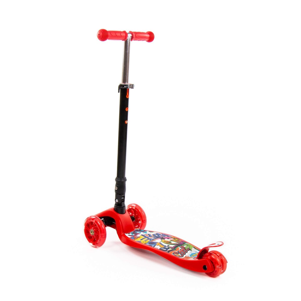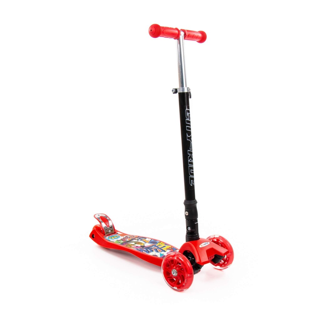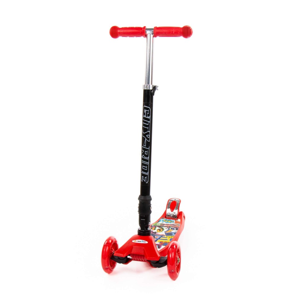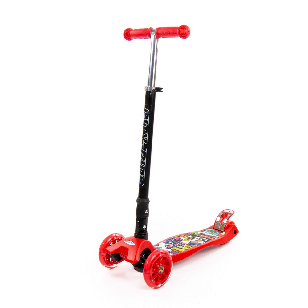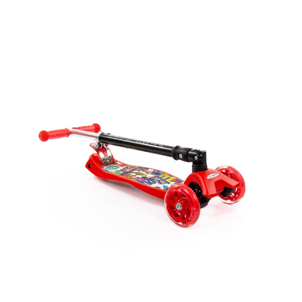 #0072C Детский самокат (со складной ручкой) (с наклейкой V2) (красно-чёрный)