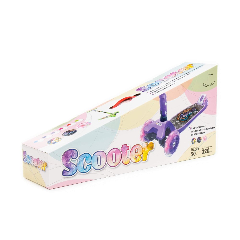 Самокат от фабрики «Полесье» станет замечательным средством передвижения для любого малыша. Самокат предназначен для деток от 3-х лет. Выдерживает вес в 50 кг. Размеры в собранном виде — 570×257×750 мм. Самокат имеет подсветку колёс, оснащён ножным тормозом. Руль можно регулировать, это обеспечит малышу максимально комфортное катание. Изготовлен самокат из высококачественных материалов, имеет яркую расцветку. Ручка складывается. Представлен в разных цветах: голубом, синем, фиолетовом, малиновом, красном, красно-чёрном и зелёном. Прогулки с таким самокатом станут гораздо веселее!