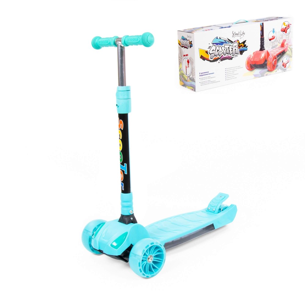TJ-705L Детский самокат (со складной ручкой) (бирюзовый) (в коробке)