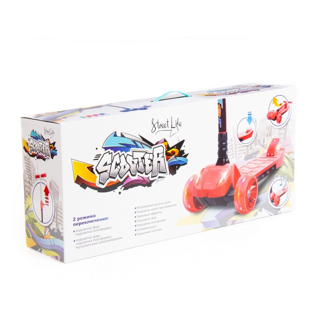 Фабрика «Полесье» представляет ещё один функциональный самокат. Предназначен для деток от 3-х лет. Выдерживает вес в 50 кг. Длина платформы — 320 мм. Максимальная высота ручки — 740 мм. Самокат имеет подсветку платформы и фар, звуковое сопровождение, оснащён ножным тормозом. Руль можно регулировать, это обеспечит малышу максимально комфортное катание. Кроме того, руль складывается, обеспечивая удобное хранение. Изготовлен самокат из высококачественных материалов, имеет яркую расцветку. Представлен в разных цветах: бирюзовом, красном, красно-чёрном, малиновом и синем. Прогулки с таким самокатом станут гораздо веселее!