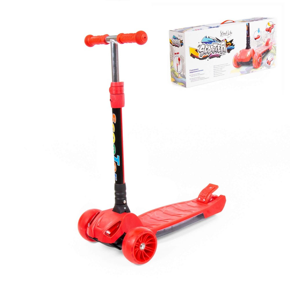 TJ-705L Детский самокат (со складной ручкой) (красный) (в коробке)