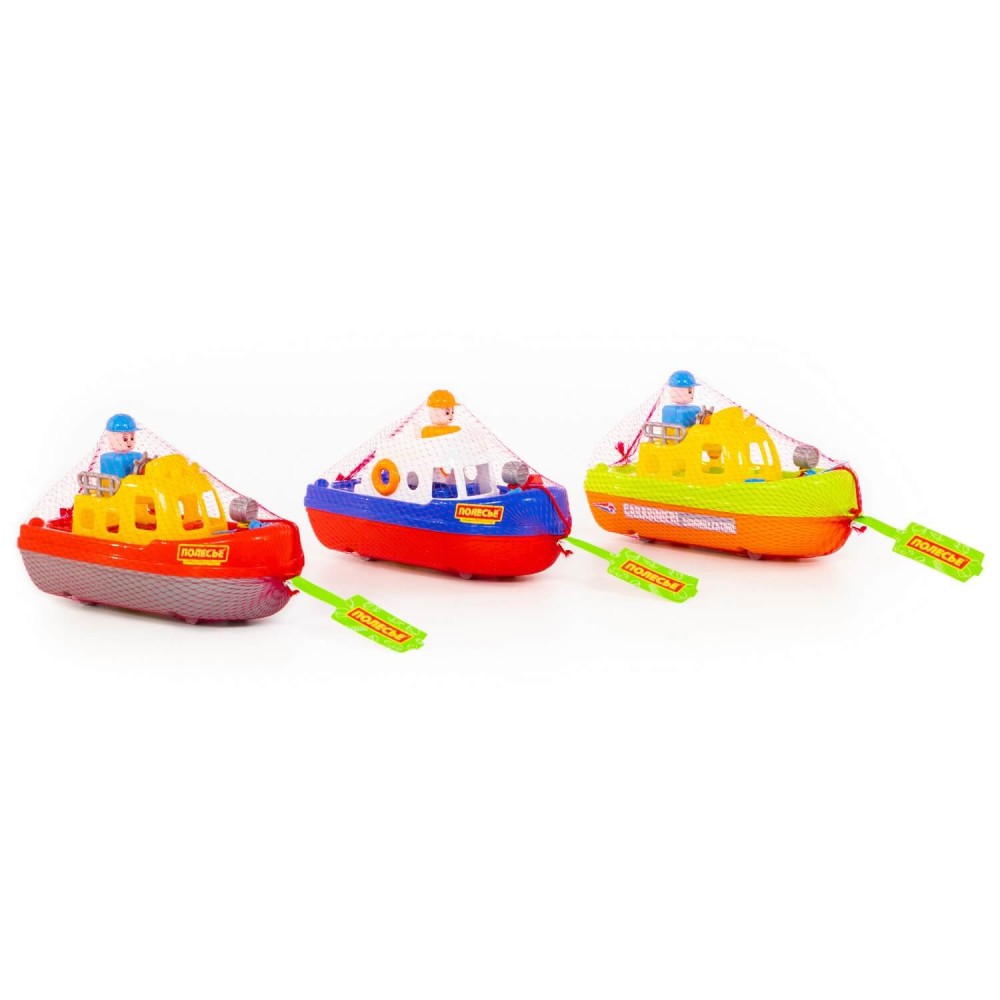 В набор входит 3 катера разных цветов. С корабликом можно играть дома, в бассейне и на свежем воздухе. Для удобного использования предусмотрен шнурок, за который можно перемещать игрушку по воде. Реалистичности в игре добавит фигурка капитана и штурвал. Игрушка выполнена из пластмассы высокого качества и прекрасно держится на воде. Продается в сеточке.