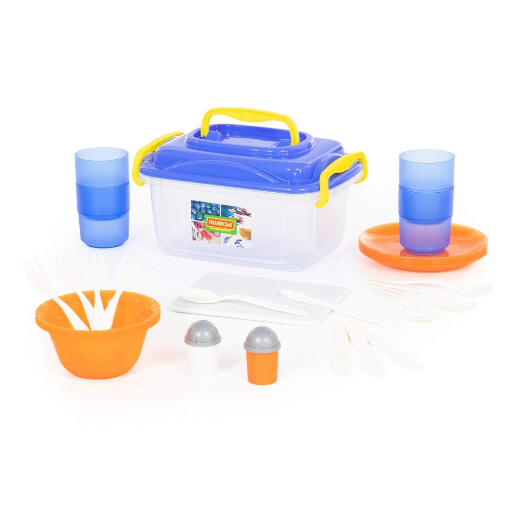 Набор для пикника №5 на 4 персоны от компании «Полесье» – это универсальный набор посуды и столовых приборов, который выполнен из качественного и безопасного пластика, включающий в себя все самое необходимое для приятного и комфортного приема пищи на свежем воздухе в интересной компании.