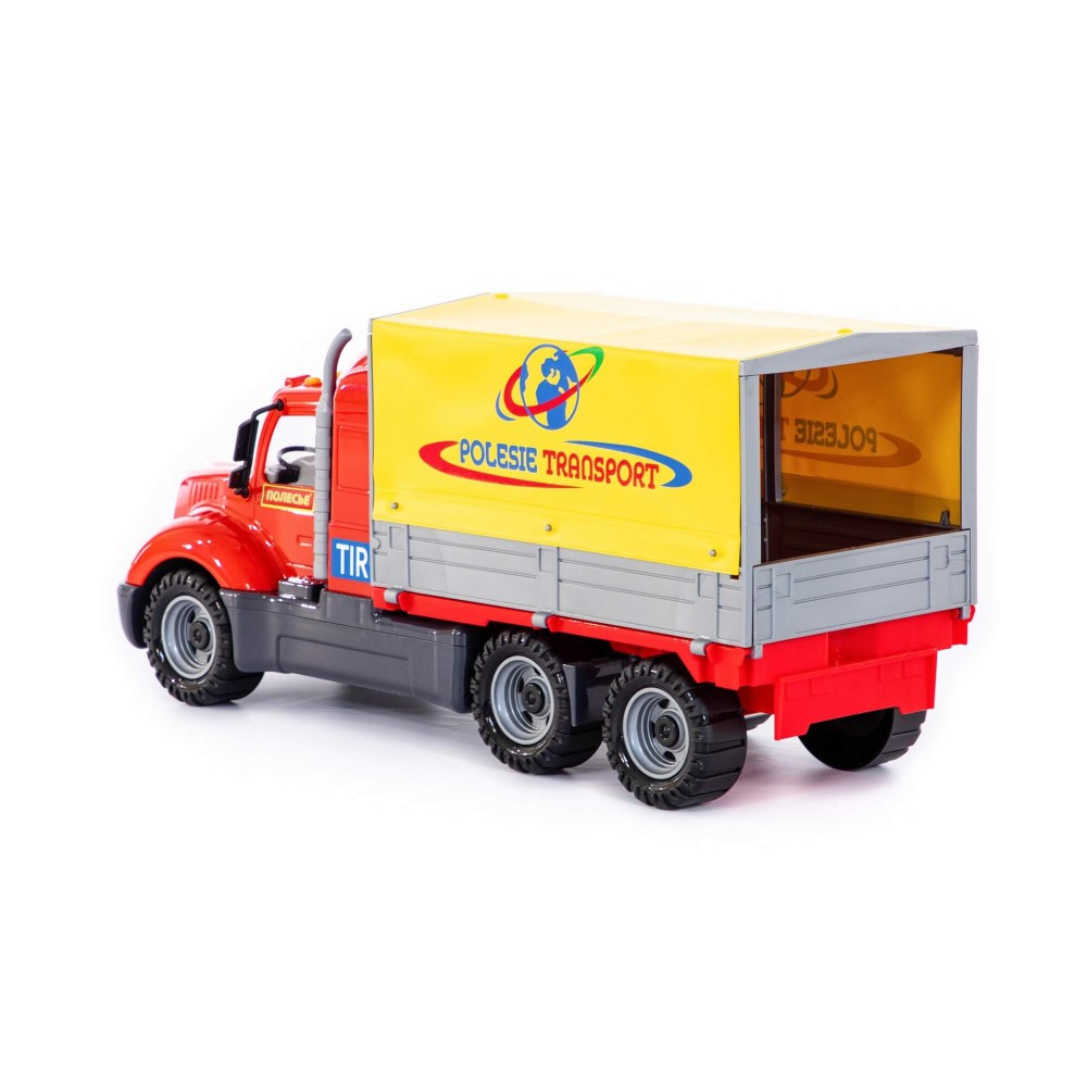 Автомобиль бортовой тентовый выглядит как настоящий грузовик. Любая игра на свежем воздухе или дома станет еще более реалистичной с такой игрушкой. Вместительный кузов позволяет загрузить другие игрушки или детали. Изготовлена игрушка из долговечного и безопасного материала. Крупные колёса обеспечивают хорошую проходимость на различных поверхностях. Продуманную эргономику оценят не только дети, но и их родители.