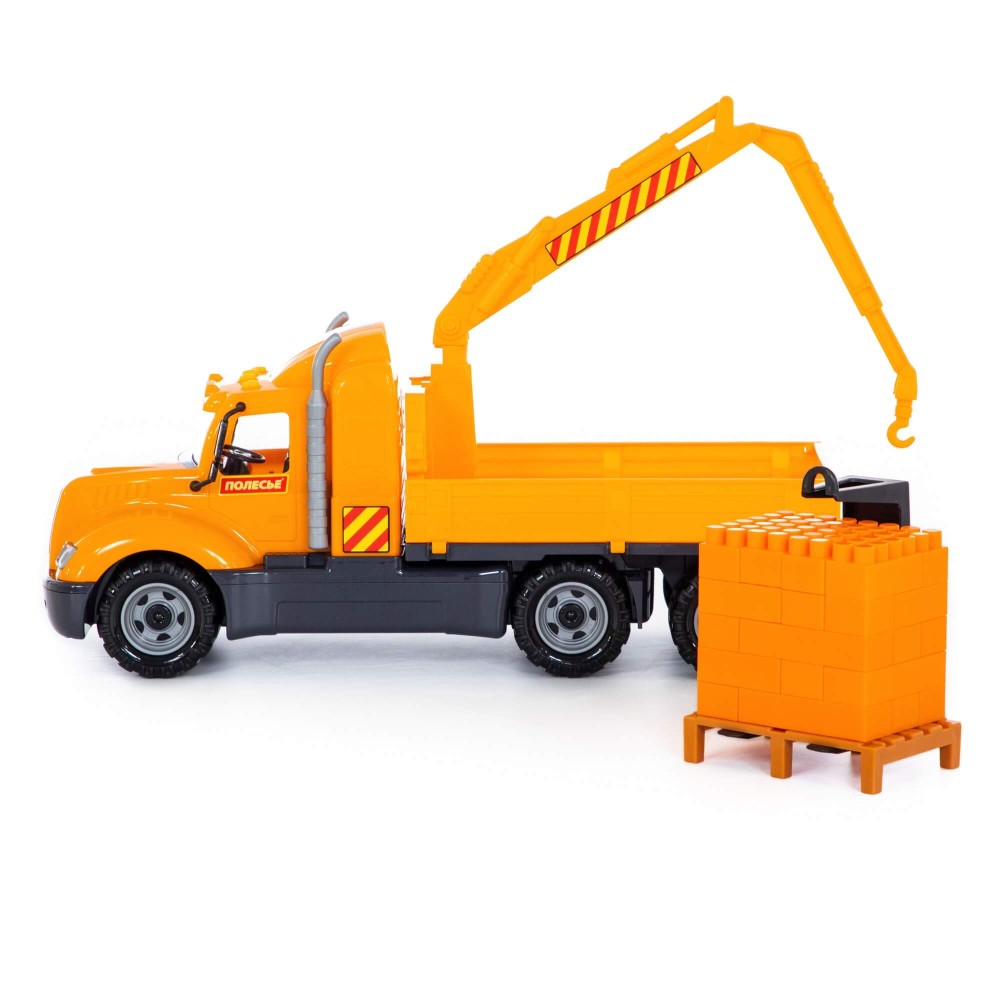 "Майк", автомобиль-кран с манипулятором+конструктор "Супер-Микс" - 30 элементов на поддоне (в лотке)