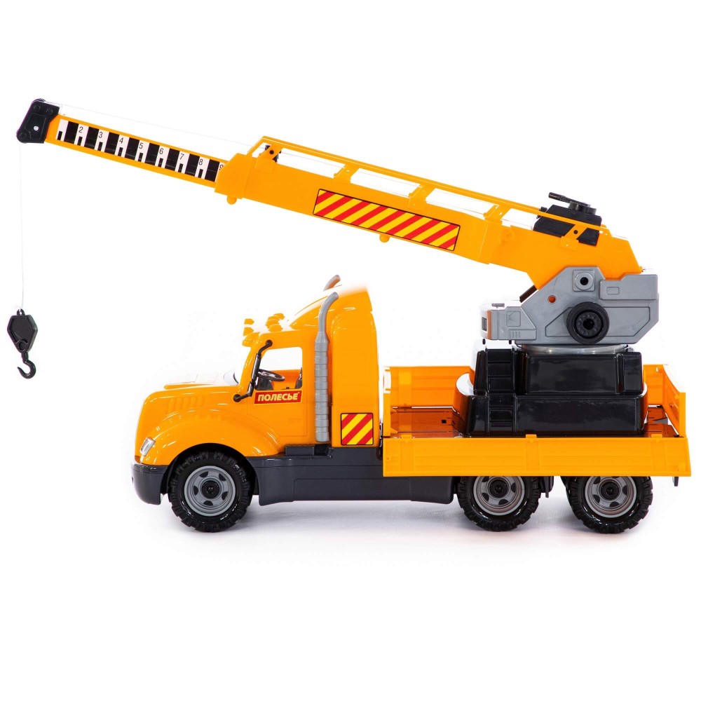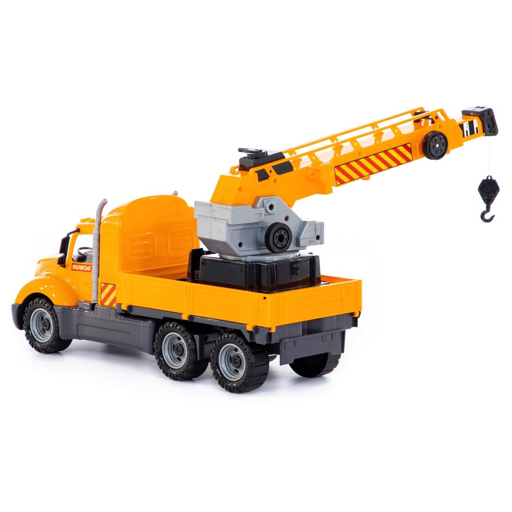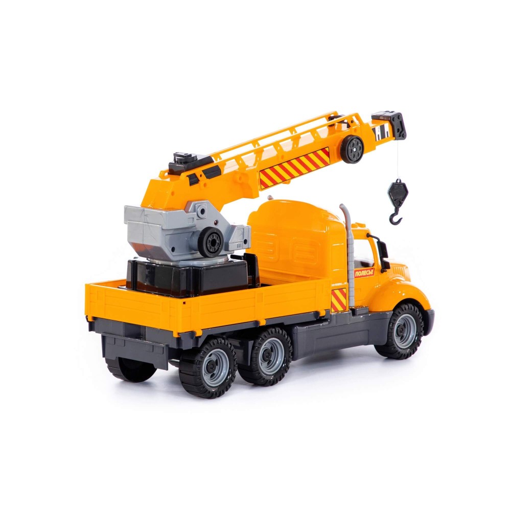 Автомобиль-кран из серии «Майк» имеет стильный дизайн и выглядит как настоящий грузовик. Кран на поворотной платформе позволит развернуть настоящую строительную площадку. Выдвижная стрела позволит доставить грузы на верхние этажи. Игрушка выполнена из долговечного и безопасного материала. Крупные колёса обеспечивают хорошую проходимость на различных поверхностях. Продуманную эргономику оценят не только дети, но и их родители.