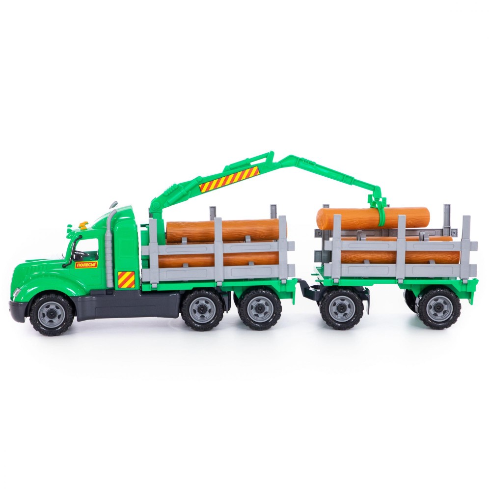 Автомобиль-лесовоз с прицепом из серии «Майк» станет прекрасным дополнением автомобильного мира мальчишек. Игрушка выполнена из долговечного и безопасного материала. Стильный дизайн добавляет реалистичности в играх дома и на свежем воздухе. В комплект входят бревна, которые можно загрузить и разгрузить с помощью крана. Крупные колёса обеспечивают хорошую проходимость на различных поверхностях. Продуманную эргономику оценят не только дети, но и их родители.
