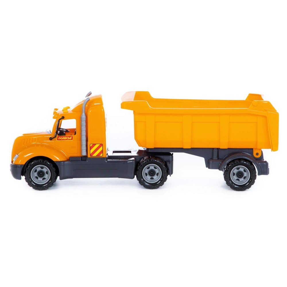 Автомобиль-самосвал с полуприцепом из серии «Майк» станет прекрасным дополнением автомобильного мира мальчишек. Игрушка выполнена из долговечного и безопасного материала. Стильный дизайн добавляет реалистичности в играх дома и на свежем воздухе. Вместительный кузов позволяет загрузить большое количество других игрушек и деталей. Крупные колёса обеспечивают хорошую проходимость на различных поверхностях. Продуманную эргономику оценят не только дети, но и их родители.