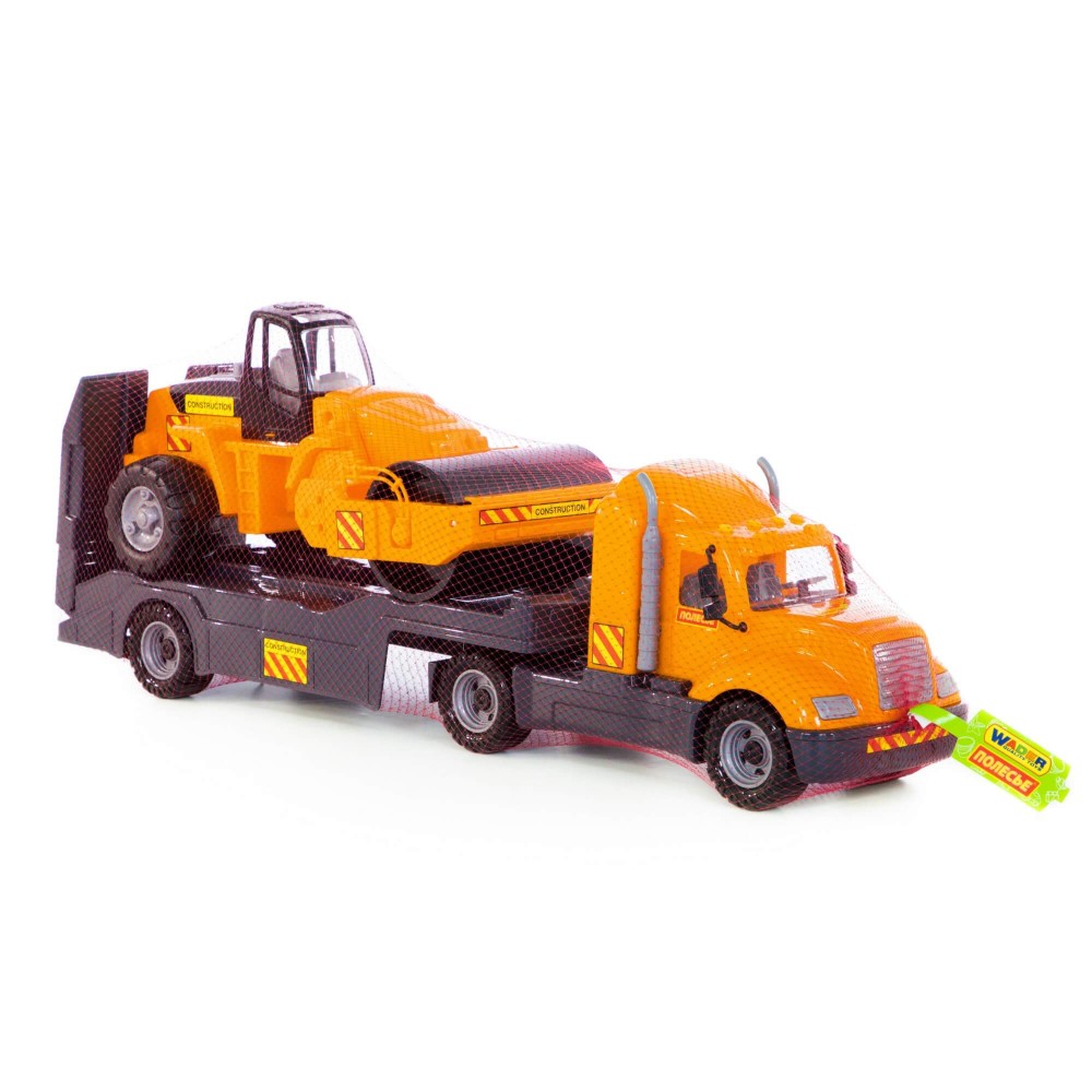 Автомобиль-трейлер из серии «Майк» станет прекрасным дополнением автомобильного мира мальчишек. Игрушка выполнена из долговечного и безопасного материала. Стильный дизайн добавляет реалистичности в играх дома и на свежем воздухе. В комплект входит дорожный каток, который можно перевозить на трейлере. Крупные колёса обеспечивают хорошую проходимость на различных поверхностях. Продуманную эргономику оценят не только дети, но и их родители.