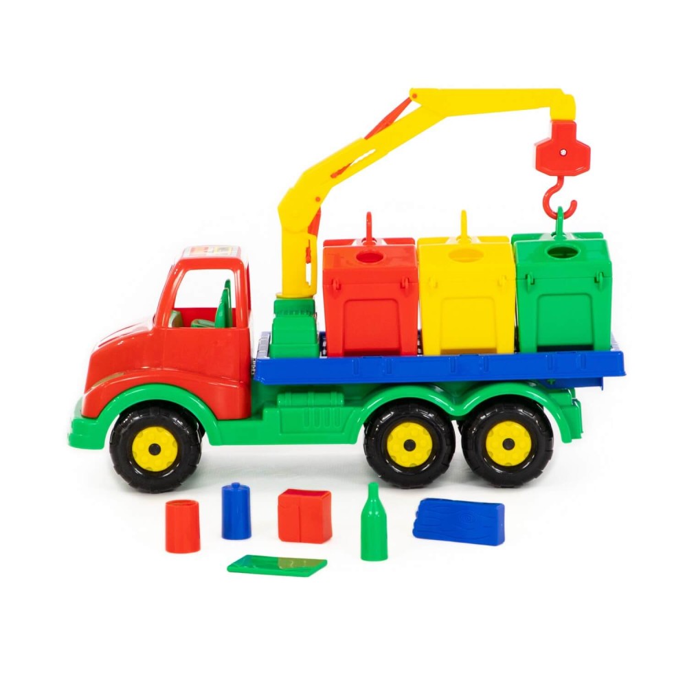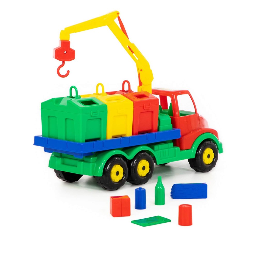 Вместе с контейнерами в наборе идут пластиковые детали, имитирующие разные виды мусора. Серия автомобилей "Муромец" долго прослужит ребёнку и будет радовать его во время игры!