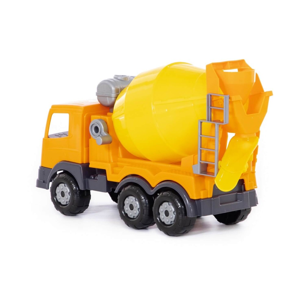 Автомобиль-бетоновоз всегда вызывает у детей повышенный интерес из-за своих функциональных особенностей. Конструкция автомобиля «Престиж» предполагает наличие колёс на трёх железных осях. Ёмкость для перевоза бетоновоза выглядит очень реалистично. Вращение ёмкости происходит путём использования специального рычага. Также конструкция предполагает наличие лестницы. Изготовлена игрушка из качественных материалов, она дополнит автопарк любого малыша и сделает игру ещё интереснее!