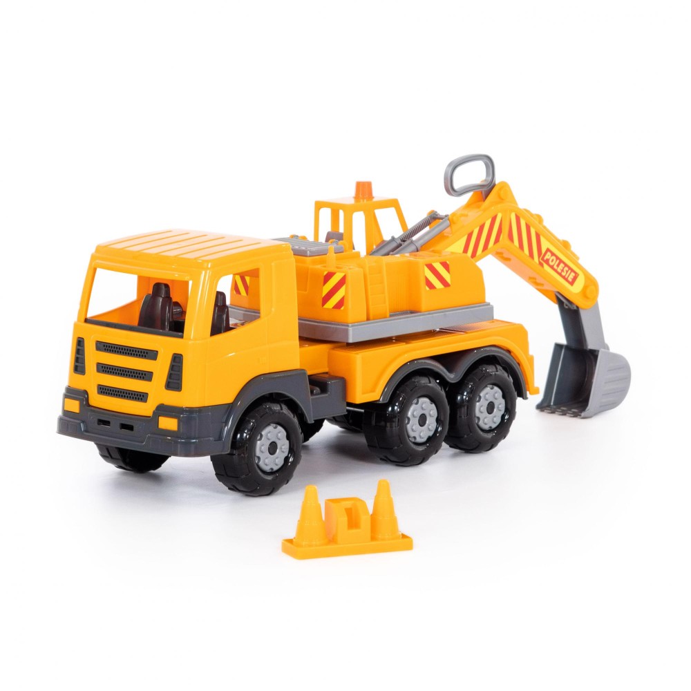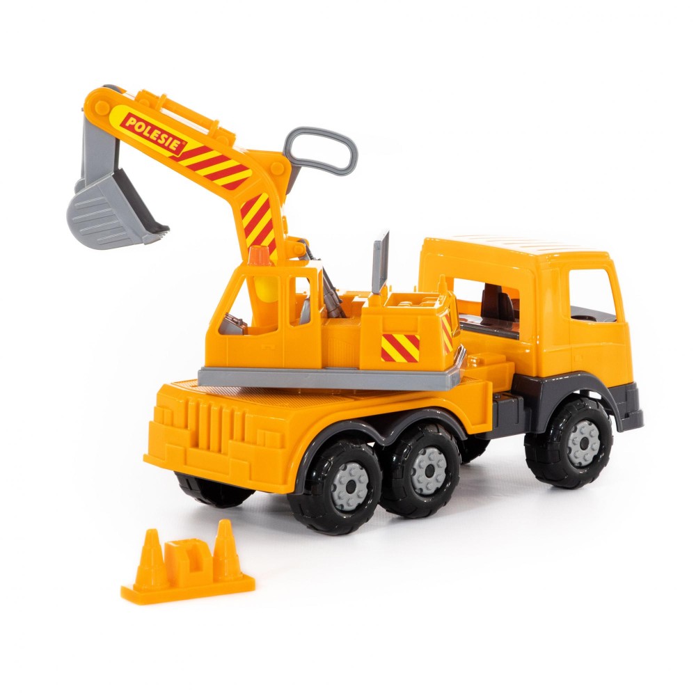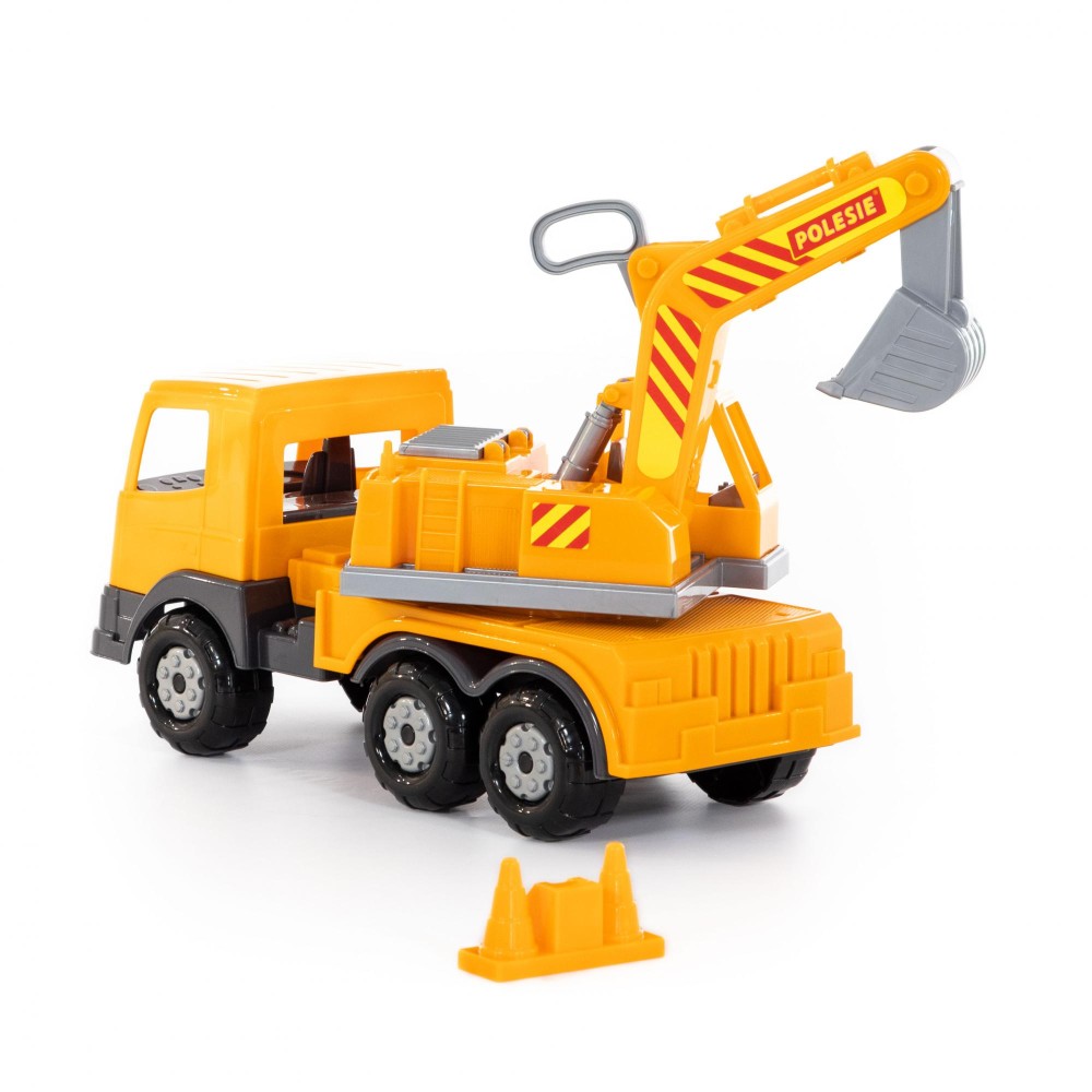 Автомобиль-экскаватор всегда вызывает у детей повышенный интерес из-за своих функциональных особенностей. Конструкция автомобиля «Престиж» предполагает наличие колёс на трёх железных осях. Кузов выглядит очень реалистично. Экскаваторный ковш управляется путём использования специального рычага. Платформа авто вращается, благодаря этому экскаватор выглядит более реалистичным. Изготовлена игрушка из качественных материалов, она дополнит автопарк любого малыша и сделает игру ещё интереснее!