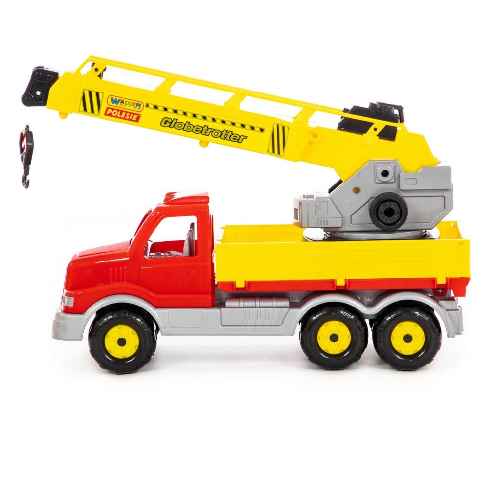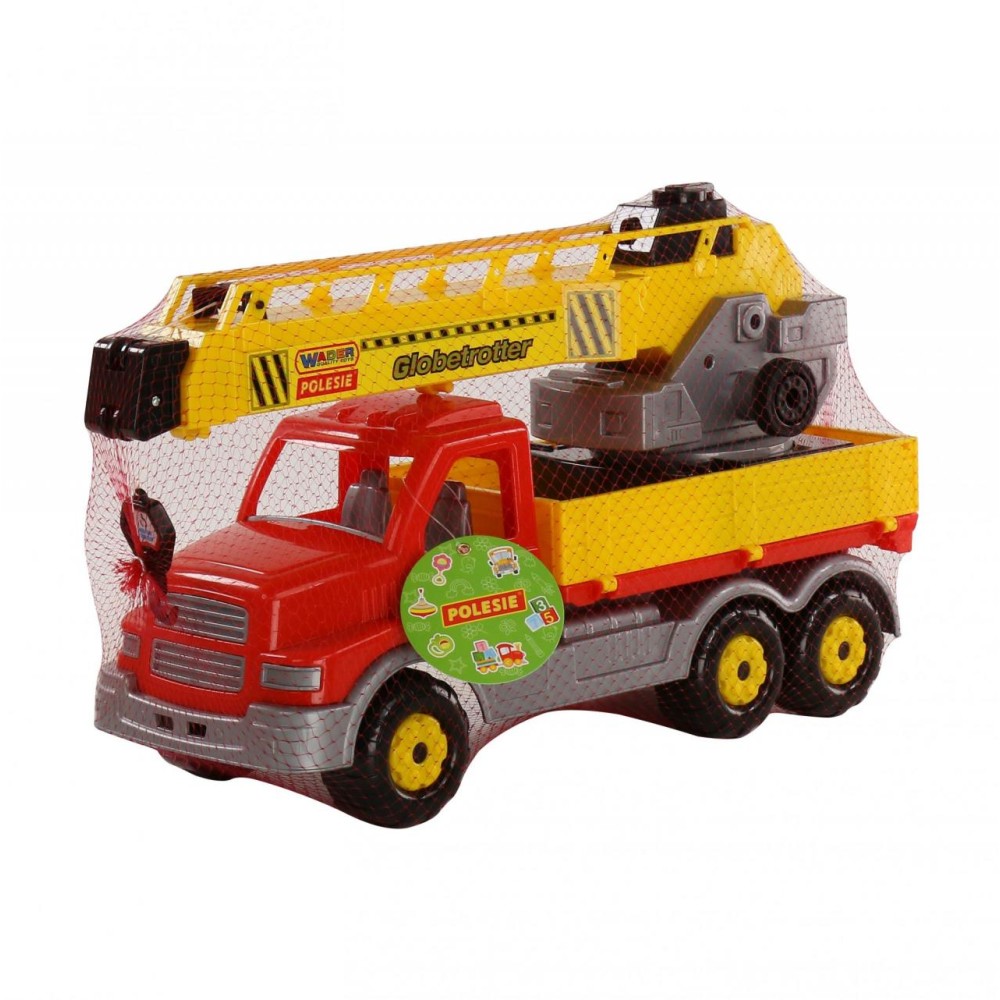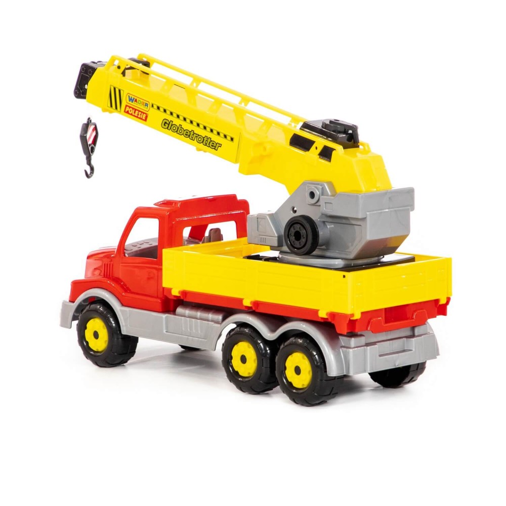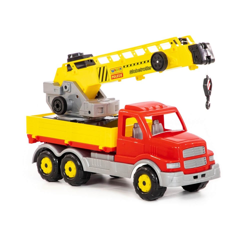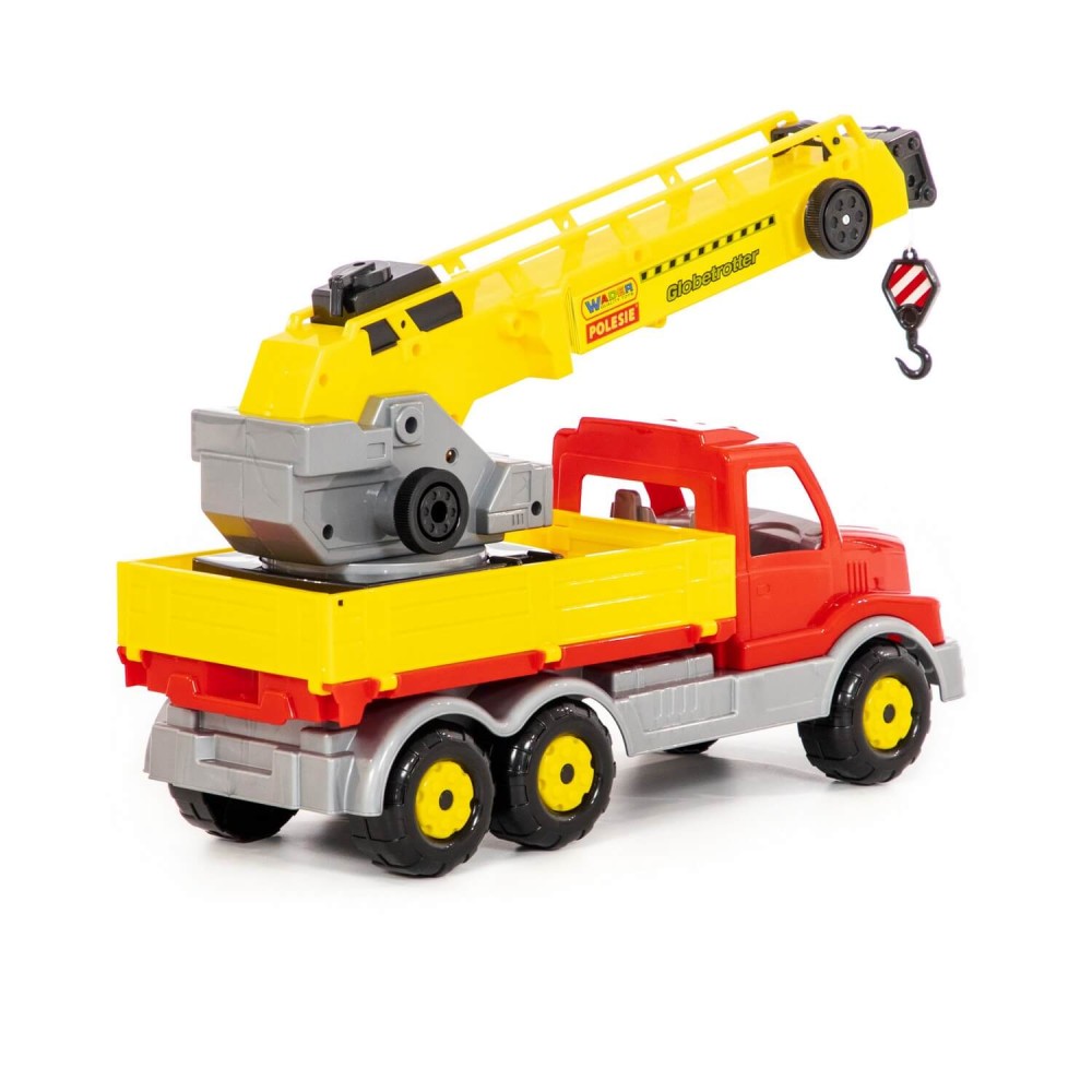 Автомобиль-кран оснащён поворотной платформой, которая позволяет ребёнку сделать игру более реалистичной. Также этому способствует расцветка игрушки, которая имитирует окраску настоящей рабочей техники.