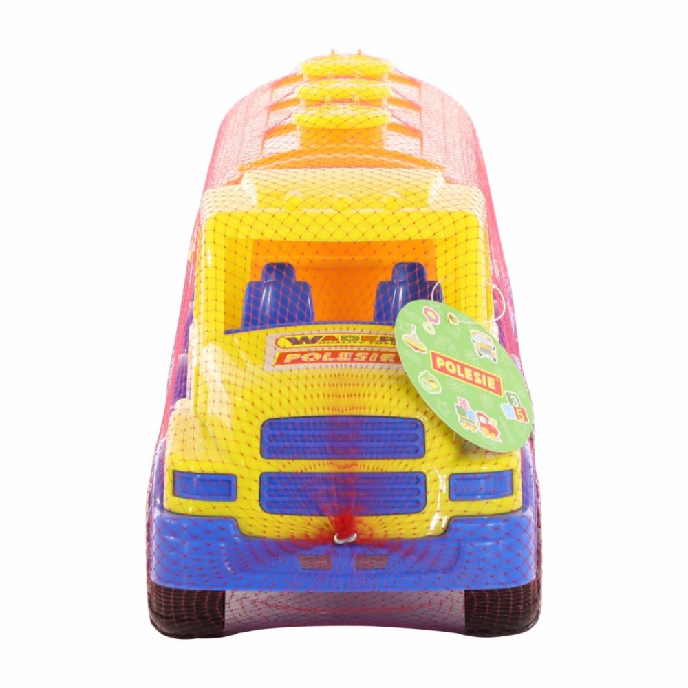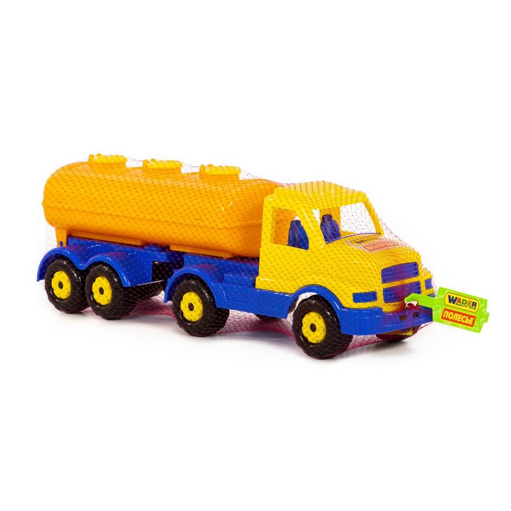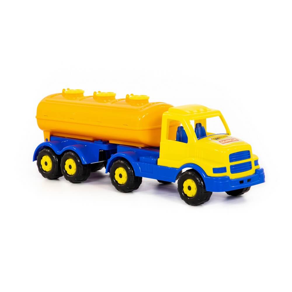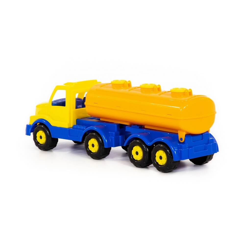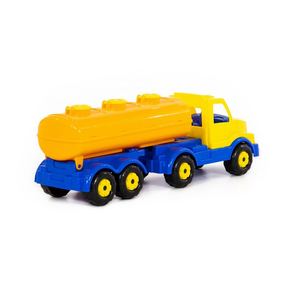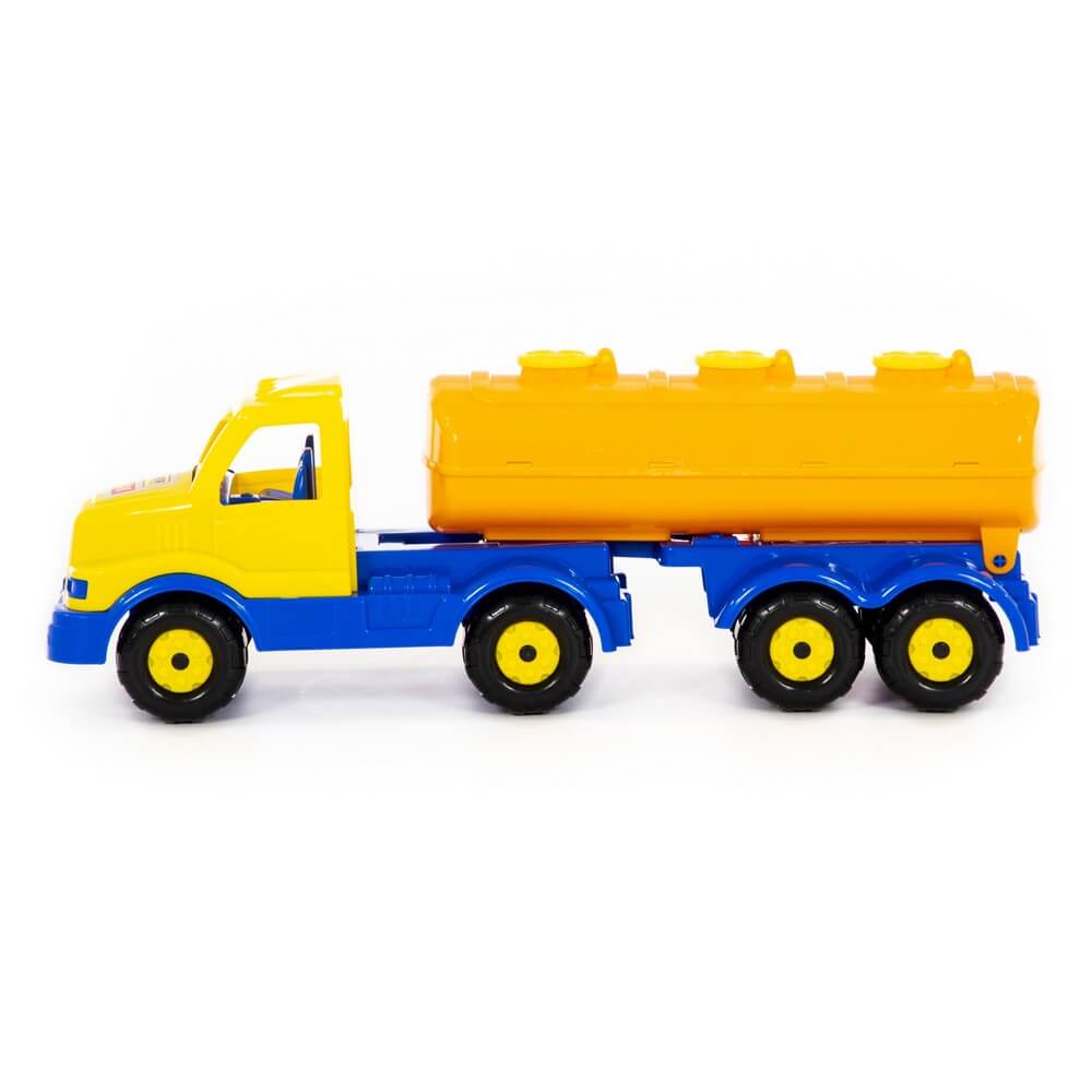 Автомобиль порадует ребёнка большим и вместительным полуприцепом с открывающимися люками, а также надёжными колёсами на металлических осях. Полуприцеп-цистерну можно отцепить и придумывать различные сценарии игры. Изготовлена игрушка из качественных материалов, имеет яркую расцветку. Прочная конструкция - это ещё один плюс автомобилей данной серии.