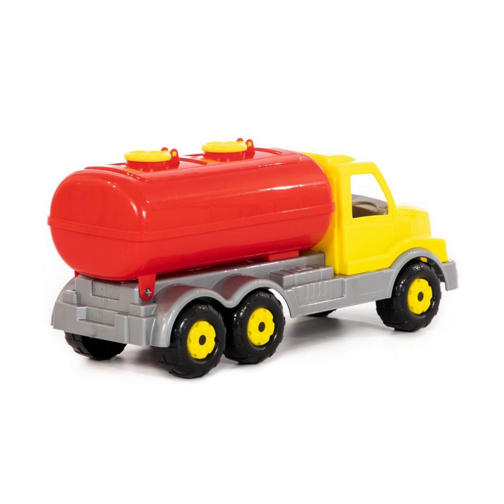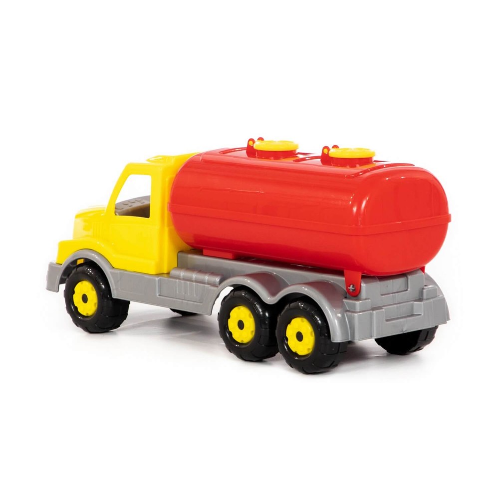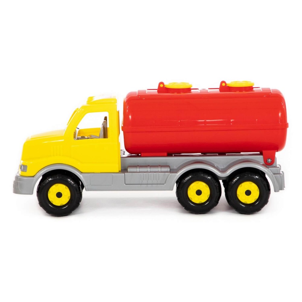 Автомобиль порадует ребёнка большим и вместительным кузовом-цистерной с открывающимися люками, а также надёжными колёсами на металлических осях. Цистерну можно опрокинуть, чтобы без труда разгрузить, это позволит придумывать различные сценарии игры. Изготовлена игрушка из качественных материалов, имеет яркую расцветку. Прочная конструкция - это ещё один плюс автомобилей данной серии.