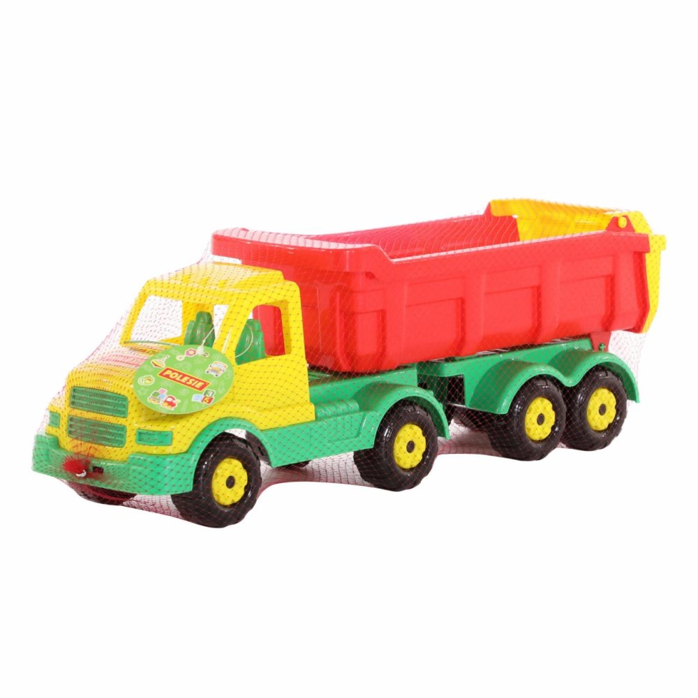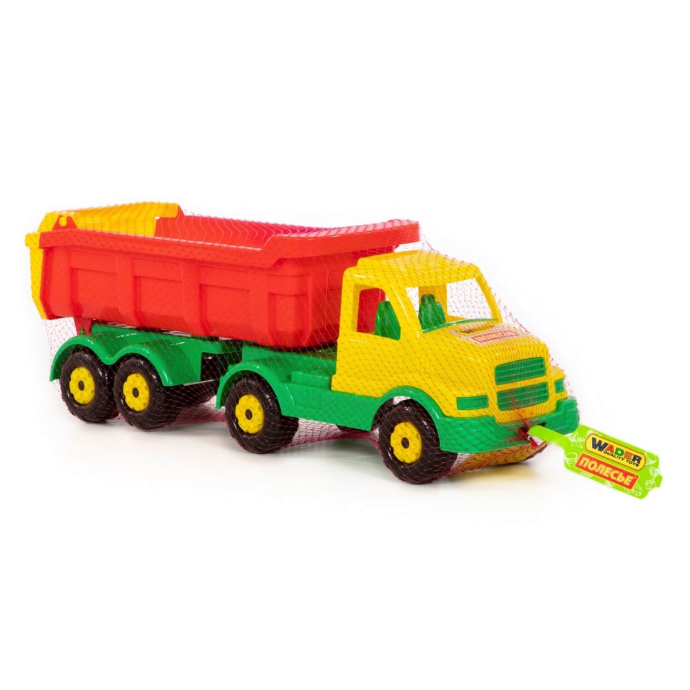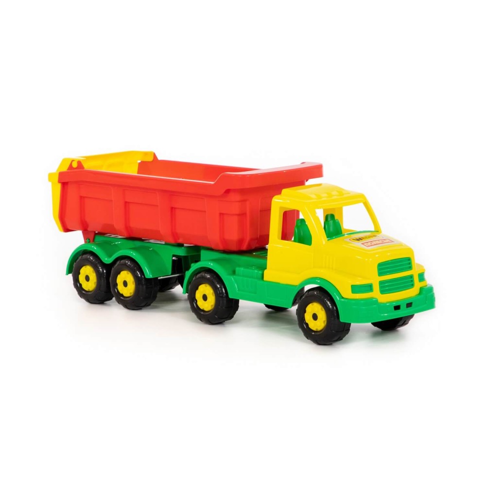Самосвал с полуприцепом этой серии имеет средний размер, подходит для игры дома и в песочнице. Самосвал порадует ребёнка большим и вместительным кузовом, а также надёжными колёсами на металлических осях. Наличие откидного борта на кузове упростит разгрузку во время игры, сделает её ещё интереснее. Игрушка изготовлена из качественных материалов, имеет яркую расцветку. Прочная конструкция - это ещё один плюс автомобилей данной серии.