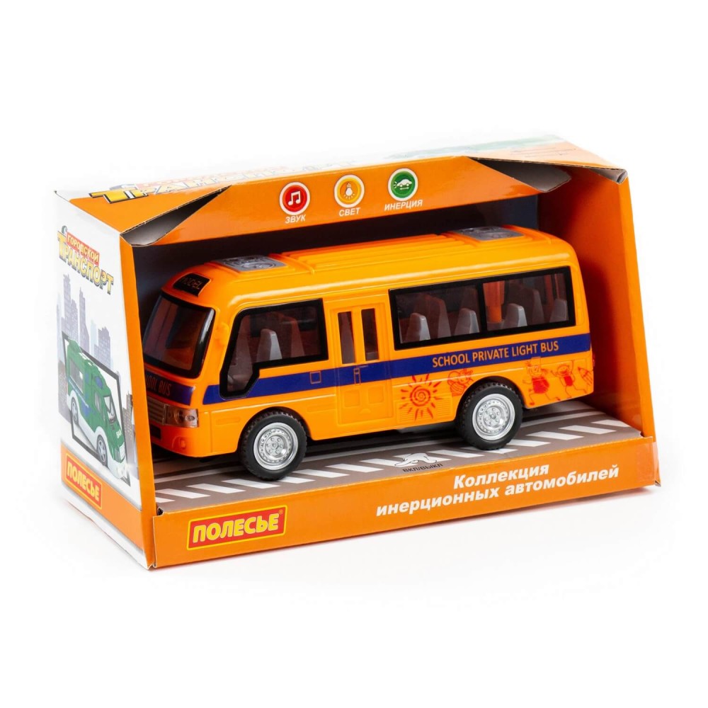 ""Школьный автобус", автомобиль инерционный (со светом и звуком) (в коробке) от фабрики «Полесье» имеет современный дизайн, соответствующий реальным аналогам транспорта. Игрушка выполнена из качественных материалов. Машинка оснащена инерционным механизмом и резиновыми колёсами, имеет звуковые и световые эффекты. Собери свой автопарк с коллекцией машинок «Городской транспорт» от фабрики «Полесье»!"
