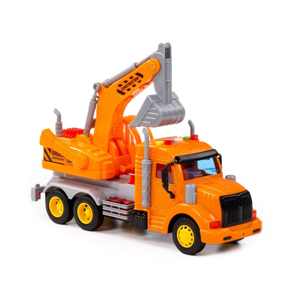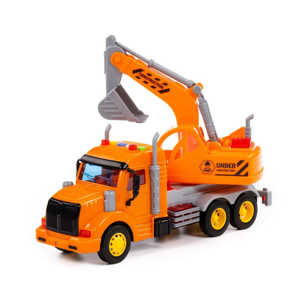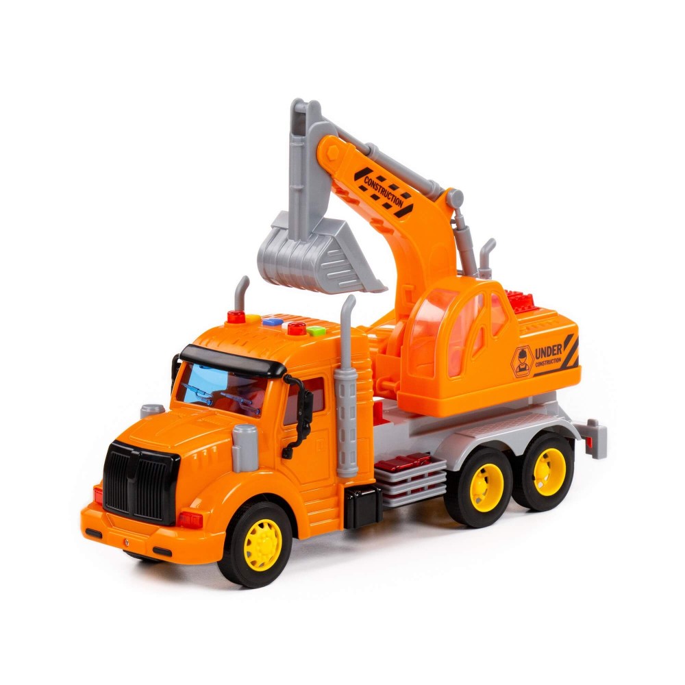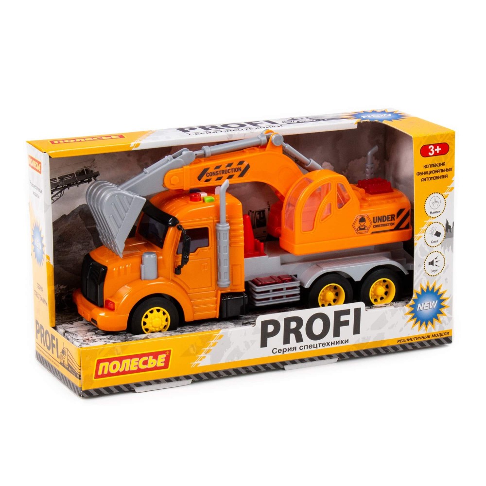 "Профи", автомобиль-экскаватор инерционный (со светом и звуком) (оранжевый) (в коробке)