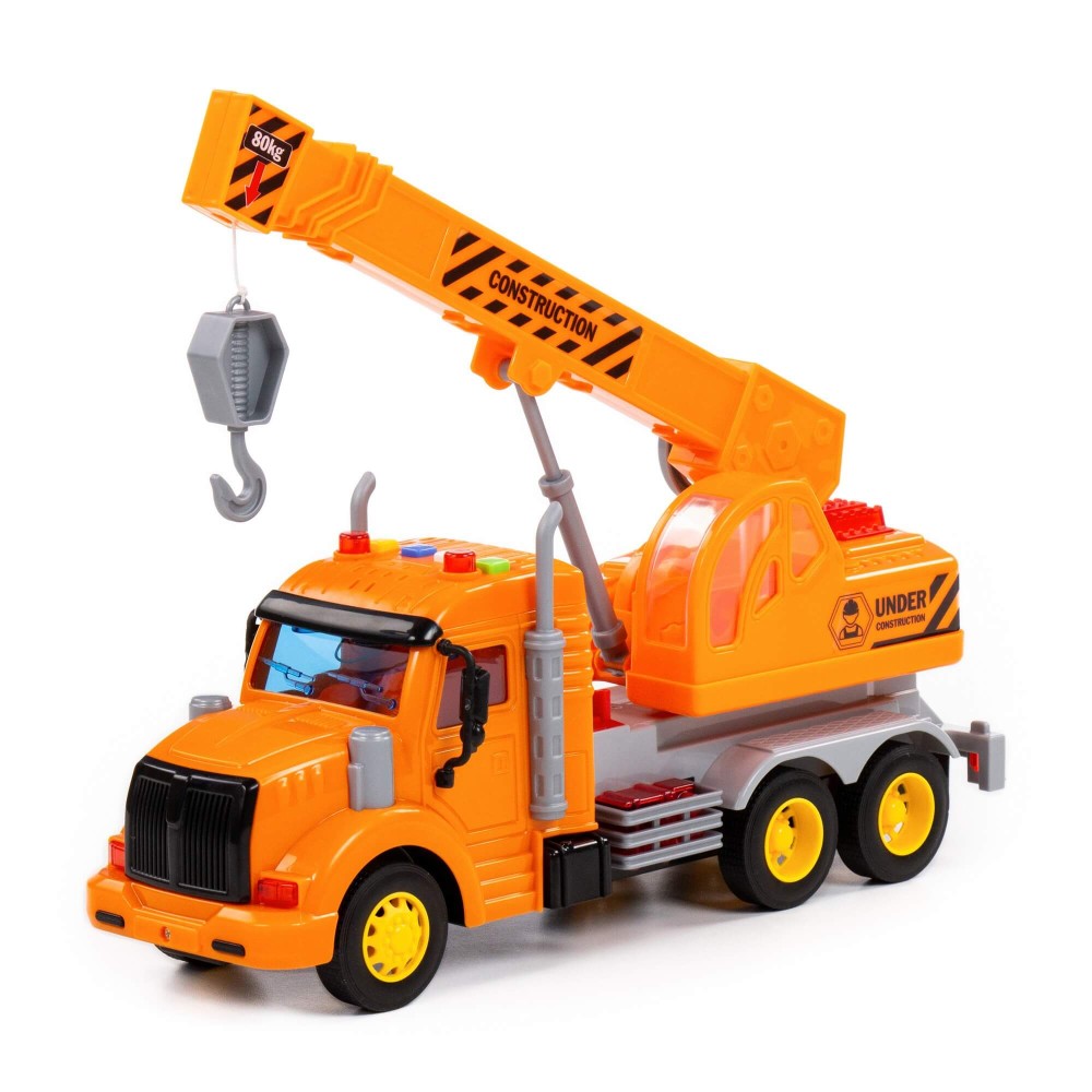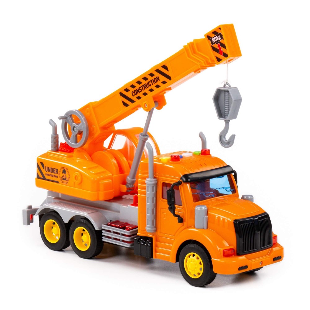 "Профи", автомобиль-кран инерционный (со светом и звуком) (оранжевый) (в коробке)