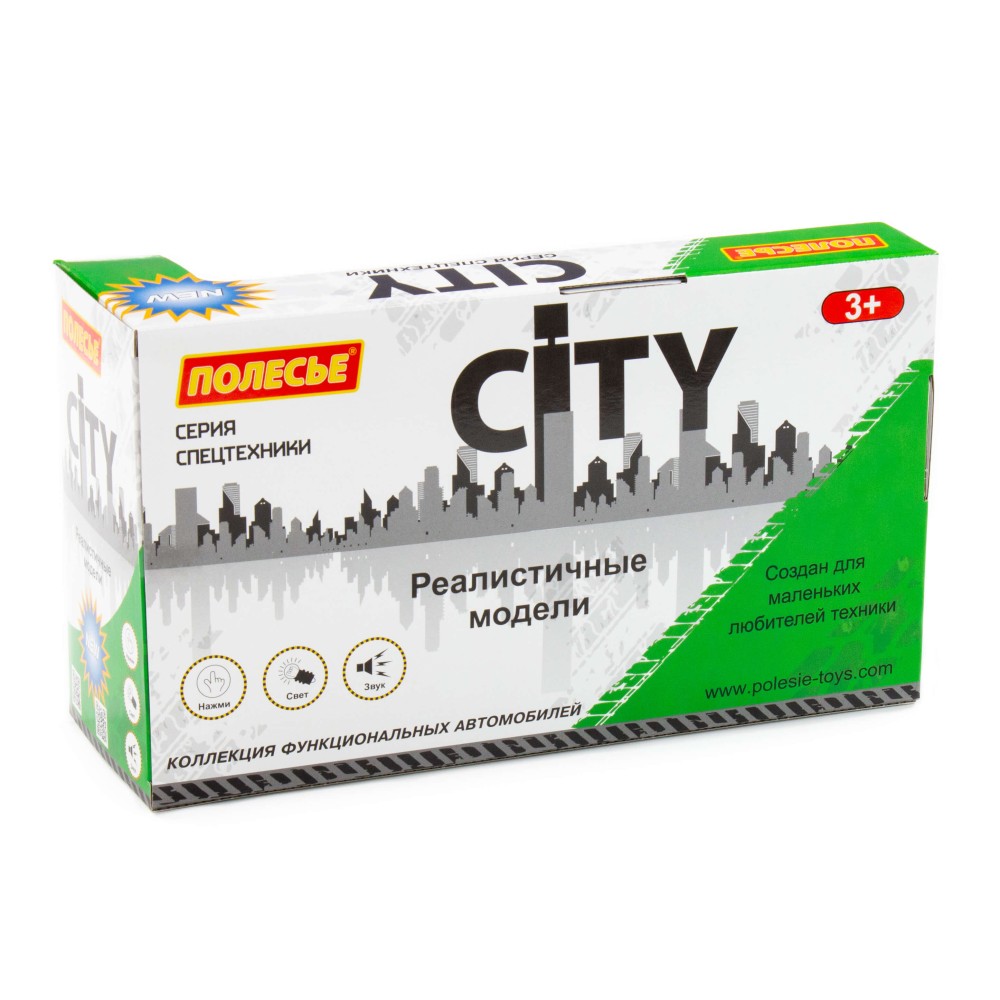 Автомобиль-эвакуатор инерционный «Сити» от фабрики «Полесье» - это качественная реалистичная игрушка, конструкция которой полностью повторяет дизайн настоящей техники. Спецмашина имеет три пары колёс на металлических осях, кроме того, она оснащена эвакуаторным краном, который позволит придумывать различные сценарии игры. На кабине авто имеется 4 кнопки управления звуковыми и световыми эффектами.