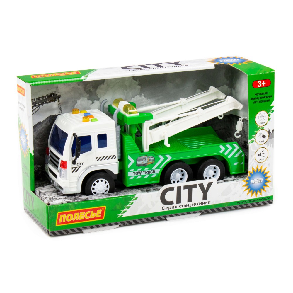 "Сити", автомобиль-эвакуатор инерционный (со светом и звуком) (зелёный) (в коробке)
