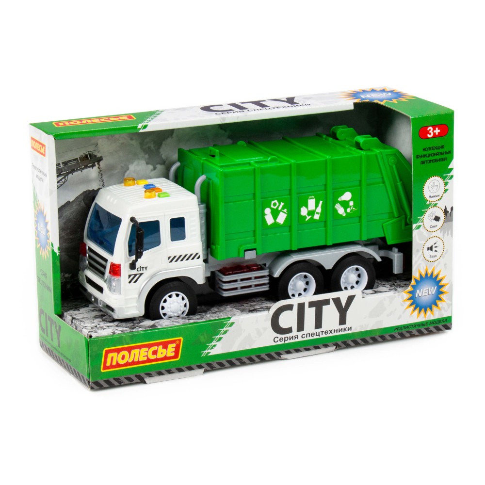 "Сити", автомобиль коммунальный инерционный (со светом и звуком) (зелёный) (в коробке)