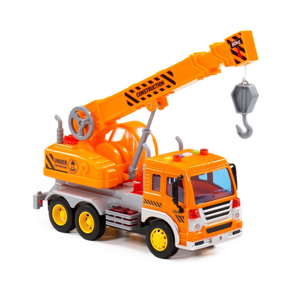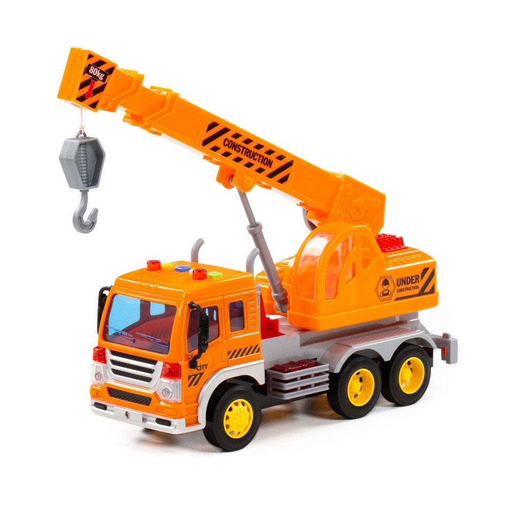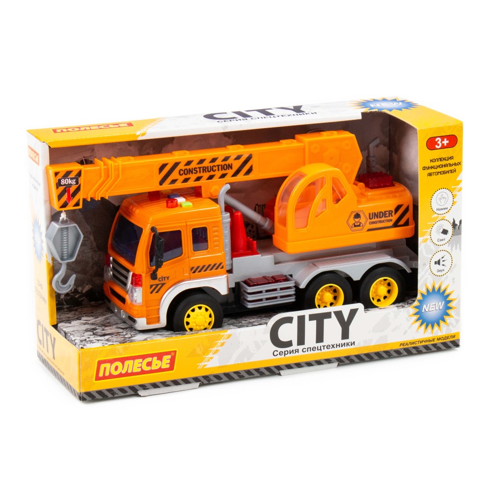 "Сити", автомобиль-кран инерционный (со светом и звуком) (оранжевый) (в коробке)