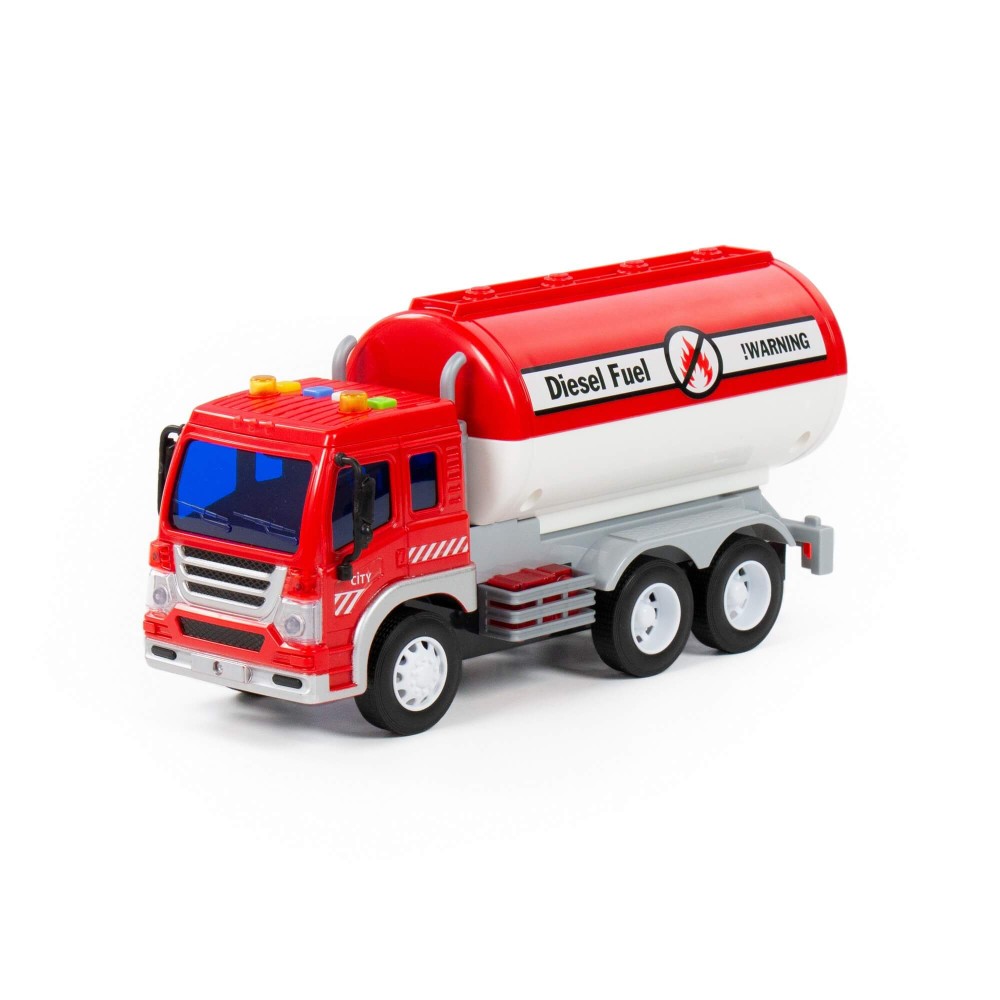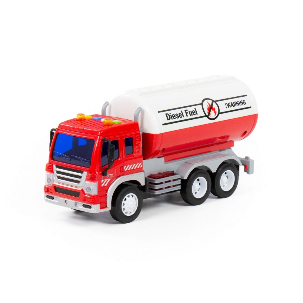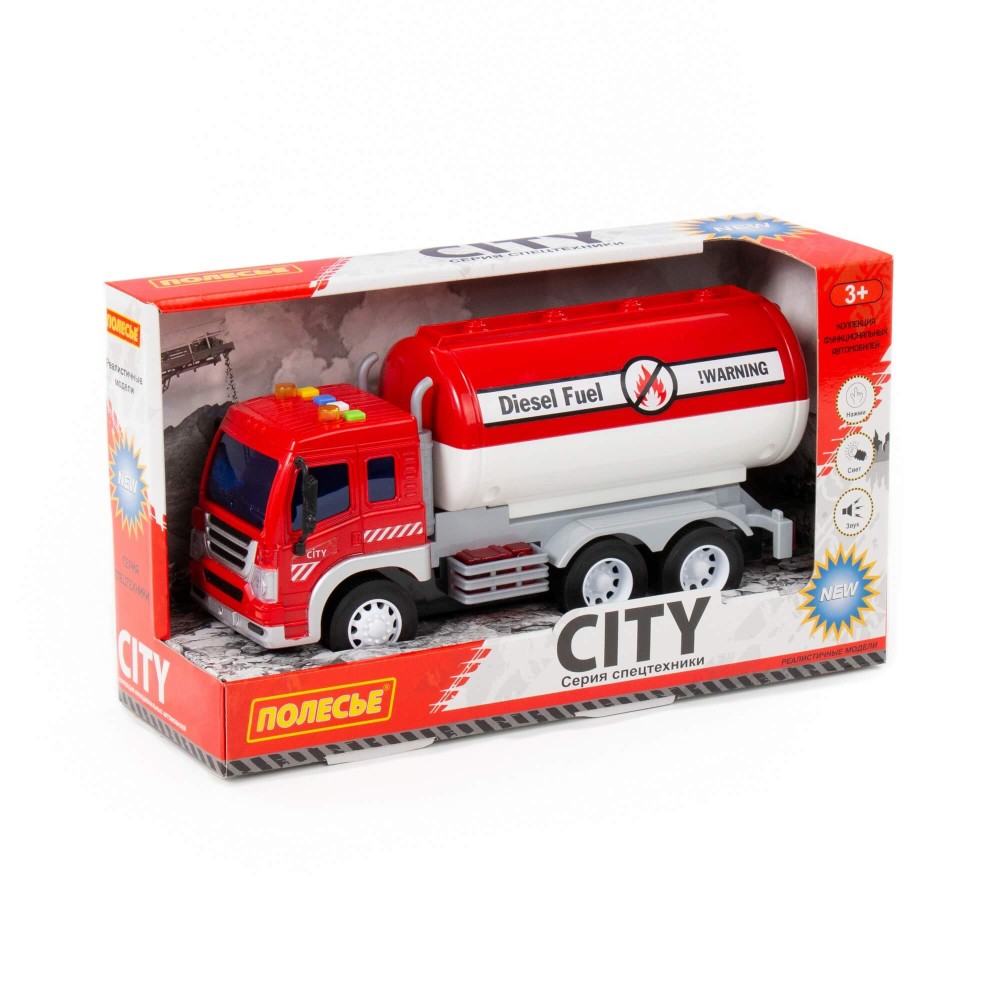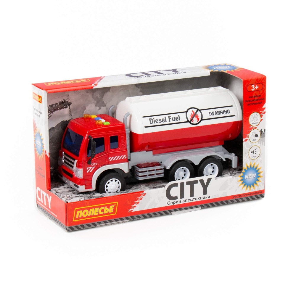 "Сити", автомобиль с цистерной инерционный (со светом и звуком) (красный) (в коробке)