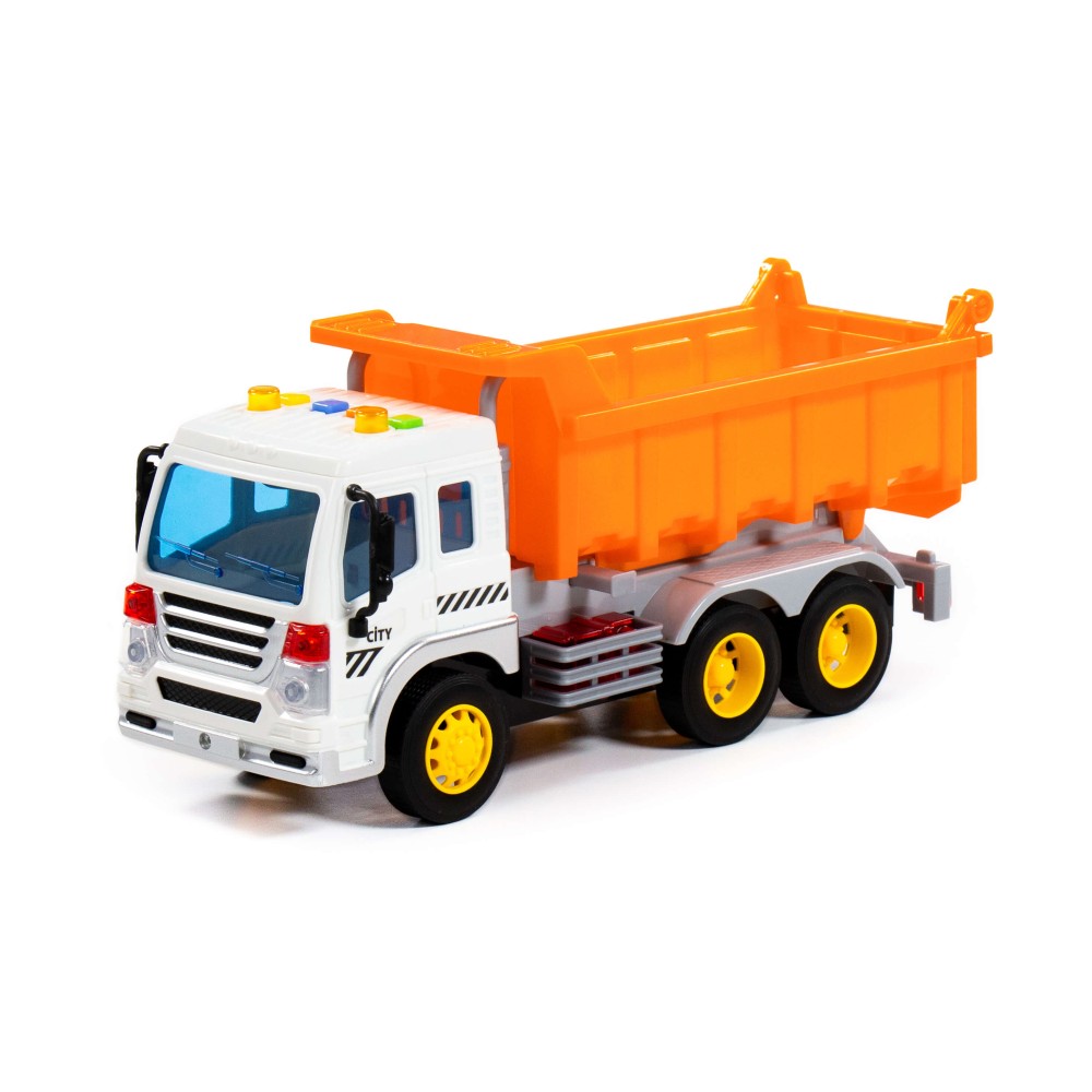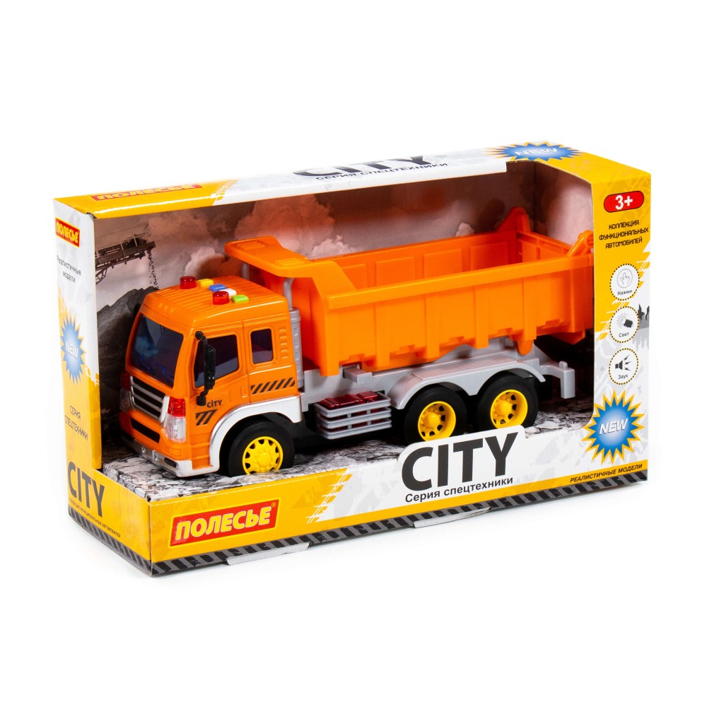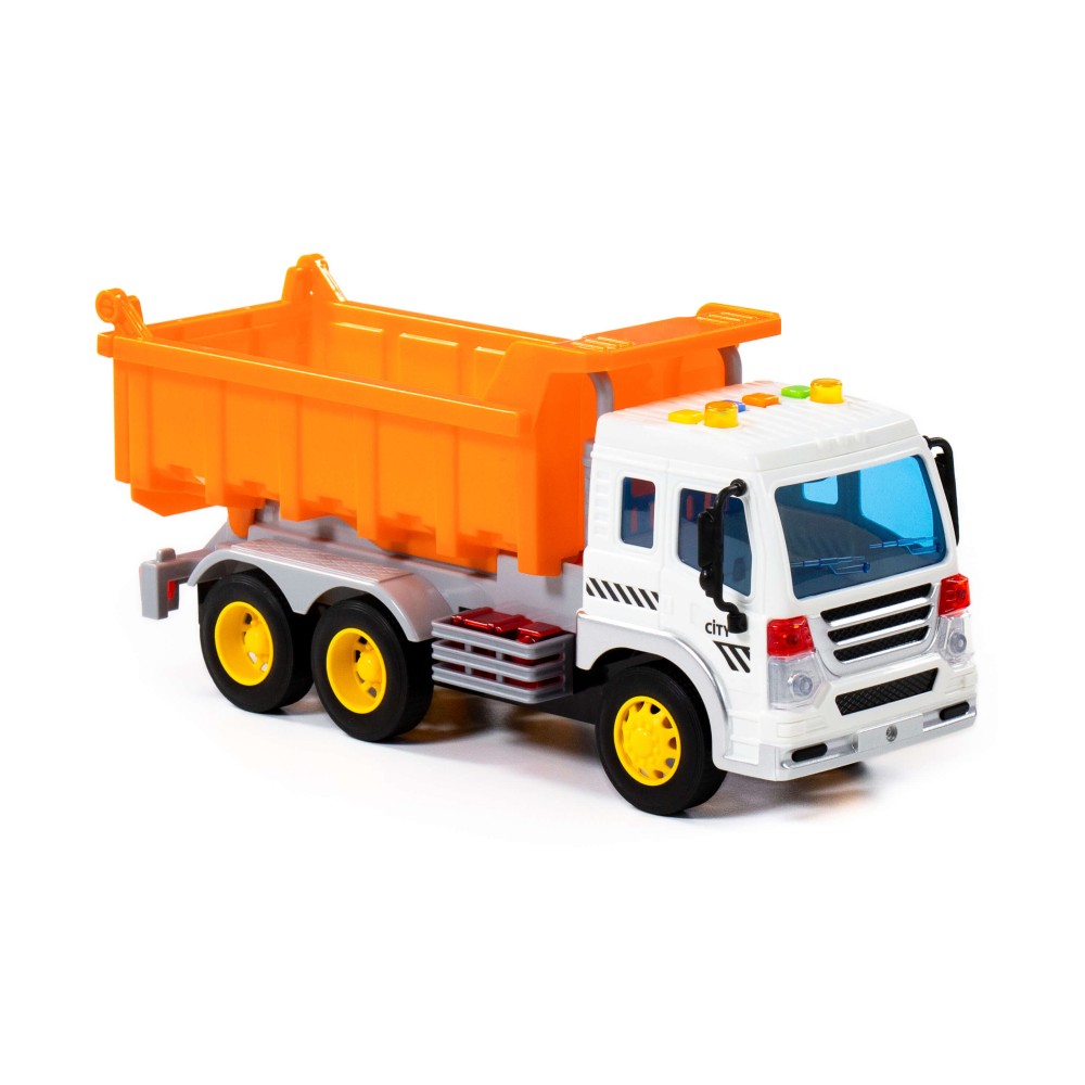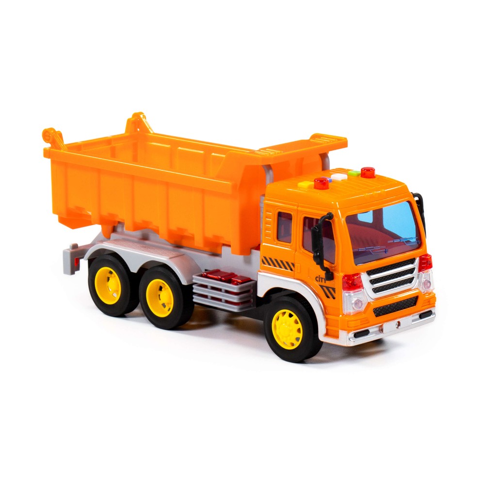 "Сити", автомобиль-самосвал инерционный (со светом и звуком) (оранжевый) (в коробке)