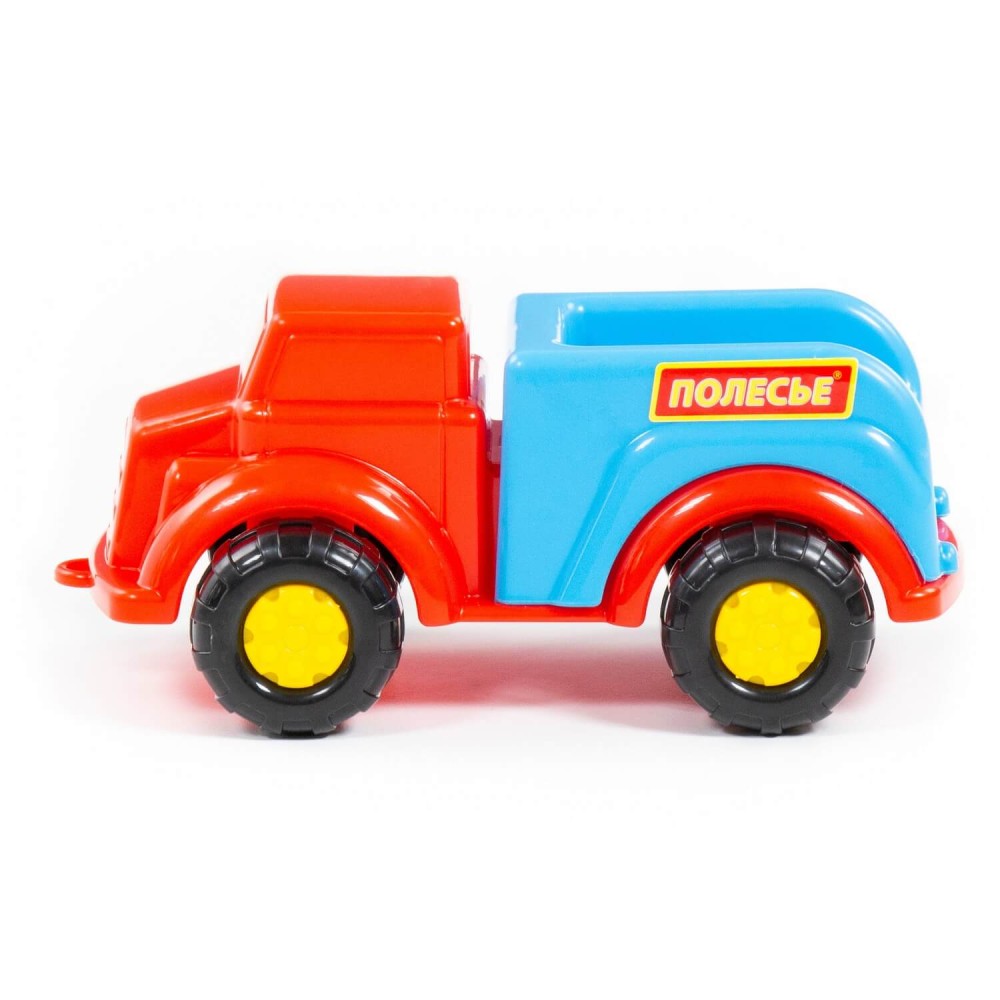 Машинки серии «Антошка» от фабрики «Полесье» небольшие по размеру. Дизайн автомобиля бортового разработан с учётом безопасной игры с ним: округлость форм, яркие цвета деталей, простота и надежность. Необычный кузов-ниша позволяет перевозить мелкие фигурки или играть в песочнице. Машинка относится к серии простых, а её всегда можно взять с собой на прогулку. С такой игрушкой ребёнок изучает основные цвета, развивает мелкую моторику, координацию движений и воображение.
