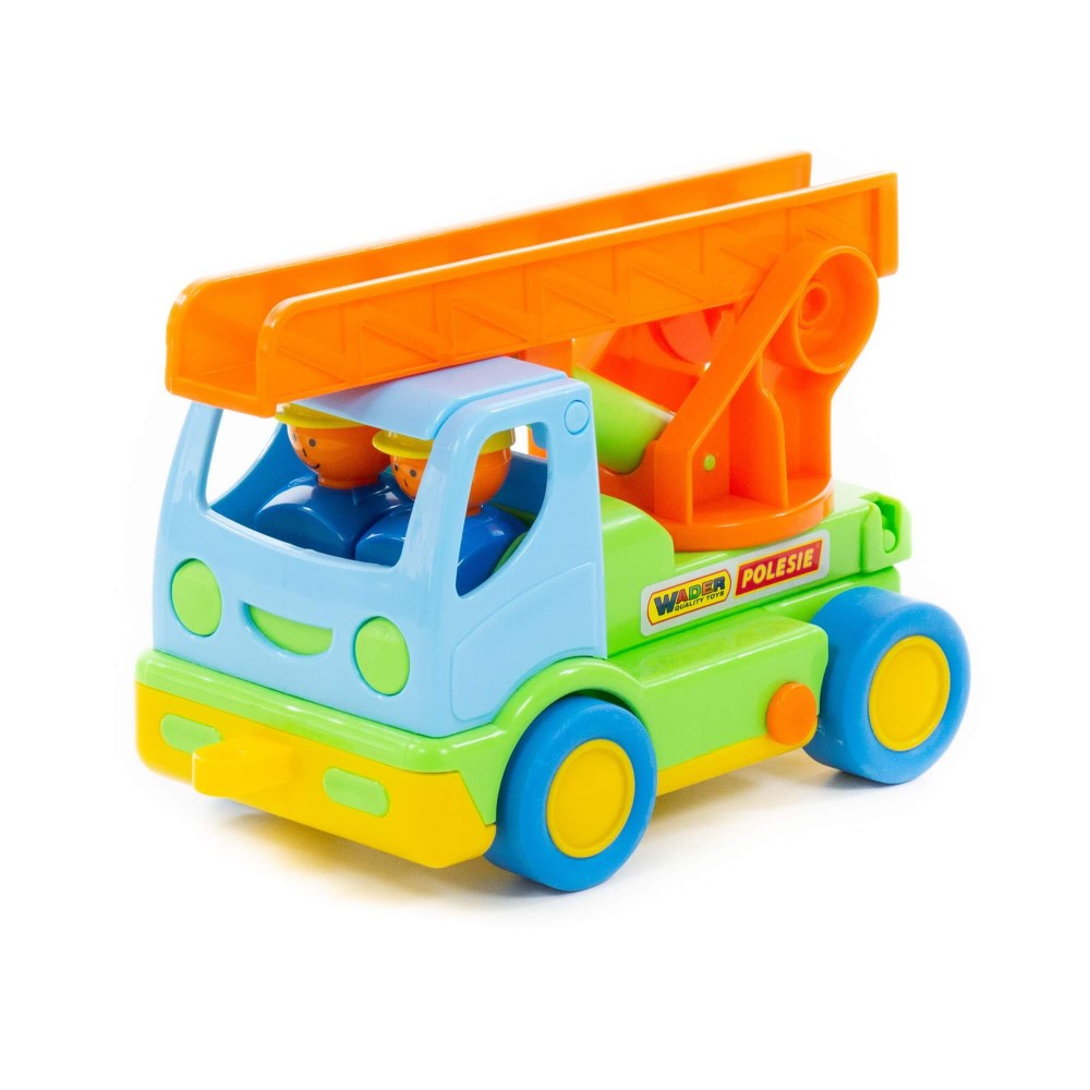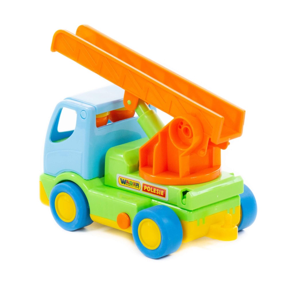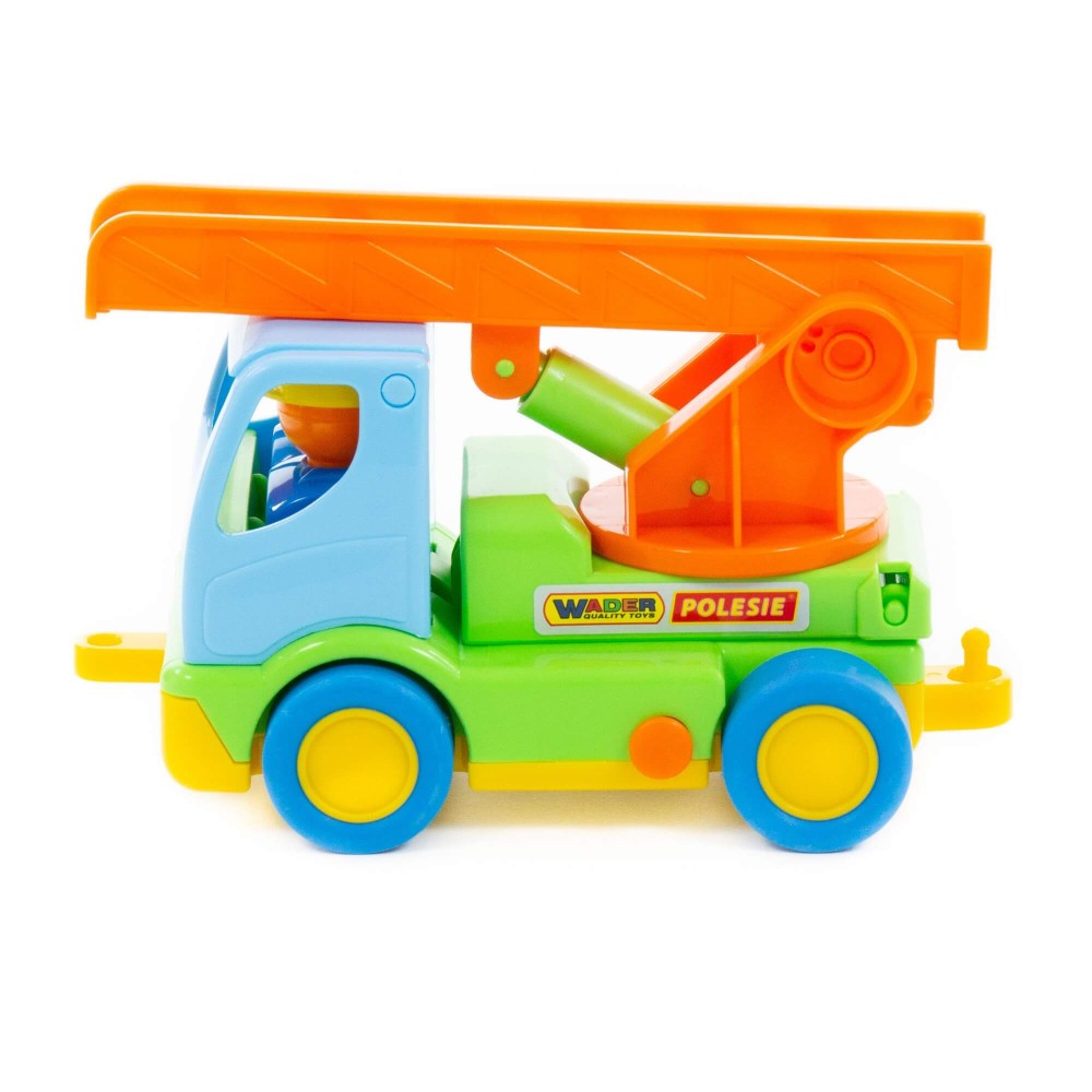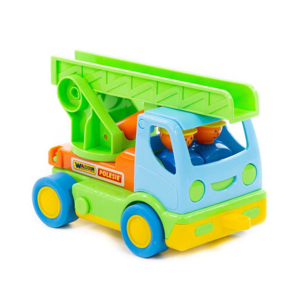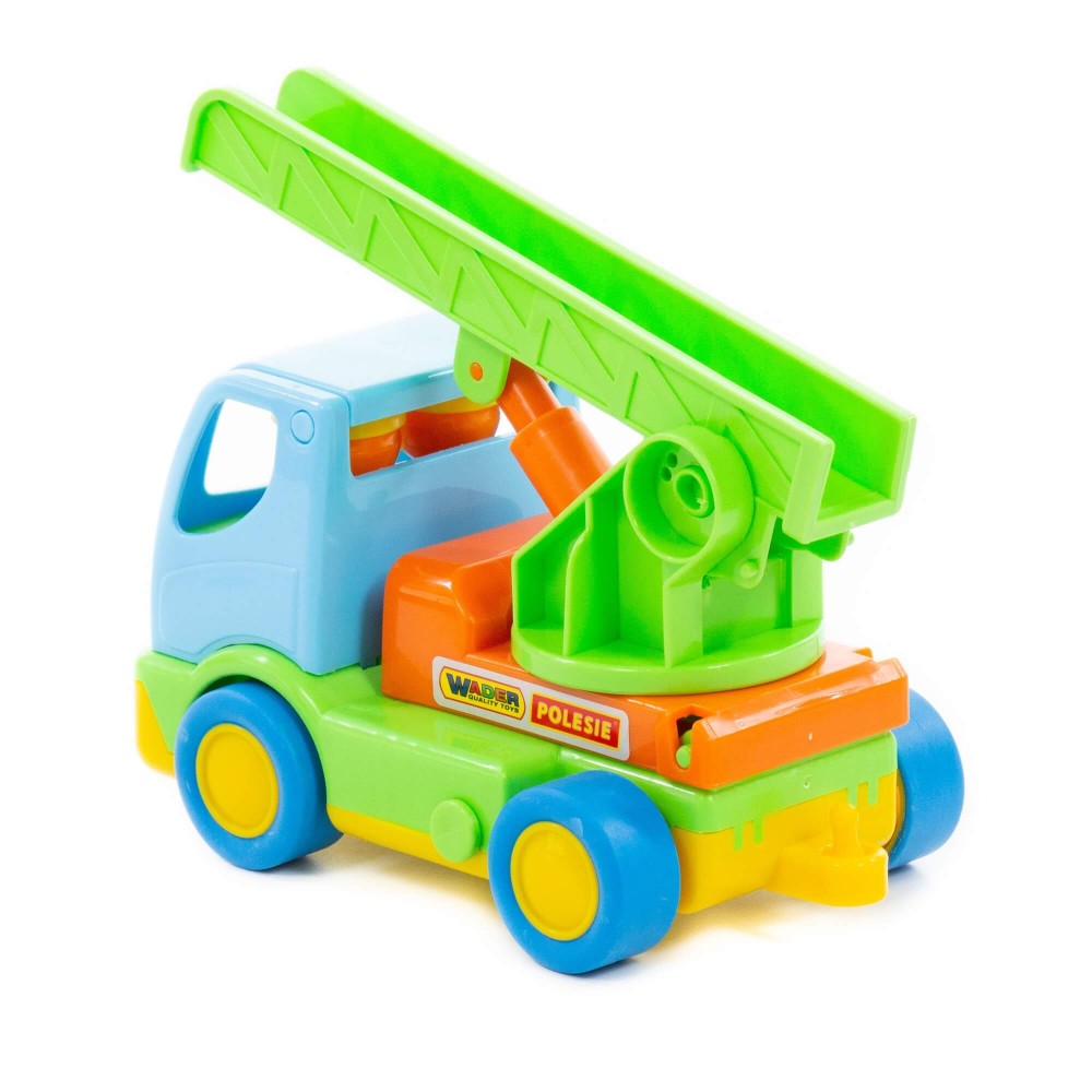 Серия «Мой первый грузовик» от фабрики «Полесье» идеально подходит для того, чтобы стать первой машинкой малыша. Пожарный автомобиль компактный по размеру, создан из качественного пластика. Машинка имеет опции: подъёмный кран. Платформа, на которой установлен кран, крутится. Поэтому игра с автомобилем интересная и познавательная. В кабине помещаются фигурки двух человечков, с которыми можно разыгрывать сценарии игры. Колёса самосвала прорезинены, что обеспечивает минимальный уровень шума при катании игрушки.