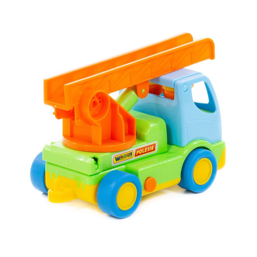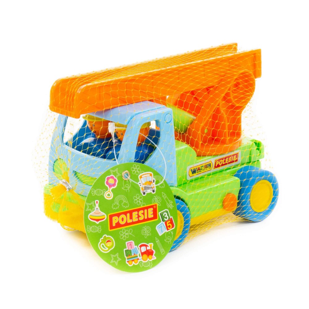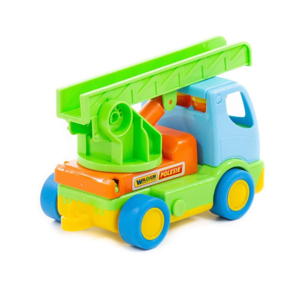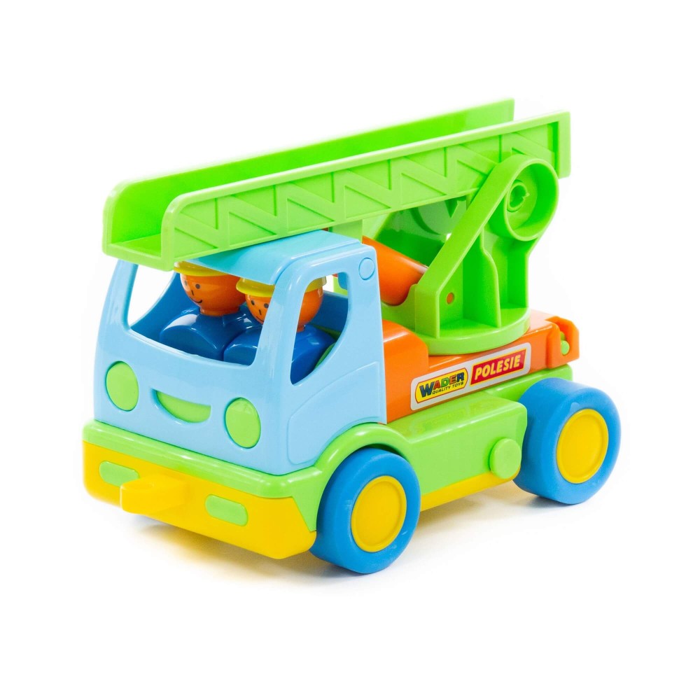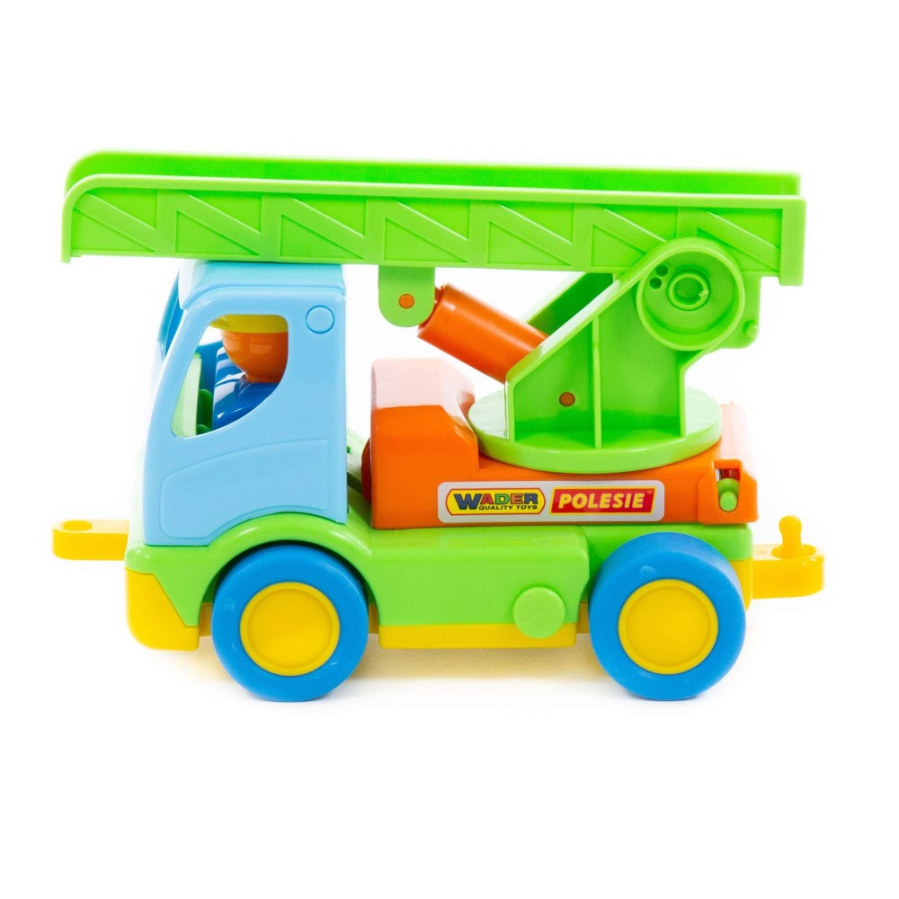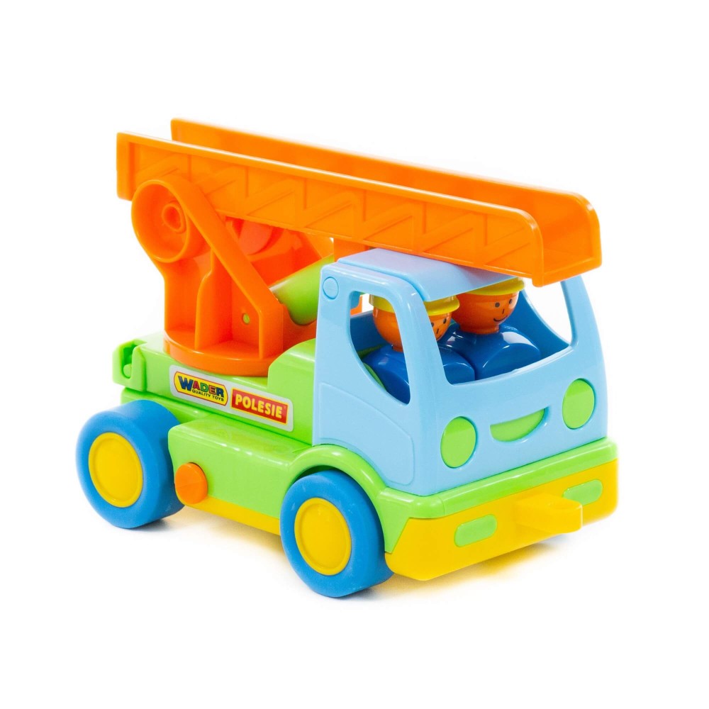 Серия «Мой первый грузовик» от фабрики «Полесье» идеально подходит для того, чтобы стать первой машинкой малыша. Пожарный автомобиль компактный по размеру, создан из качественного пластика. Машинка имеет опции: подъёмный кран. Платформа, на которой установлен кран, крутится. Поэтому игра с автомобилем интересная и познавательная. В кабине помещаются фигурки двух человечков, с которыми можно разыгрывать сценарии игры. Колёса самосвала прорезинены, что обеспечивает минимальный уровень шума при катании игрушки.