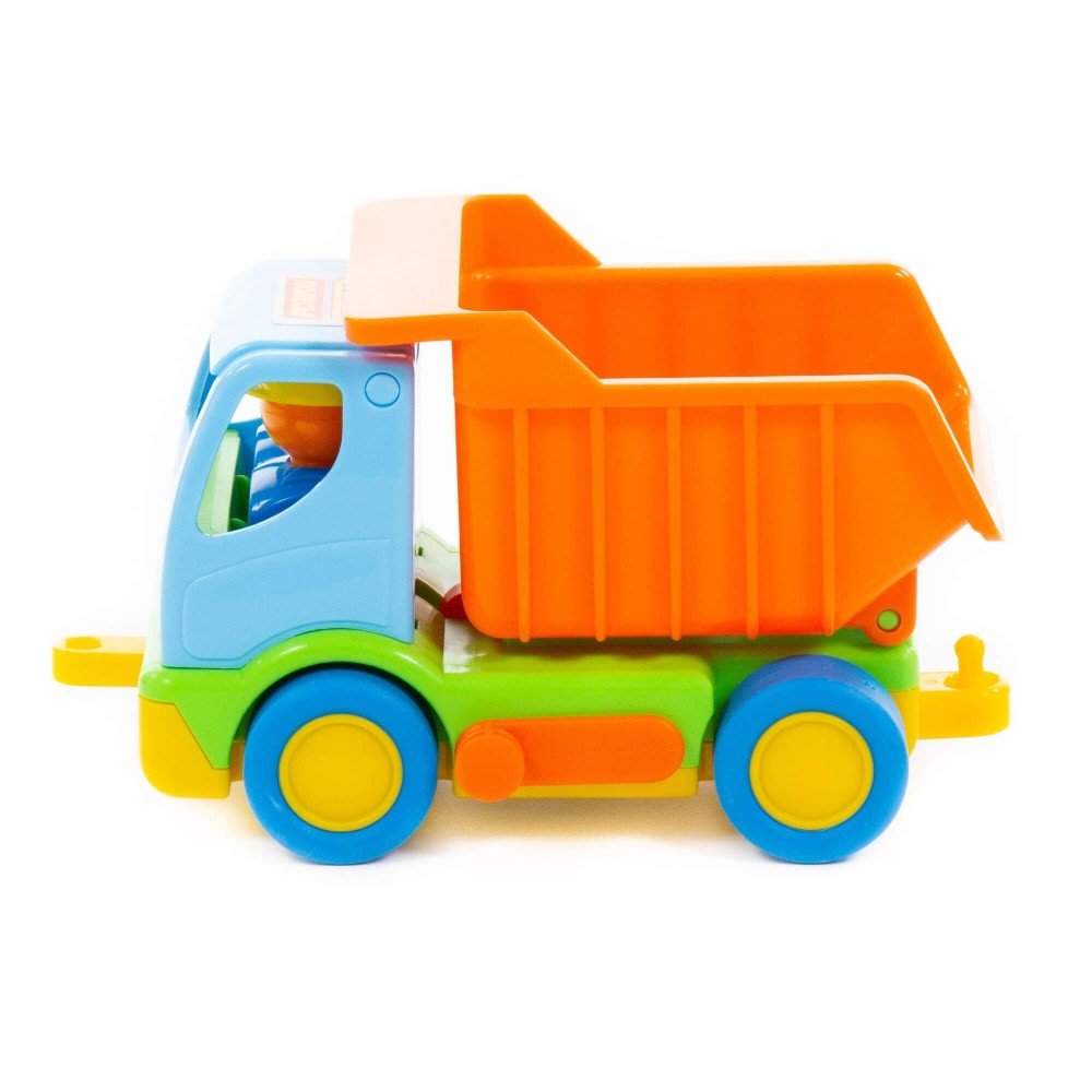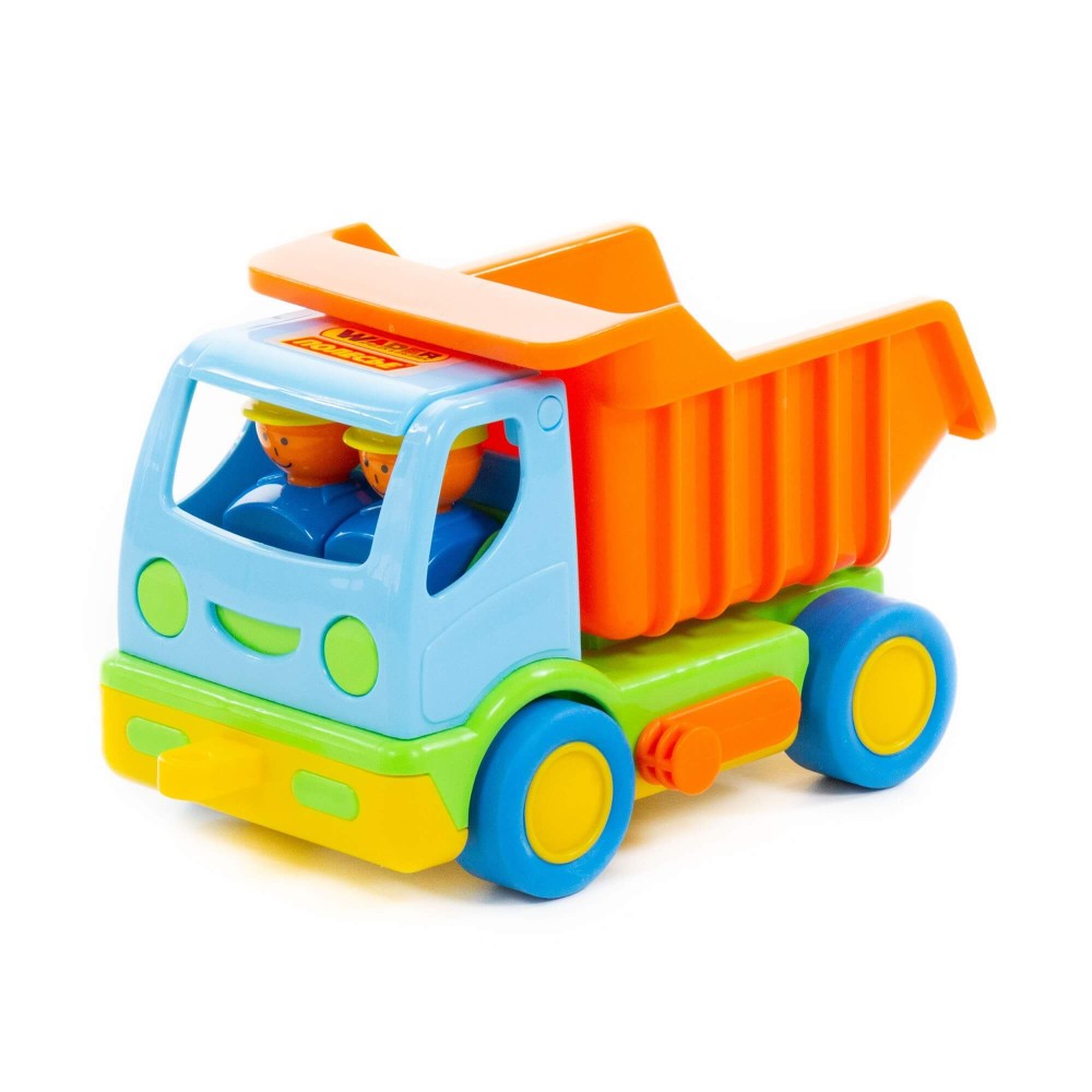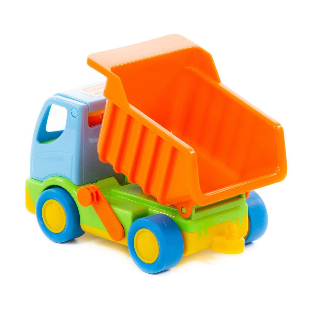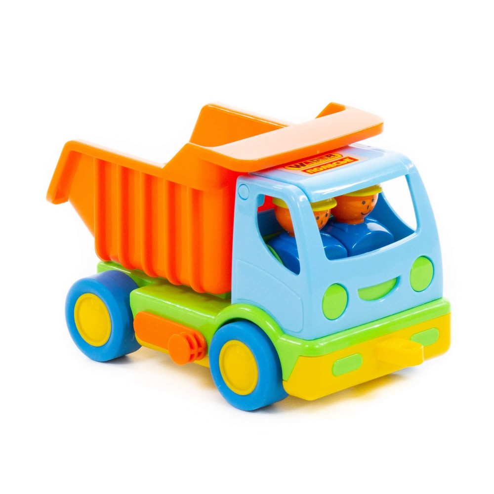 Серия «Мой первый грузовик» от фабрики «Полесье» идеально подходит для того, чтобы стать первой машинкой малыша. Автомобиль-самосвал компактный по размеру, создан из качественного пластика. Машинка имеет опции: кузов подымается, если потянуть за специальный рычажок. Поэтому игра с автомобилем интересная и познавательная. В кабине помещаются фигурки двух человечков, с которыми можно разыгрывать сценарии игры. Колёса самосвала прорезинены, что обеспечивает минимальный уровень шума при катании игрушки.