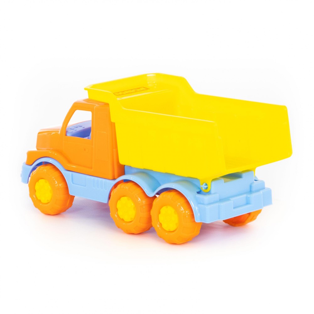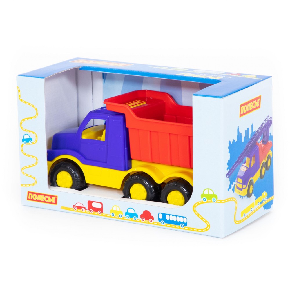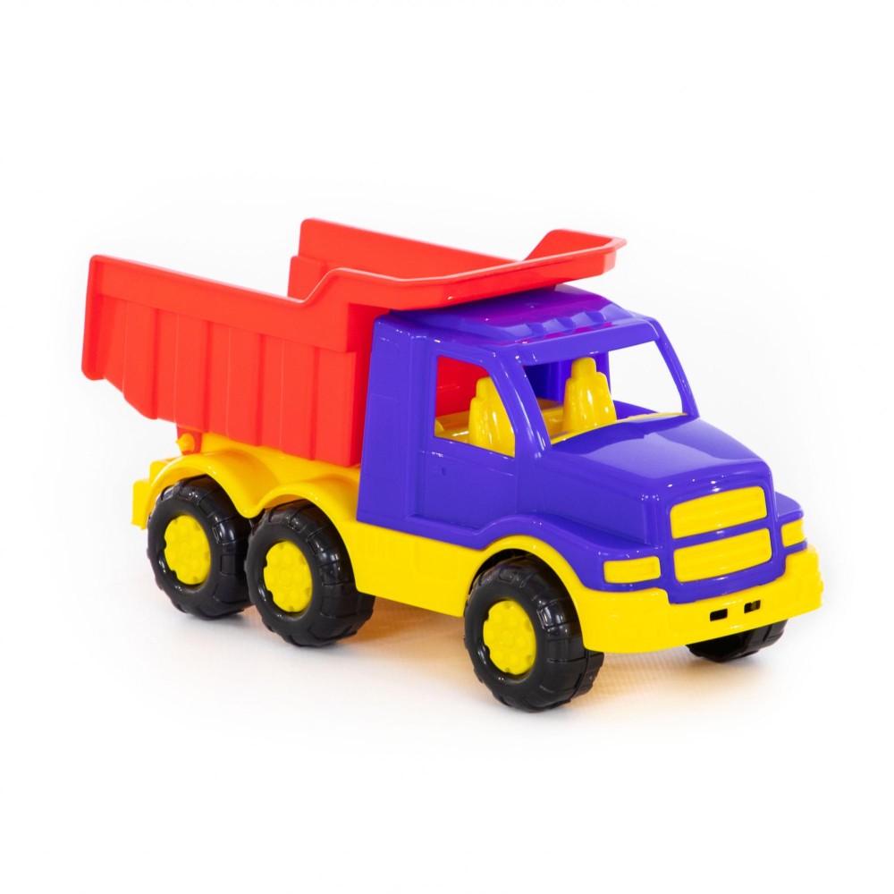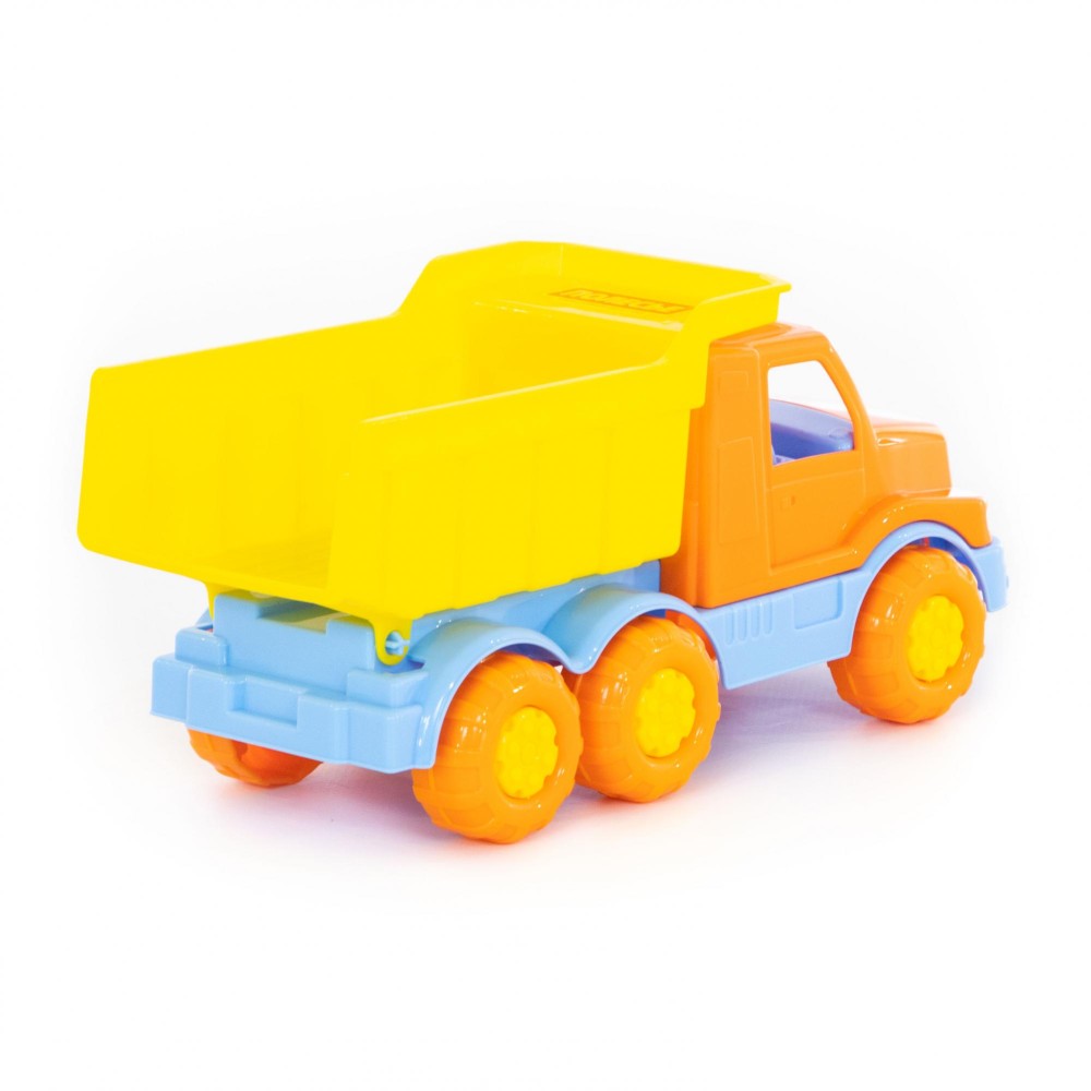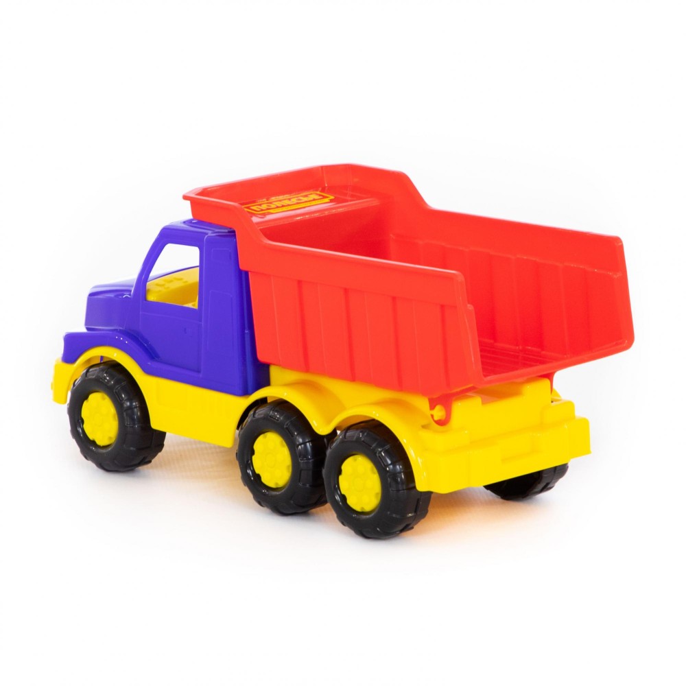 Автомобиль-самосвал "Гоша" имеет оптимальный размер для игры как дома, так и на улице. В кузове карьерного типа удобно возить песок, насыпать и ссыпать его в песочницу.