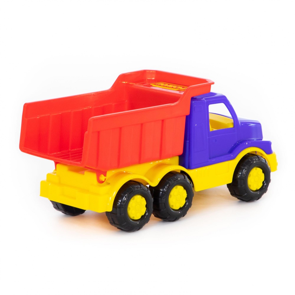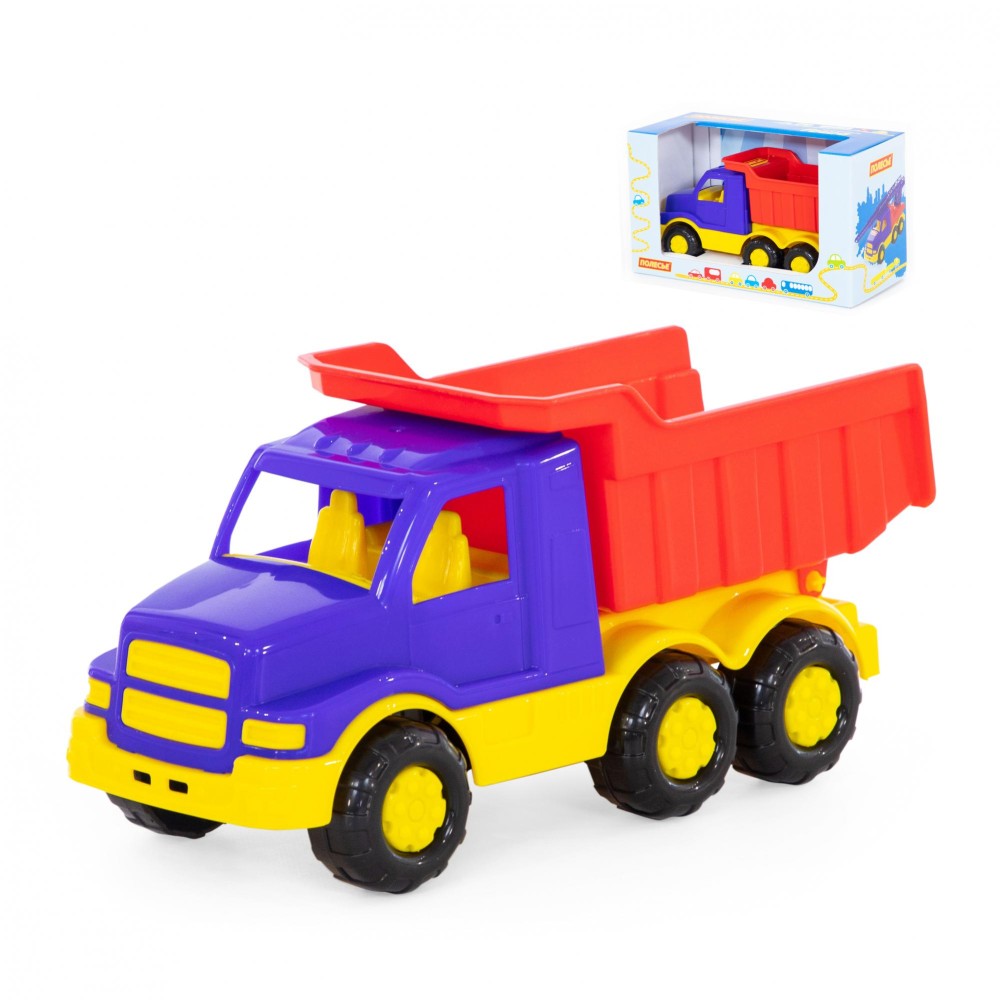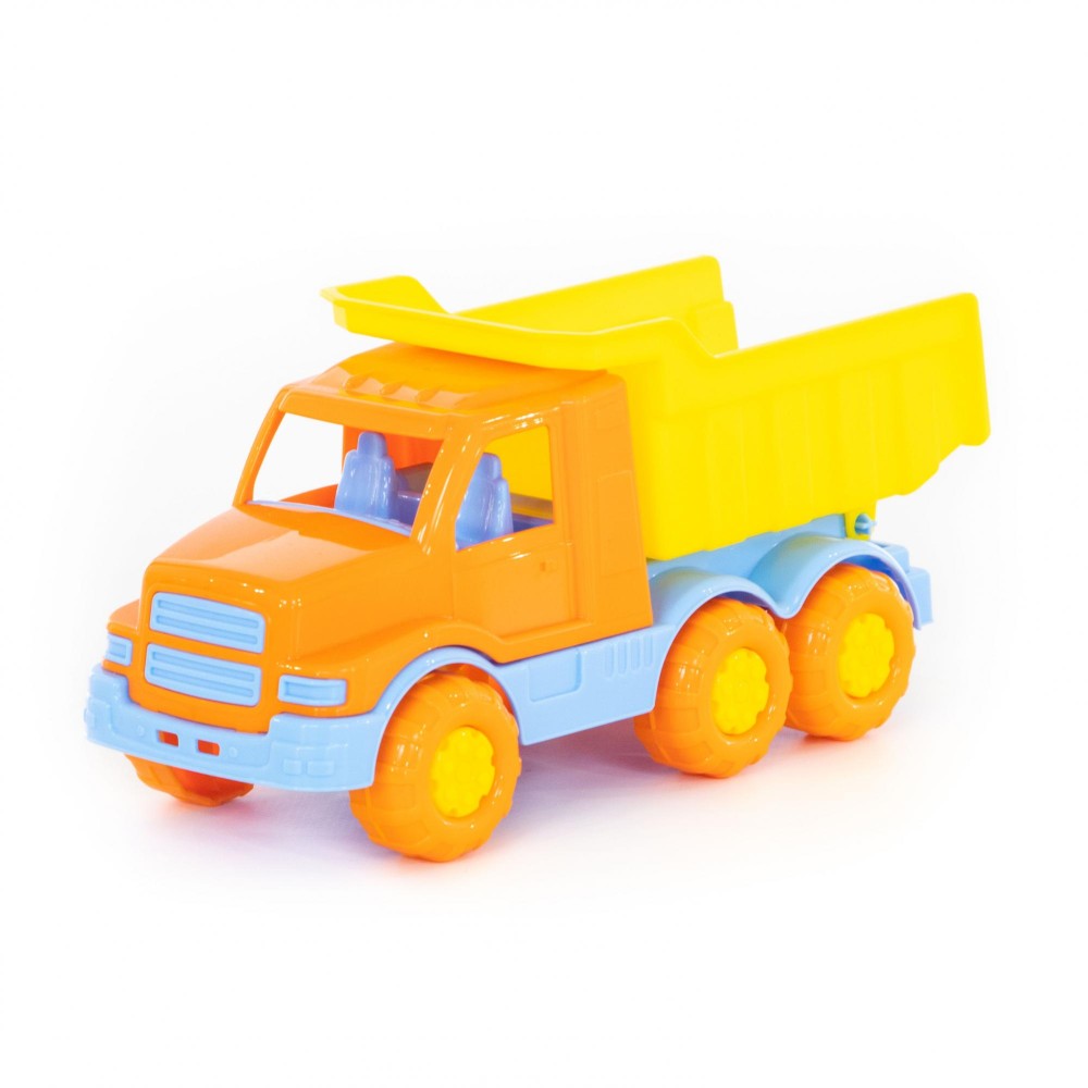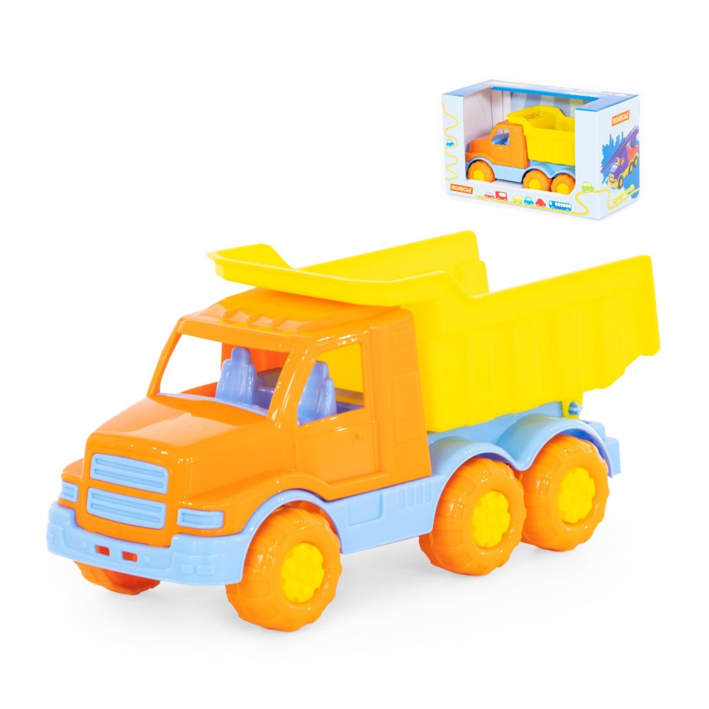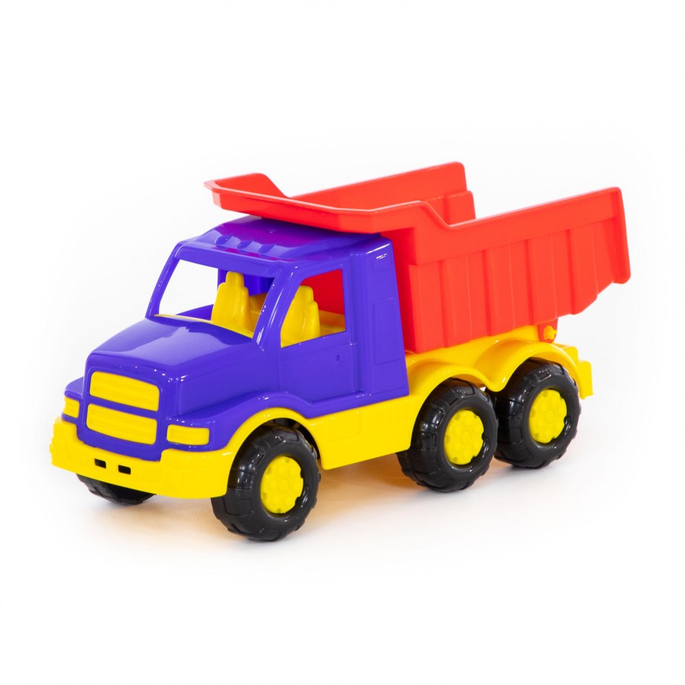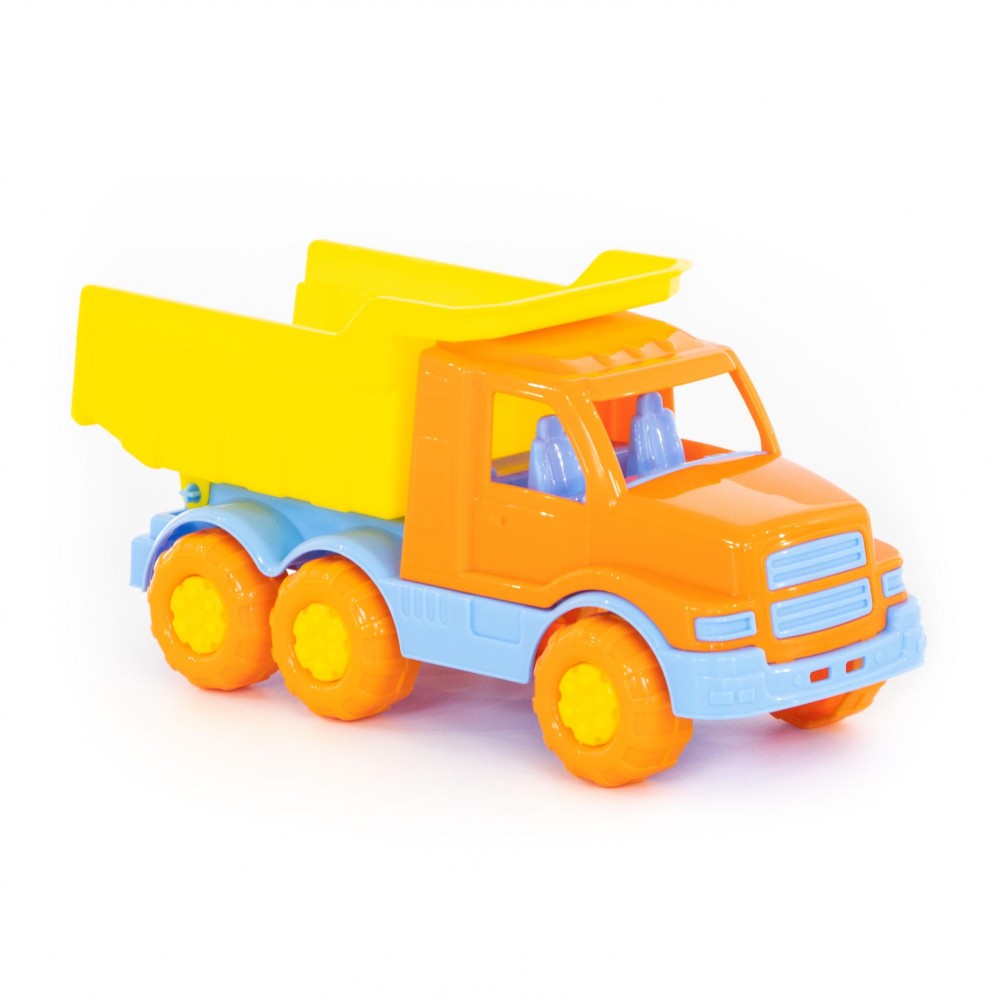Автомобиль-самосвал "Гоша" имеет оптимальный размер для игры как дома, так и на улице. В кузове карьерного типа удобно возить песок, насыпать и ссыпать его в песочницу.
