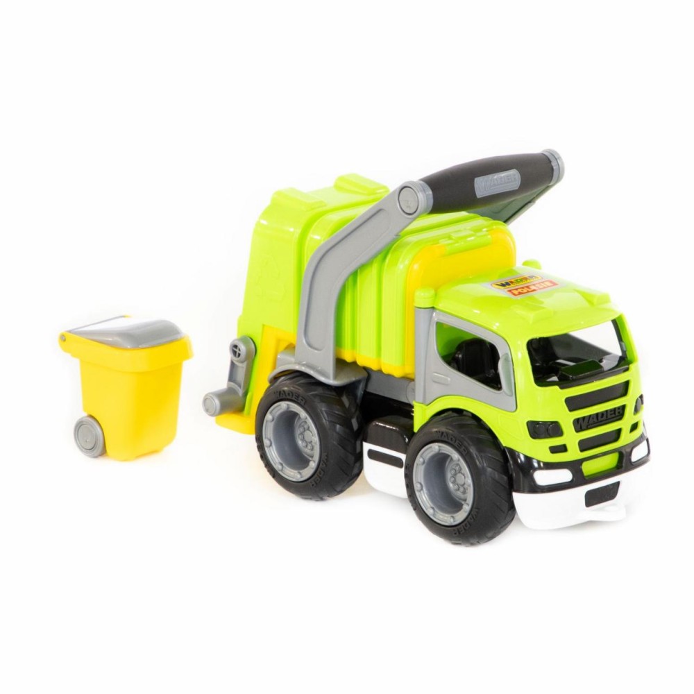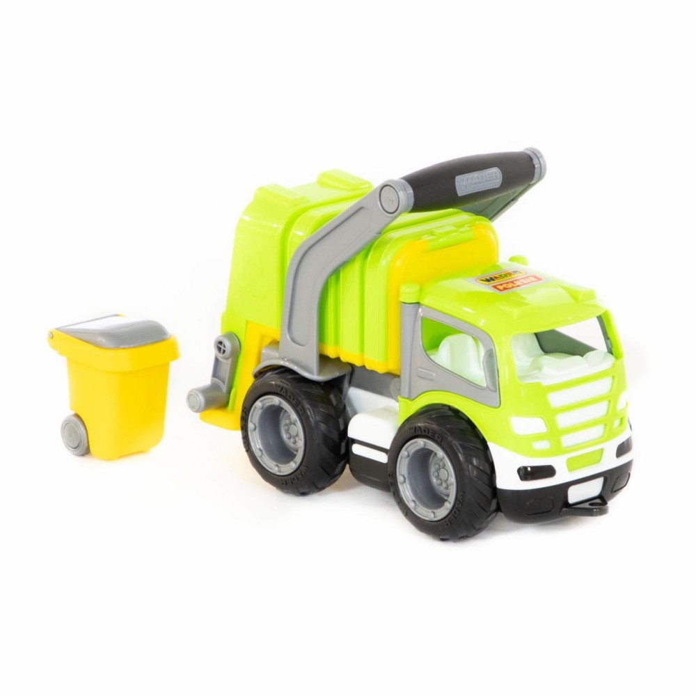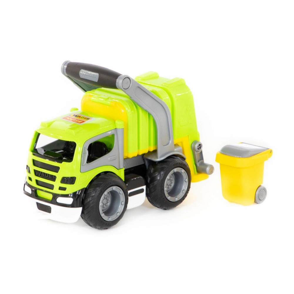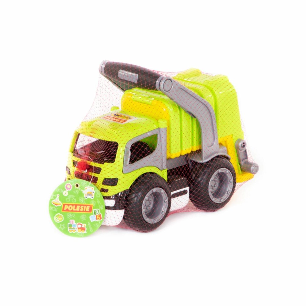 Коммунальный автомобиль всегда вызывает у детей повышенный интерес из-за своих функциональных особенностей. С помощью приятной на ощупь прорезиненной ручки можно снять кузов и установить его откидную подставку. В комплект входит мусорный бак на колёсиках, который опрокидывается в кузов мусоровоза специальными ручками. Кроме того, у автомобиля открываются дверки кабины, туда ребенок может посадить свои игрушки в качестве водителя и пассажира. Еще одна особенность «ГрипТрака» — резиновые колеса с большим протектором: обеспечивают лучшее, чем пластиковые, сцепление с различными поверхностями, а также меньший уровень шума.