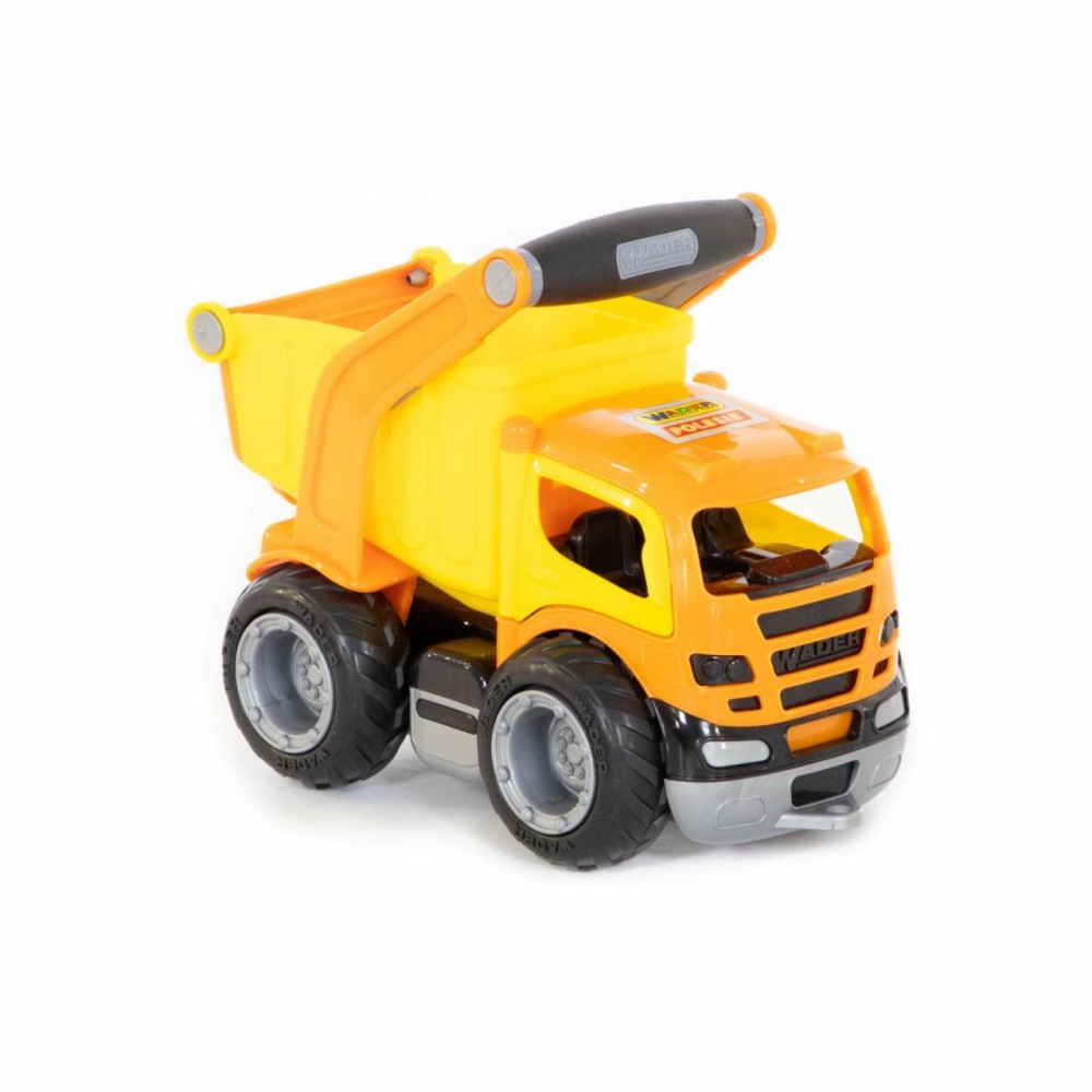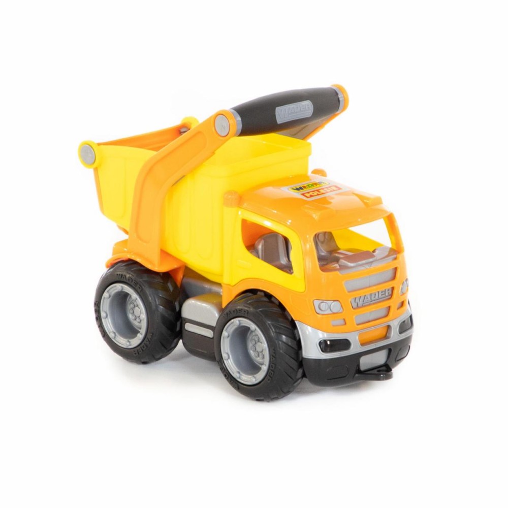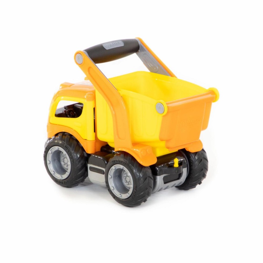 Самосвал серии «ГрипТрак» выделяется своим дизайном и функциональностью. У автомобиля открываются дверки кабины. Кузов самосвала снимается с помощью прорезиненной ручки, таким же образом ставится обратно. Для удобства разгрузки открывается задний борт. Кроме того, у самосвала резиновые колёса с крупным протектором, что улучшает сцепление с любым покрытием и выглядит более реалистично. Самосвал «ГрипТрак» небольшой, но очень занимательный автомобиль, который обязательно понравится малышу и сделает игру ещё интереснее.