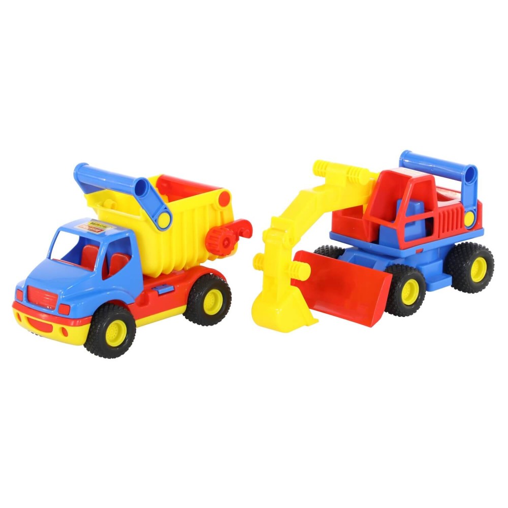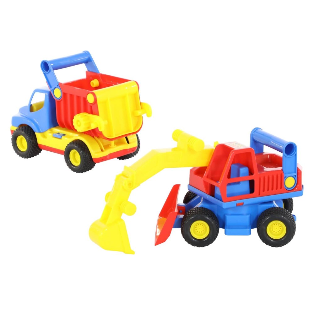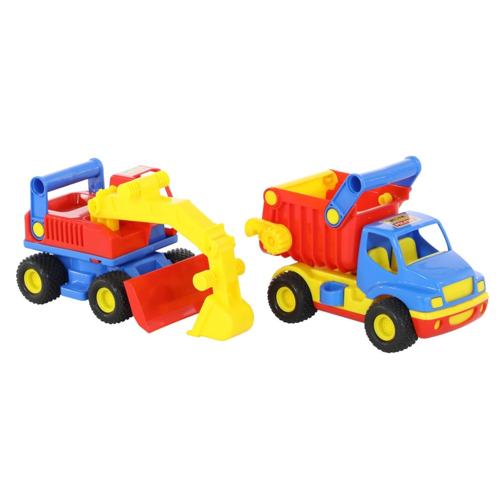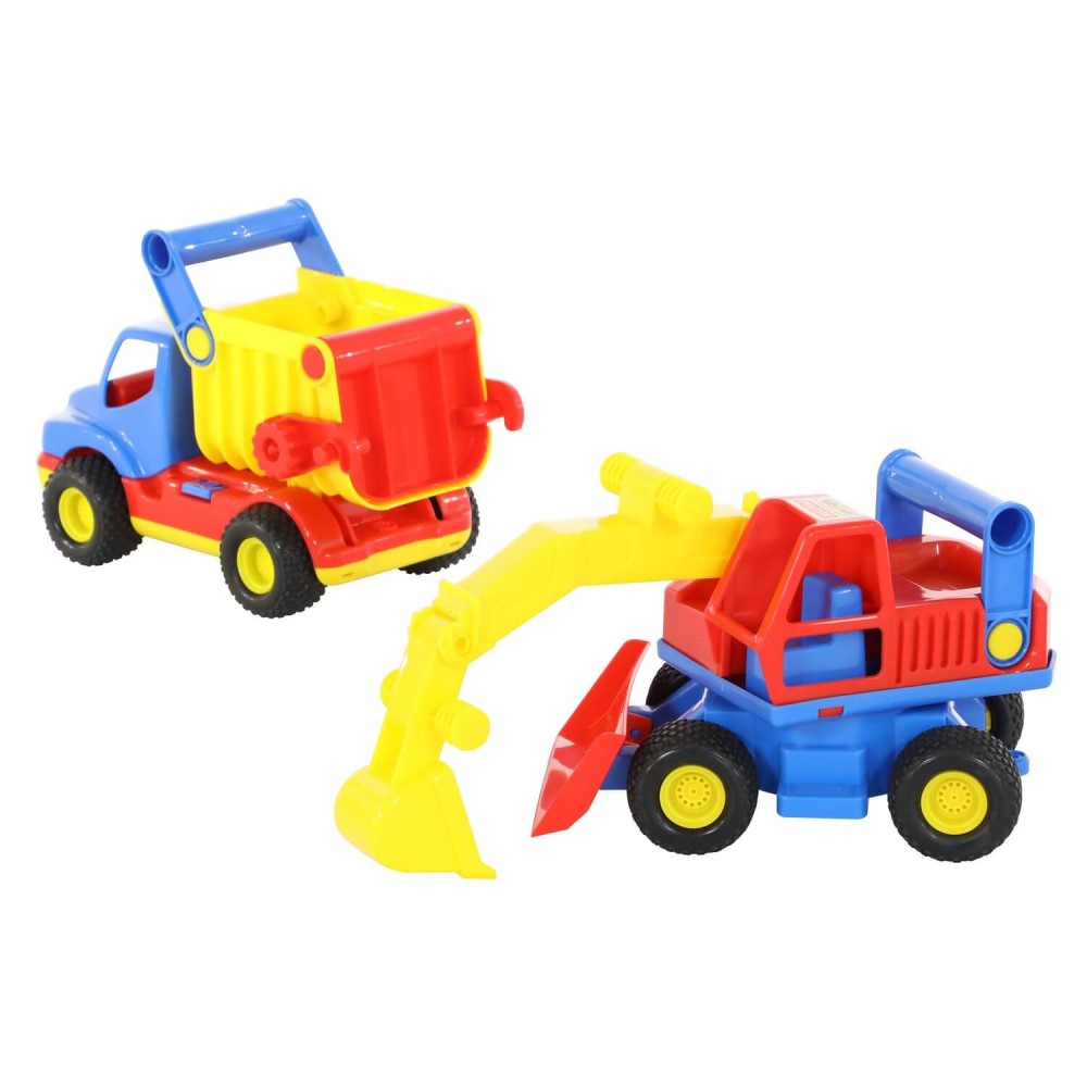 Автомобиль-самосвал и экскаватор колесный «КонсТрак» от компании «Полесье» в одном наборе - прекрасный подарок для малыша, которому нравится строительная техника.