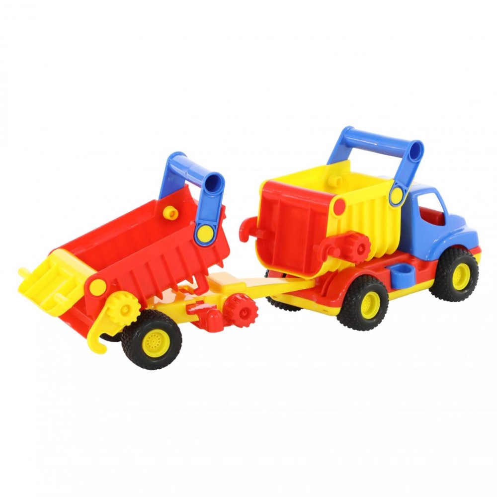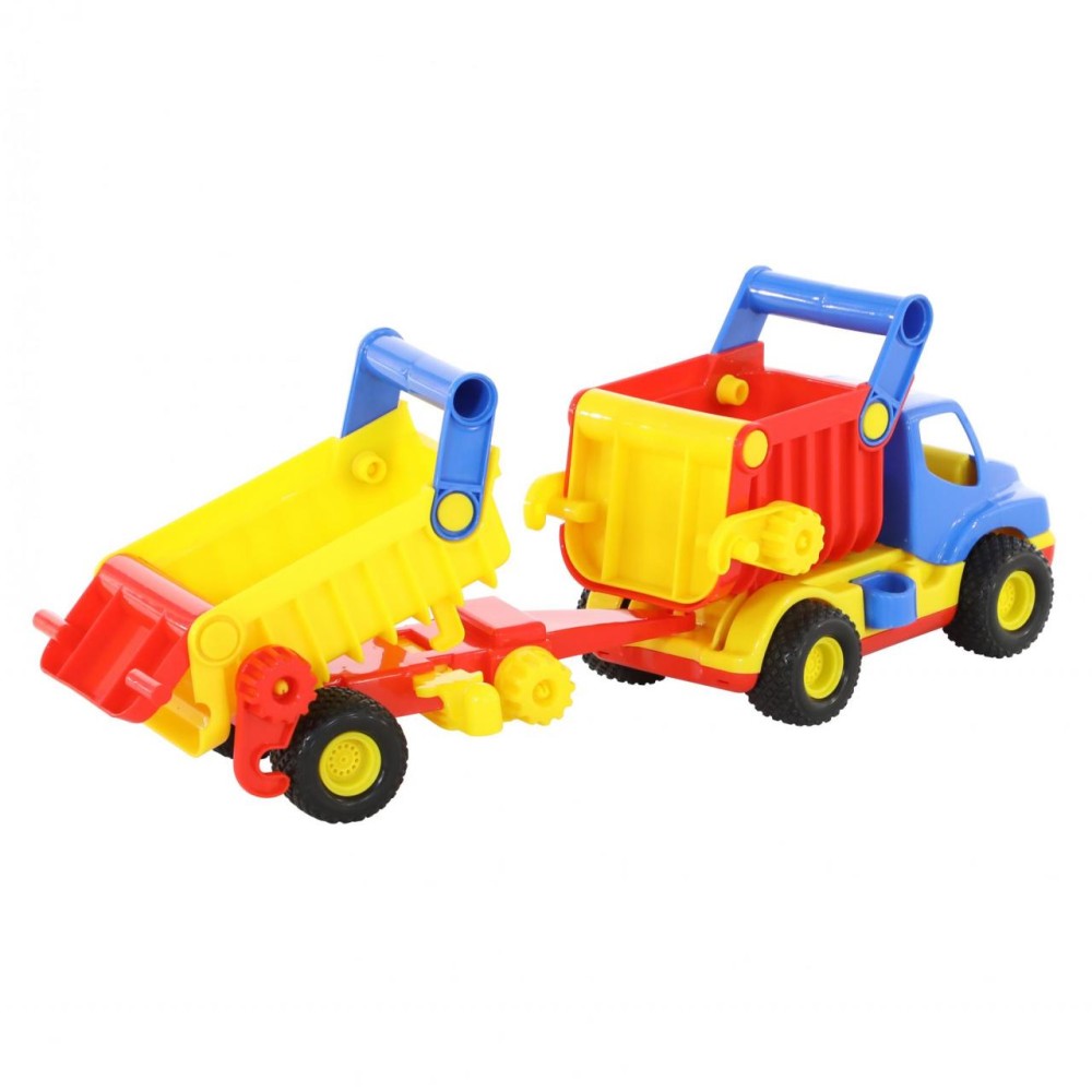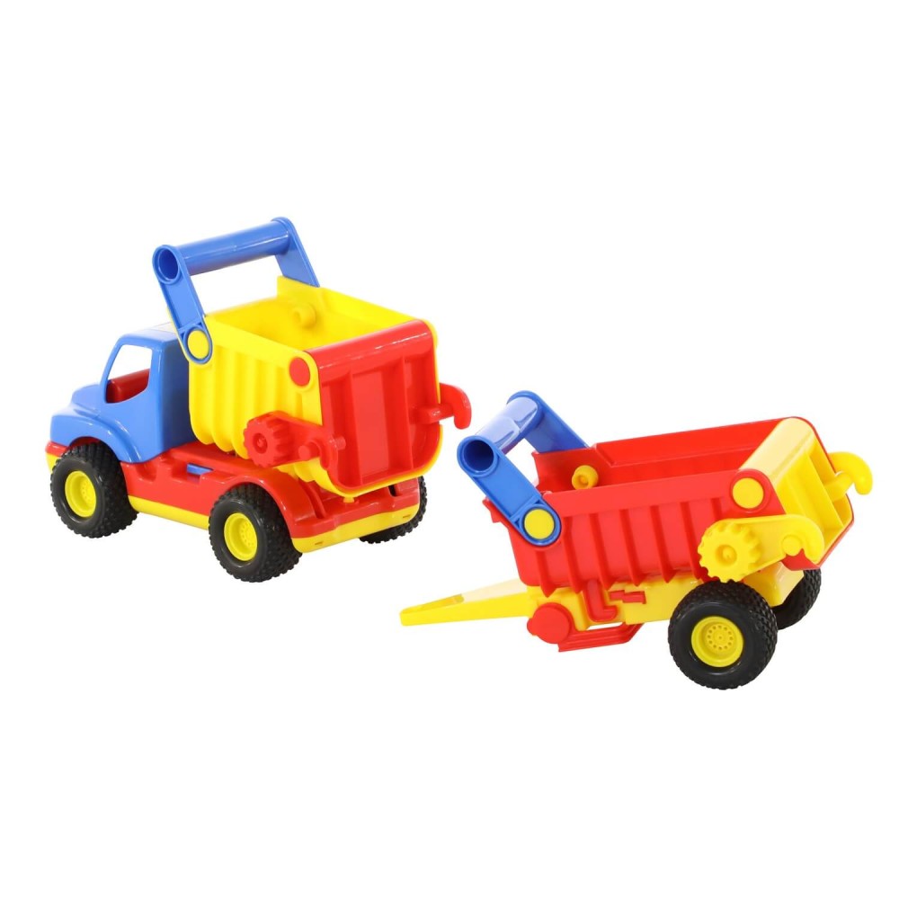 Машинка оборудована резиновыми шинами с крупным протектором, что обеспечивает высокую проходимость и бесшумное движение по различным видам поверхностей. Игрушку легко переносить благодаря специальной ручке. За счет оснащения подвижными элементами, самосвалом интересно играть как дома, так на свежем воздухе. Игрушка оборудована прицепом с подъёмным кузовом для удобной работы с грузами. Эргономичная конструкция, высокая функциональность и качественное исполнение автомобиля-самосвала «КонсТрак» от компании «Полесье», будут долго радовать ребенка и помогать ему воплощать свои фантазии в игре.