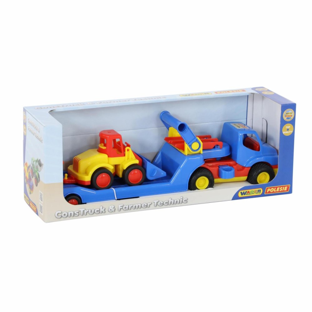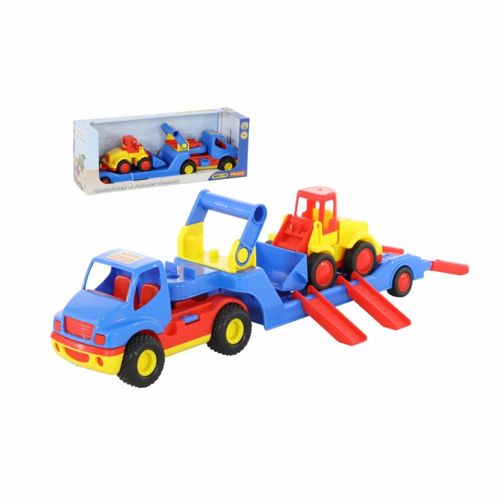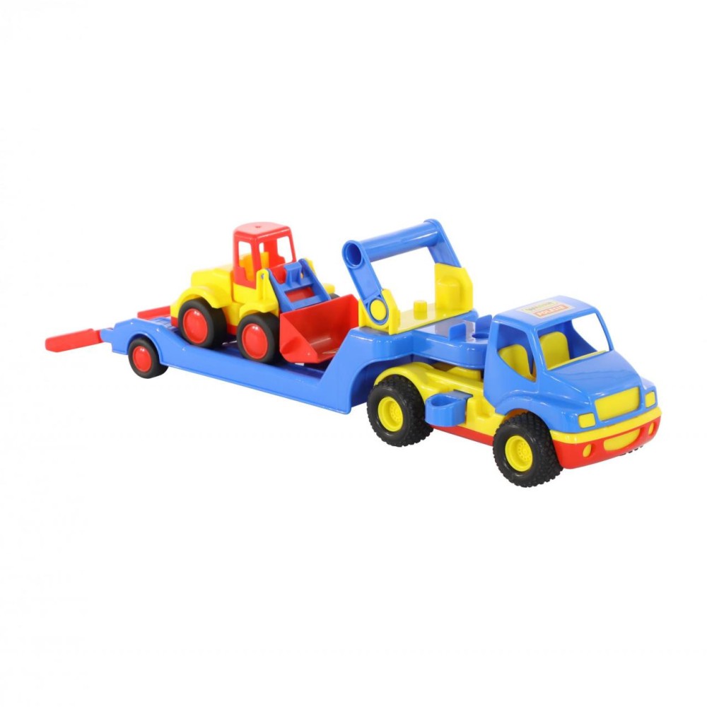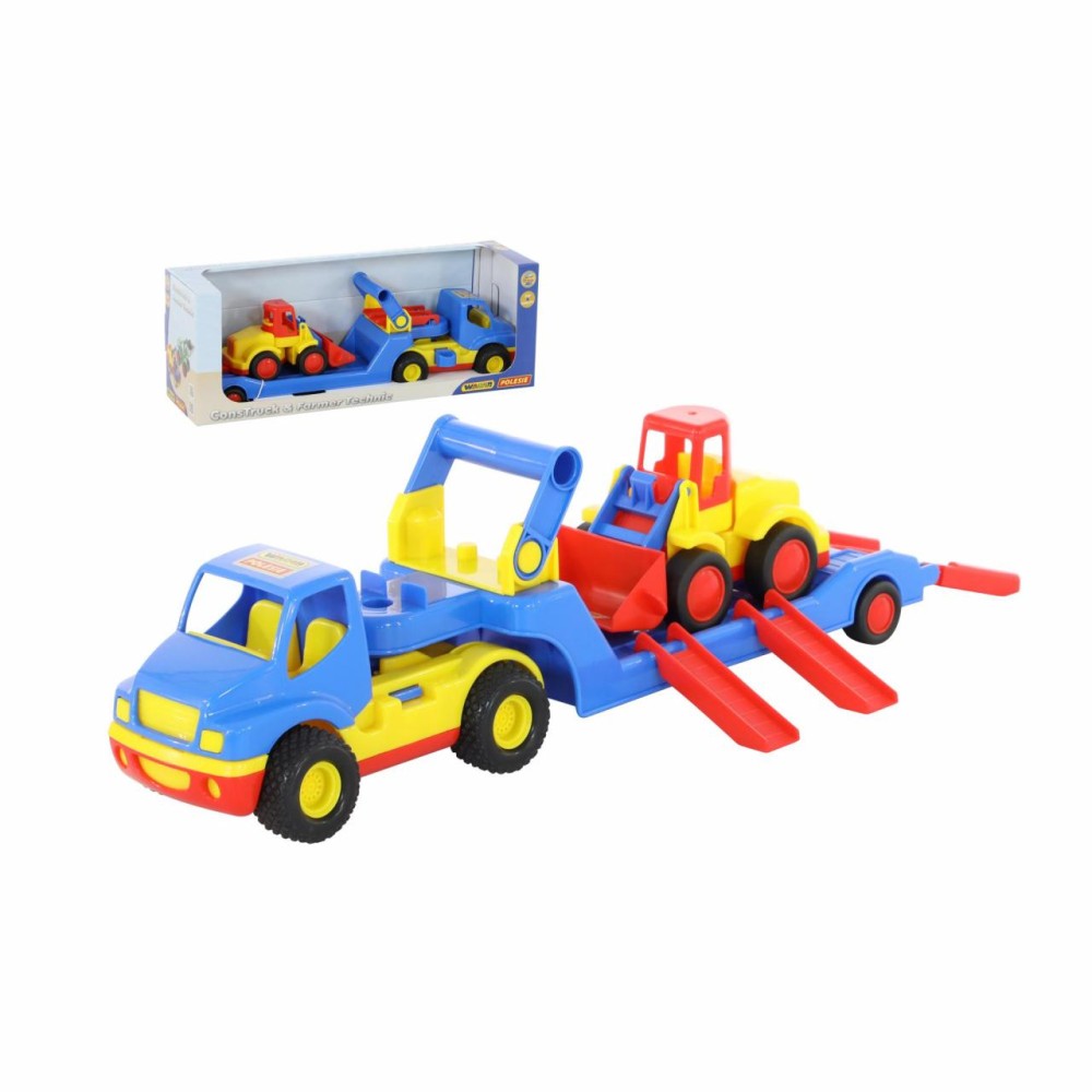 Автомобиль- трейлер «КонсТрак» и погрузчик «Базик» от компании «Полесье» в одном наборе - прекрасный подарок для малыша, которому нравится строительная техника.