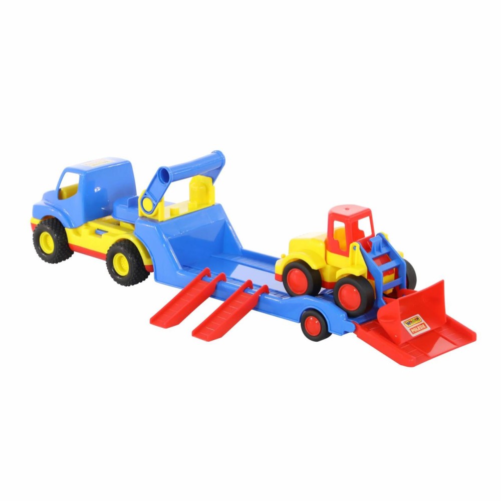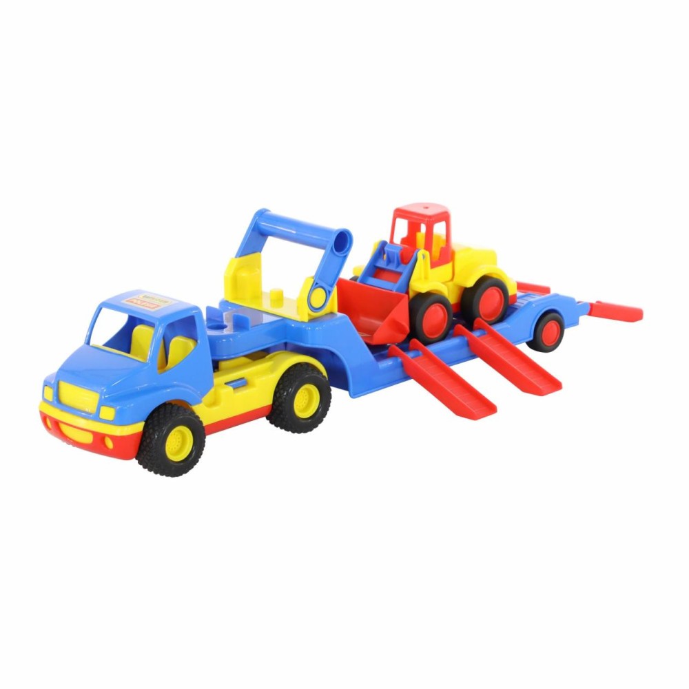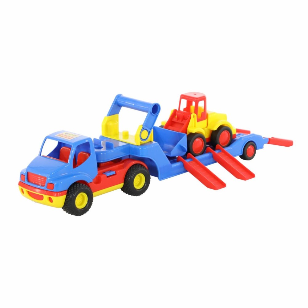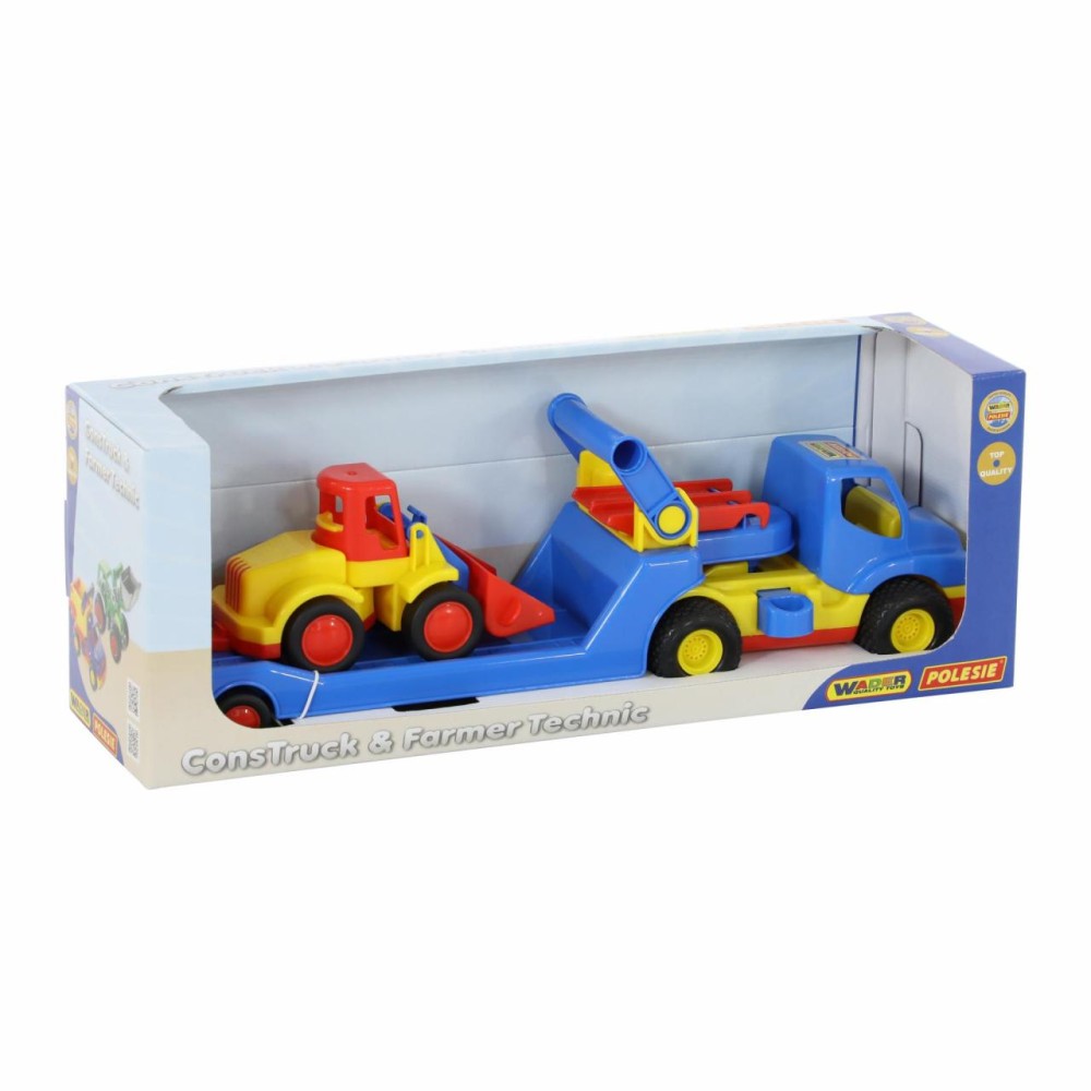 Автомобиль- трейлер «КонсТрак» и погрузчик «Базик» от компании «Полесье» в одном наборе - прекрасный подарок для малыша, которому нравится строительная техника.