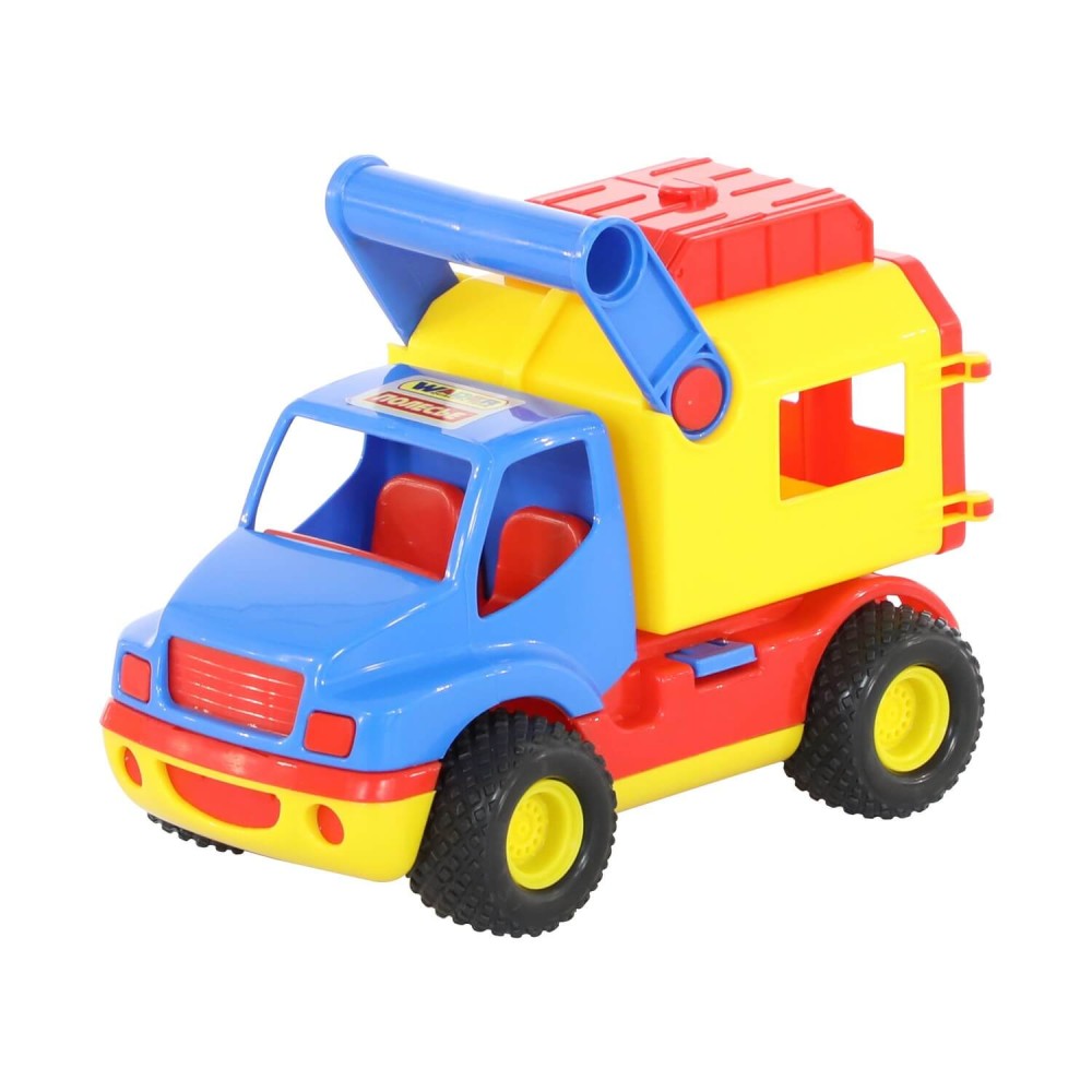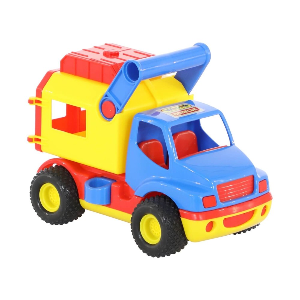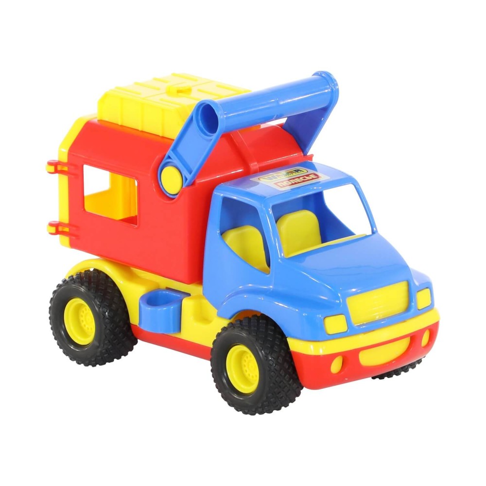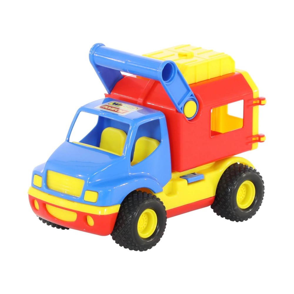 Машинка оснащена резиновыми шинами с крупным протектором, что обеспечивает высокую проходимость и бесшумное движение по различным видам поверхностей. Игрушку легко переносить благодаря специальной ручке, автомобилем интересно играть как дома, так на свежем воздухе. Машинка оборудована подъёмным кузовом и подвижными дверками для удобного выполнения манипуляций с грузами.