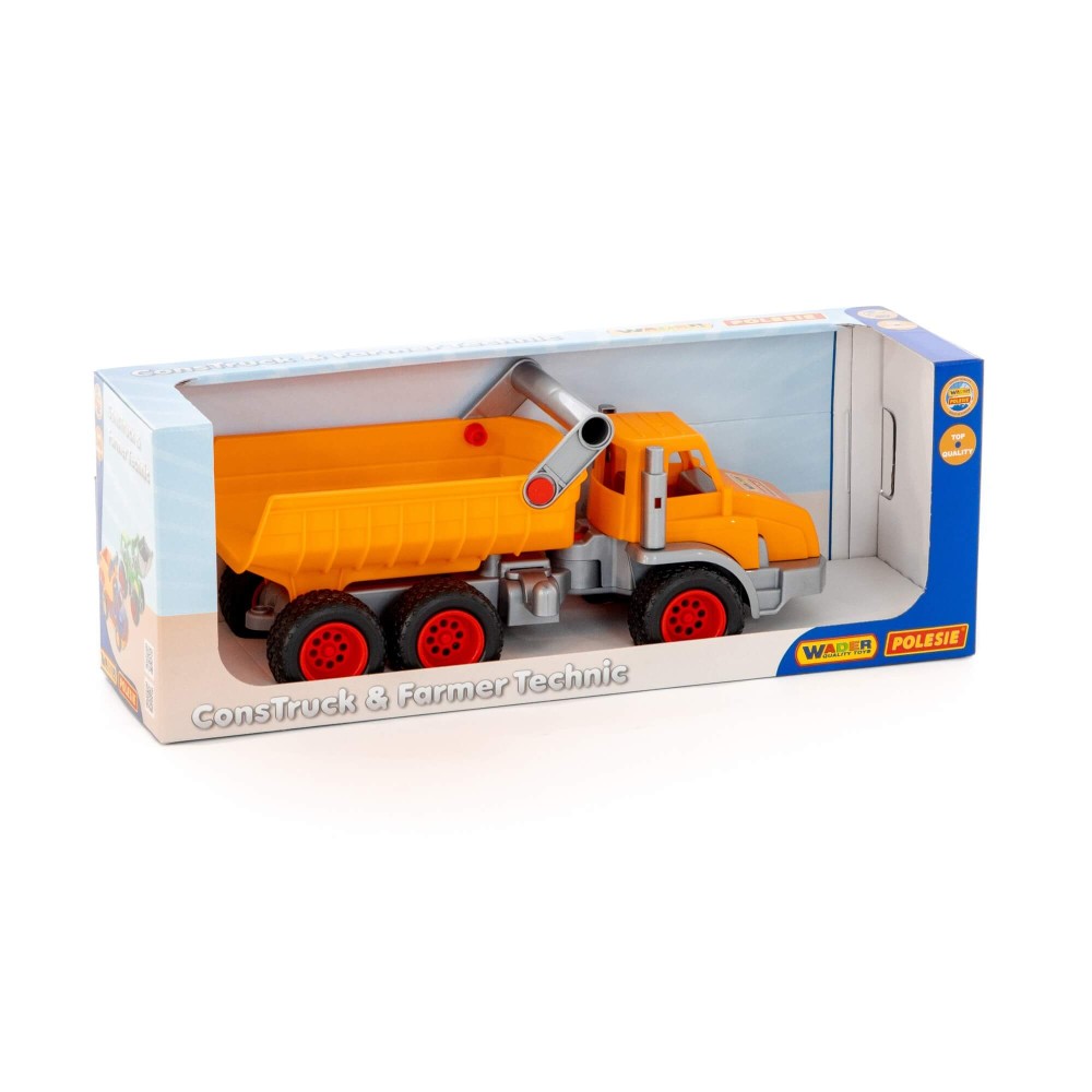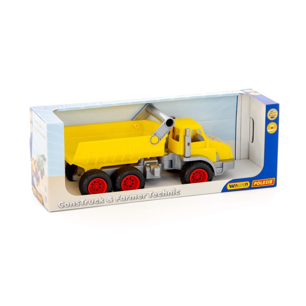 Надежный трехосный автомобиль-самосвал «КонсТрак» от компании «Полесье» станет прекрасным дополнением игрушечного автопарка вашего малыша.