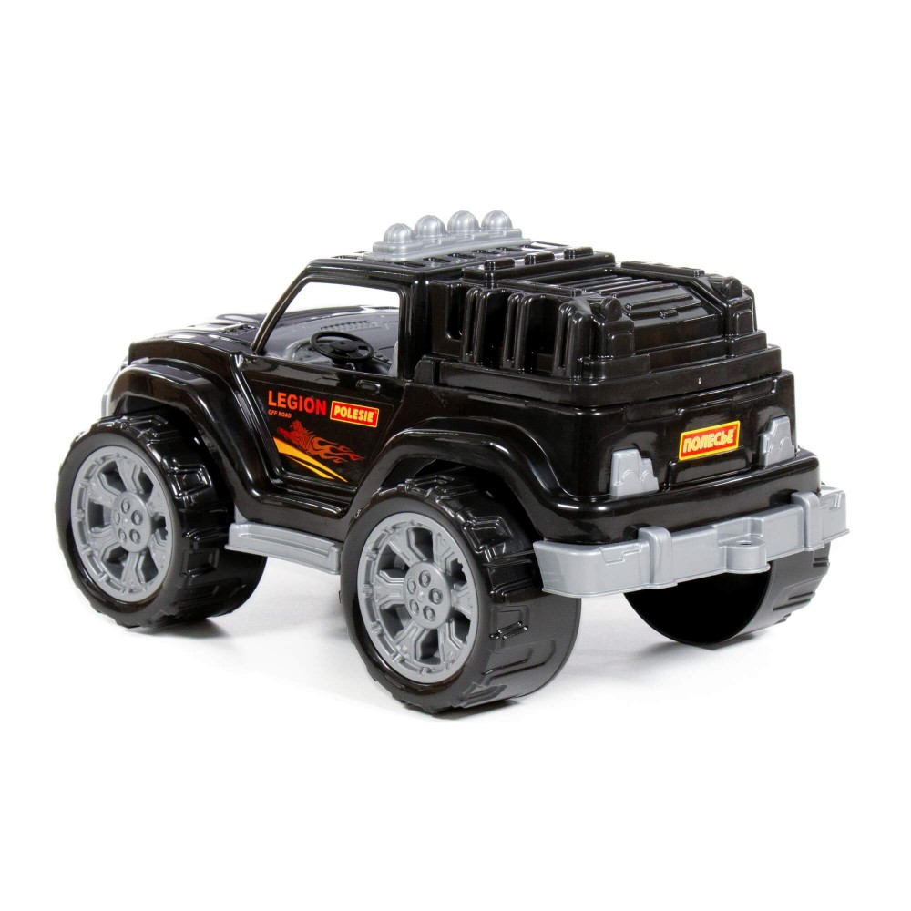 Серия автомобилей «Легион» от фабрики «Полесье» представлена в виде стильных джипов, адаптированных для моделирования различных сценариев игры. Игрушка имеет реалистичный дизайн, округлую форму деталей. Автомобиль «Легион» № 4 изготовлен в чёрном цвете, имеет вместительный закрытый багажник. На крыше располагается имитация дополнительного света в виде ряда фар. Для многих детей, а особенно для мальчиков, важно наличие разнообразных машинок в арсенале игрушек. Они позволяют познакомиться с разными видами транспортных средств, понять, как они устроены. Благодаря прочности материала, из которого изготовлена игрушка, автомобиль долго прослужит ребёнку!