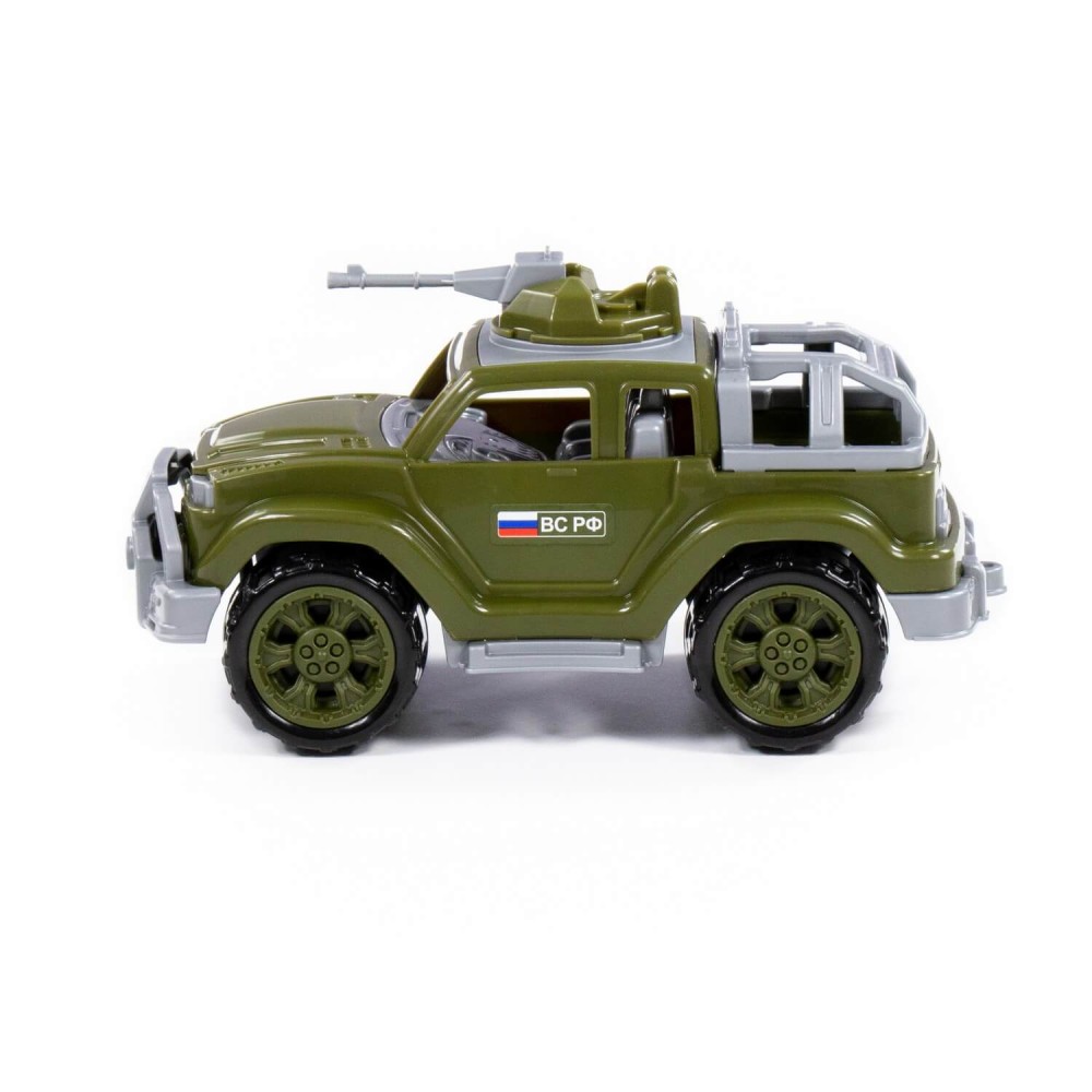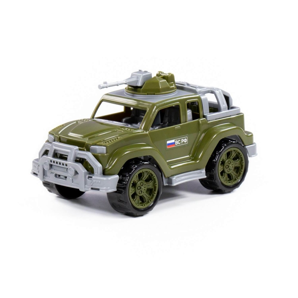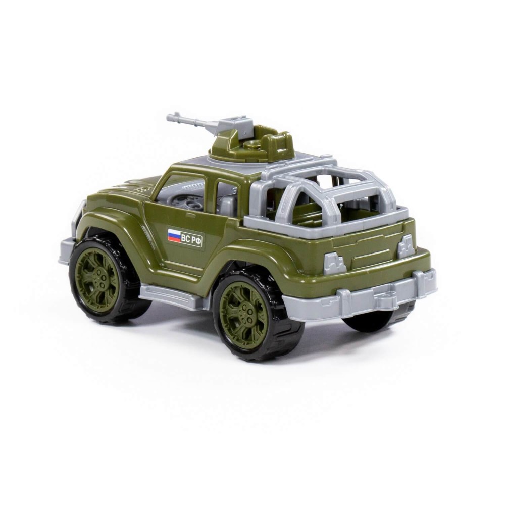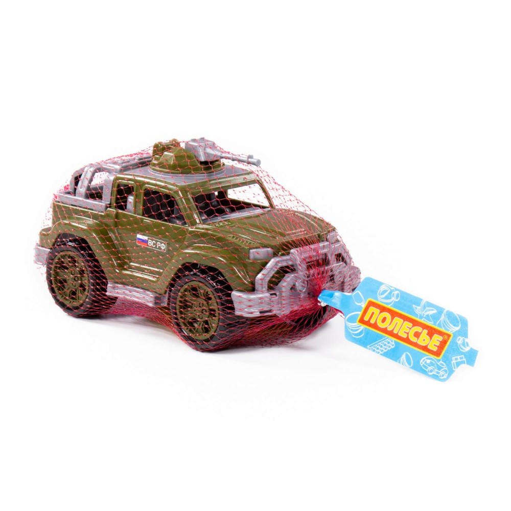 Серия автомобилей «Легионер-мини» от фабрики «Полесье» представлена в виде стильных джипов, адаптированных для выполнения военных операций. Игрушка имеет реалистичный дизайн, округлую форму деталей. Автомобиль-джип военный «Легионер-мини» с одним пулемётом изготовлен в защитном цвете, имеет вместительный багажник с тентом (тент съёмный), на крыше автомобиля установлен пулемёт (его можно вращать).