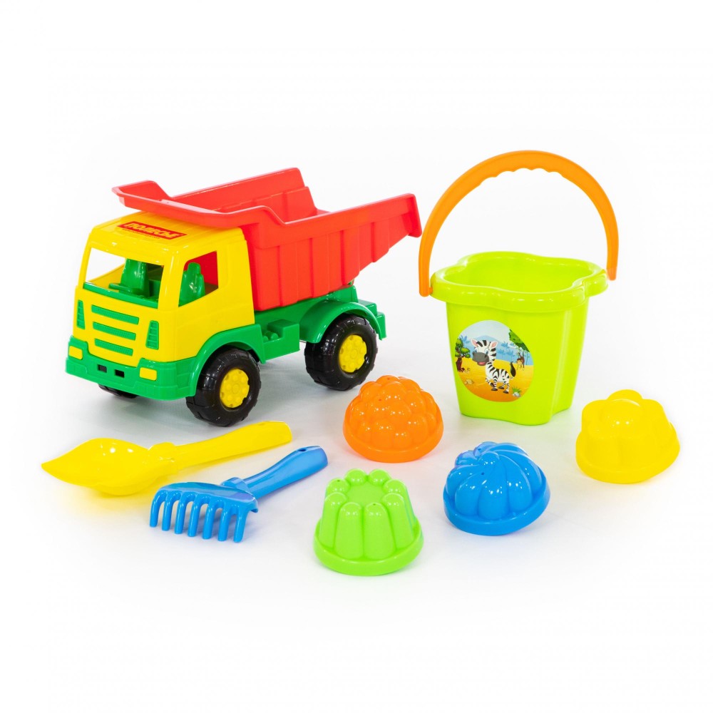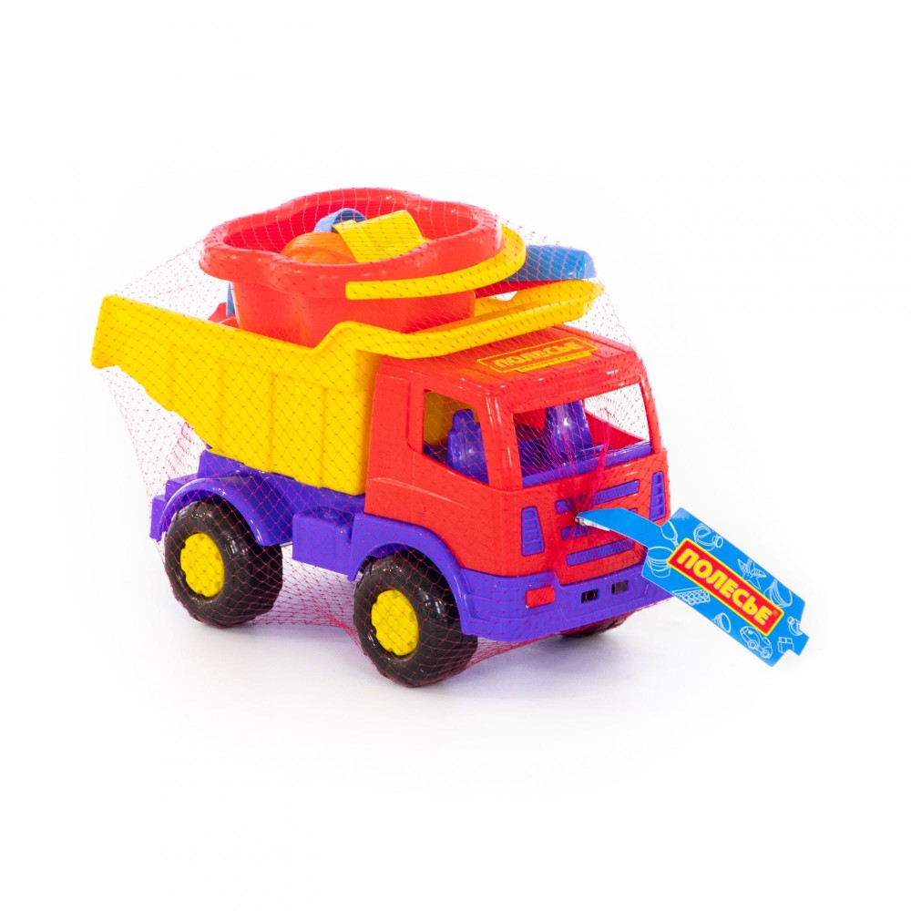 Автомобиль-самосвал "Мираж" имеет оптимальный размер для игры как дома, так и на улице. В кузове карьерного типа удобно возить, насыпать и ссыпать песок. В комплекте с автомобилем идут: ведро-цветок среднее, лопатка №5