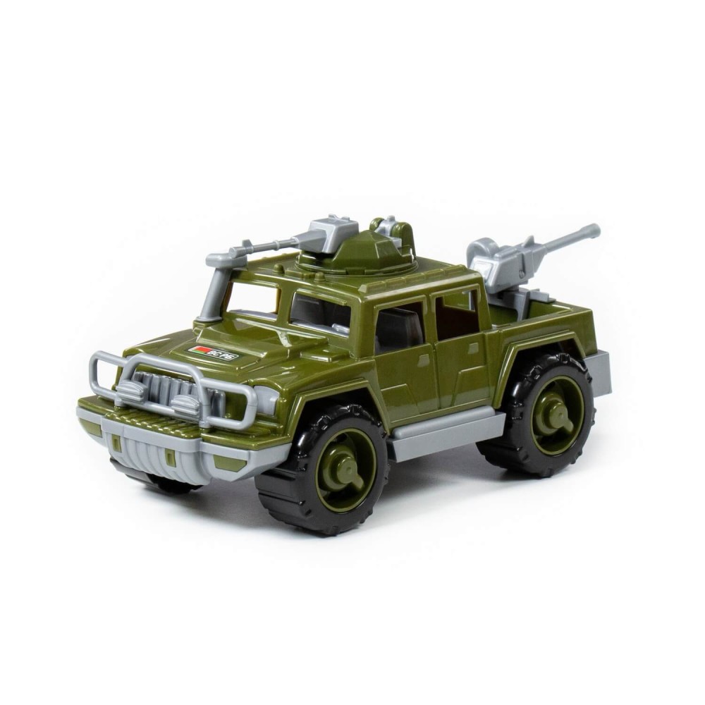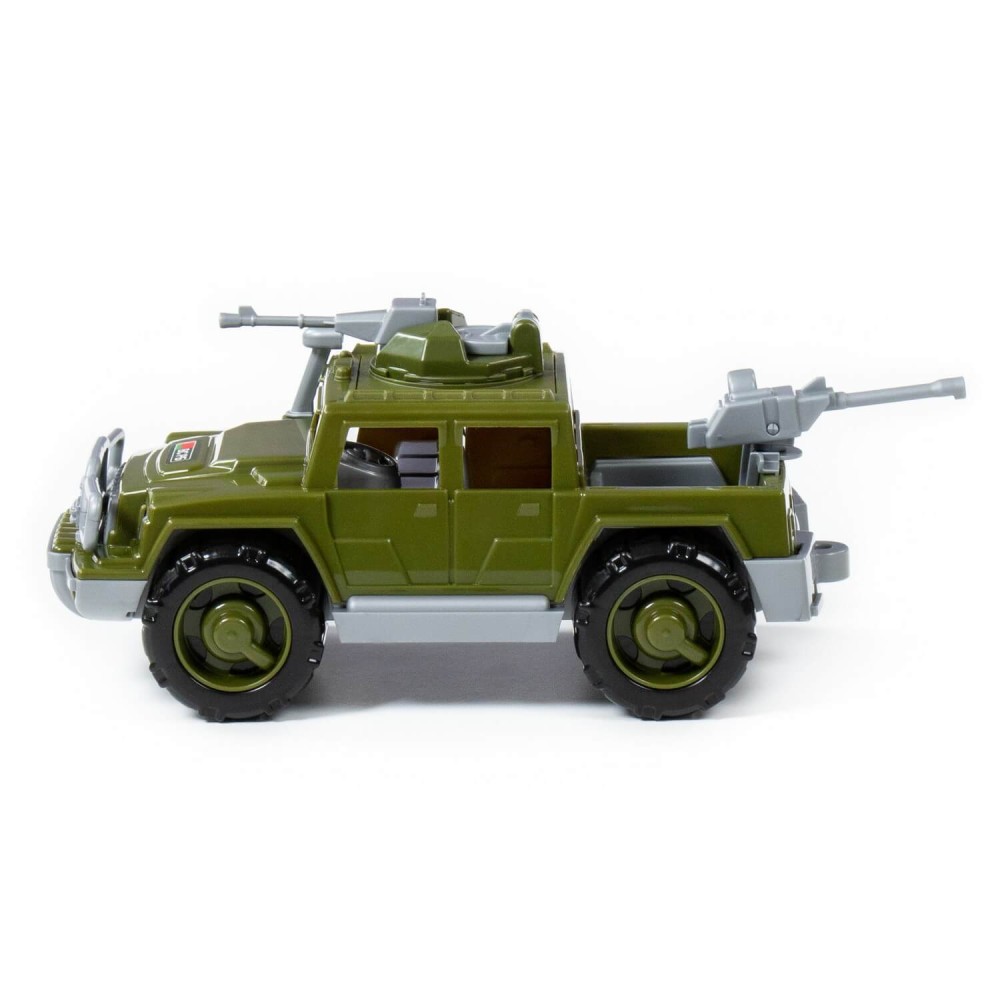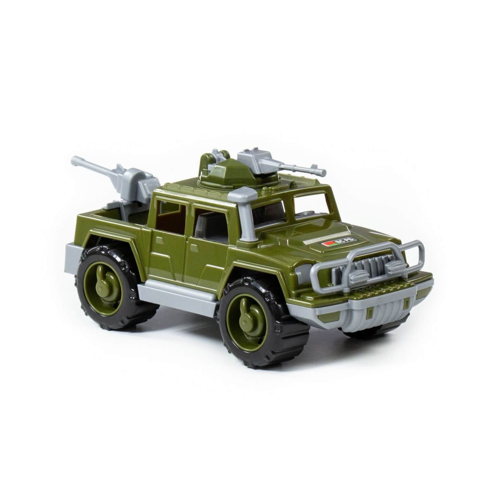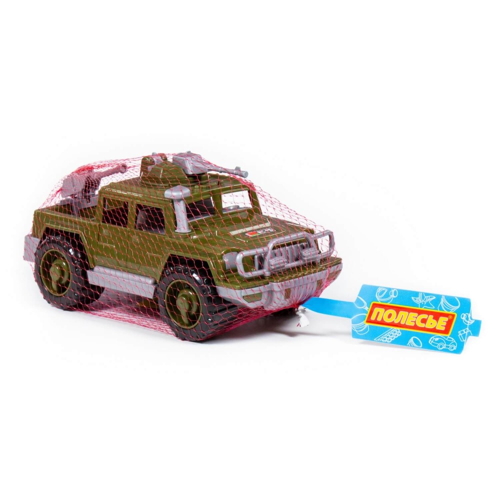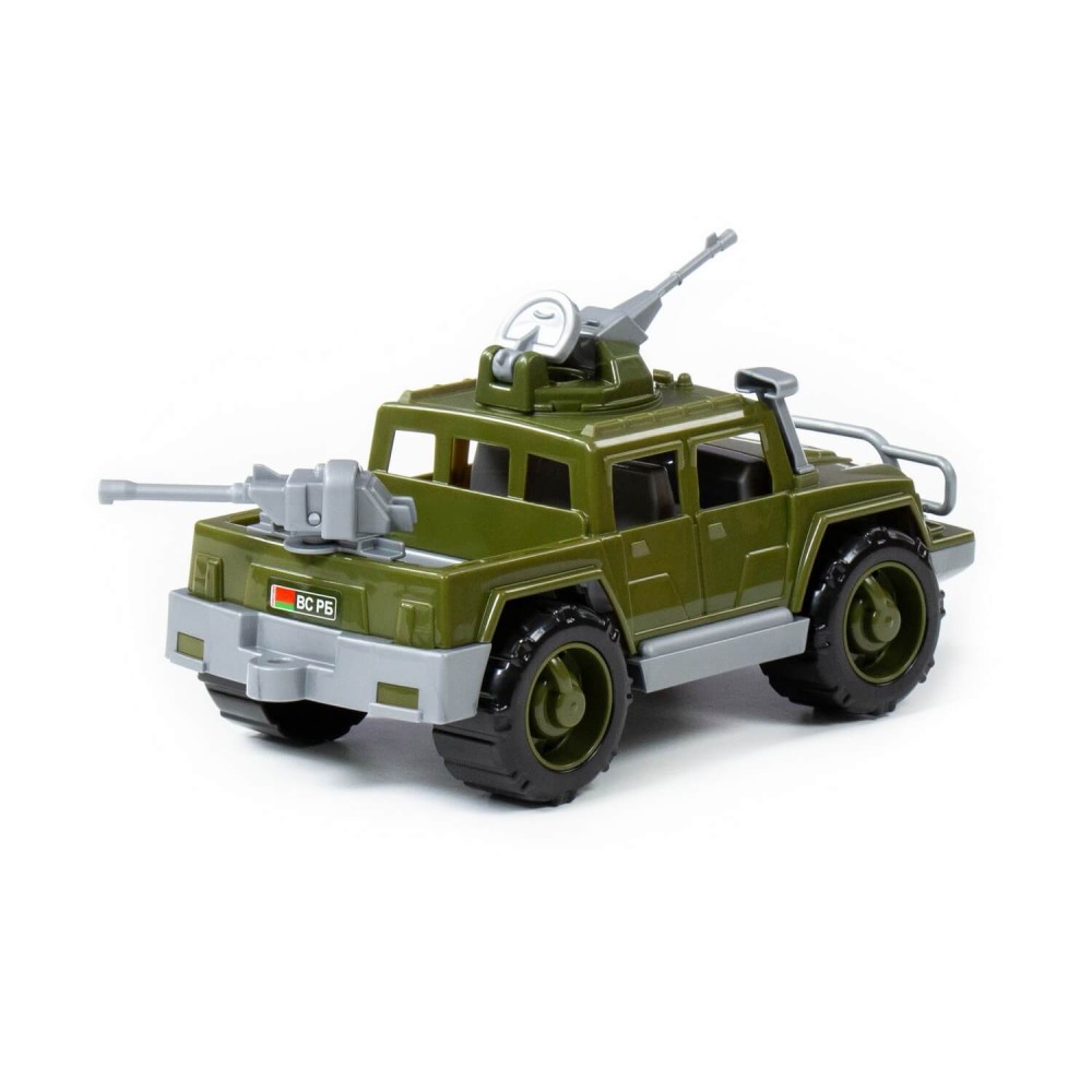 Серия автомобилей «Разведчик» от фабрики «Полесье» представлена в виде стильных джипов, адаптированных для выполнения военных операций. Игрушка имеет реалистичный дизайн, округлую форму деталей. Автомобиль-пикап военный "Разведчик" с 2-мя пулемётами изготовлен в защитном цвете, имеет вместительный багажник, на крыше автомобиля и в багажнике установлены пулемёты (их можно вращать).