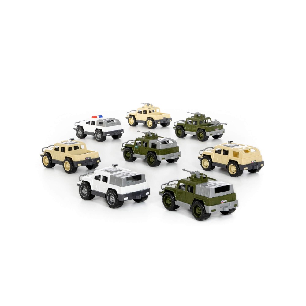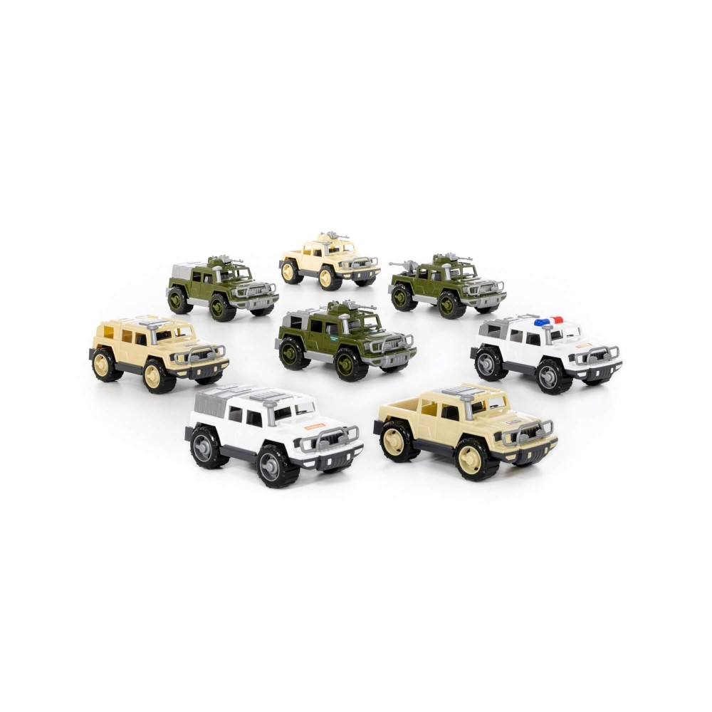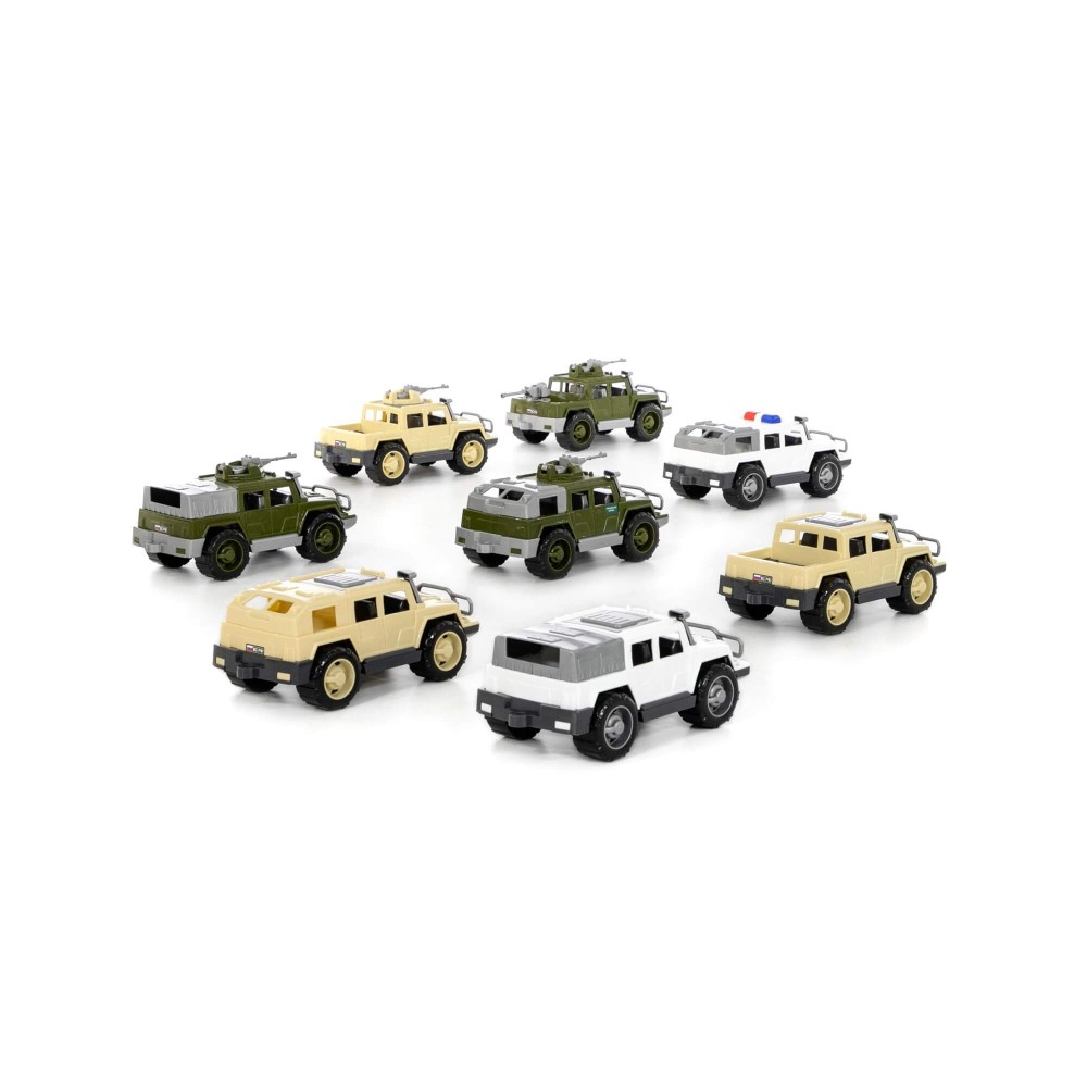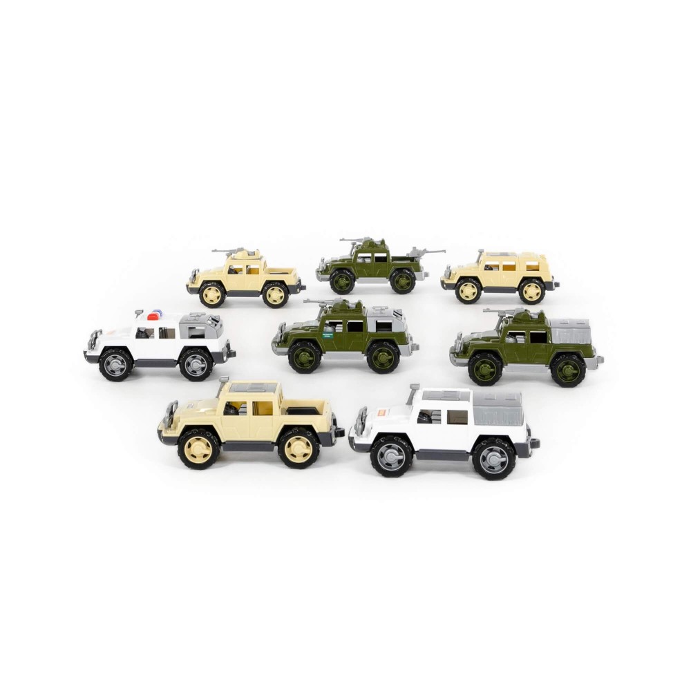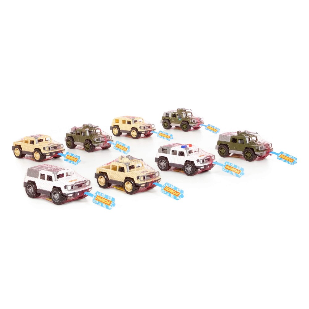 В составе набора микс №1 от компании «Полесье» следующие виды автомобилей серии «Разведчик»: